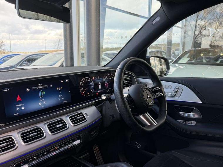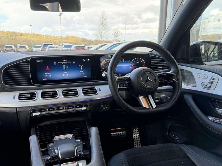 12.3 High resolution wide screen cockpit display with choice of three display styles Classic, Progressive or Sport and unique ambient lighting setting, 360 degree view camera, Active parking assist with PARKTRONIC, Attention assist, Brake wear warning display, Direct steer speed sensitive steering, DYNAMIC SELECT with a choice of driving modes (ECO, Comfort, Sport and Individual), Easy-pack tailgate - Powered opening/closing automatically, ECO start/stop function, Hard-disk navigation, MBUX voice control activated by keywords "Hey Mercedes", Mercedes Benz emergency call system, Mercedes me connect - vehicle set up and monitoring, Outside temperature display, Pre-installation for digital key transfer, Remote boot release, Service indicator (ASSYST), Status display for rear seat belts in instrument cluster, Traffic sign assist, Trip computer in multifunction display showing current fuel consumption, Wireless charging, Wireless smartphone integration including Apple CarPlay and Android auto, 85 litre fuel tank, 9G TRONIC 9 speed automatic transmission, Airmatic air suspension with adaptive damping system, Diesel particulate filter (DPF), Mild Hybrid starter alternator, Additional USB connection, Bluetooth interface for hands free and audio streaming, Burmester surround sound system, DAB digital radio tuner, Front and rear USB ports, Sound personalisation, Adaptive brake lights, AMG bodystyling front and rear aprons, Auto headlights, Automatically dimming rear view mirror, Body coloured bumpers, Electric windows with one touch opening/closing and obstruction sensors, Electrically adjustable, heated, folding exterior mirrors, Exterior styling - front bumper, radiator grille and front air intakes, Heat insulating dark tinted glass, LED 3rd brake light, LED daytime running light signet, LED rear lights, Magic vision control, Multibeam LED headlights with adaptive highbeam assist plus, Radio aerial integrated into rear window, Rain sensing windscreen wipers, Rear side wing doors, Rear wiper, Roof rail system, Top surround of side windows in polished aluminium, Transparent Bonnet, Visible twin pipe exhaust system integrated into bumper, Waistline in polished aluminium, 3 spoke flat bottomed Multifunction sports steering wheel in nappa leather, 4 way adjustable front head restraints and 2 way rear head restraints, 4 way lumbar support for driver and front passenger, 40:20:40 split folding rear seats, AMG floor mats, Artico/Microcut microfibre upholstery, Automatic child seat recognition sensor, Black fabric roof liner, Electric height/reach adjustable steering column, Electrically adjustable front seats with memory function, Front centre armrest with stowage compartment and illuminated grab handles, Gearshift paddles on steering wheel, Glove compartment - lockable, air conditioned and illuminated, Heated front seats, Interior lighting - 64 colour Ambient lighting, Luggage compartment cover, Seat occupancy sensor for front passenger seat, Second row three seats, Single front passenger seat, Sports pedals in brushed stainless steel with rubber studs, Sunvisors with illuminated vanity mirrors, THERMATIC 2 zone automatic climate control, Touchpad, Keyless go comfort package - GLE, Night package - GLE, Active bonnet, Airbags - driver and front passenger, front sidebag, pelvis bag and window airbags, Anti-lock braking system (ABS), Black seat belts, Childproof locks manually operated for rear doors and electrically operated for rear power windows, Drivers knee airbag, Electronic parking brake, Electronic Stability Programme (ESP), ISOFIX child seat points with automatic child seat recognition, Perforated front brake discs and brake calipers with Mercedes-Benz lettering, Pre safe impulse side, Three point rear seat belts, Tyre pressure monitoring system, Warning triangle and first aid kit, Alarm system/interior protection/immobiliser, Central locking with interior switch, automatic locking and crash sensor with emergency opening function, Chrome surround in electric key, Guard 360 degree vehicle protection plus, Brushed aluminium trim elements, Dashboard and door beltlines in ARTICO man made leather with contrast top stitching, 21" AMG 5 twin spoke light alloy wheels painted in bi colour, TIREFIT with tyre inflation compressor,