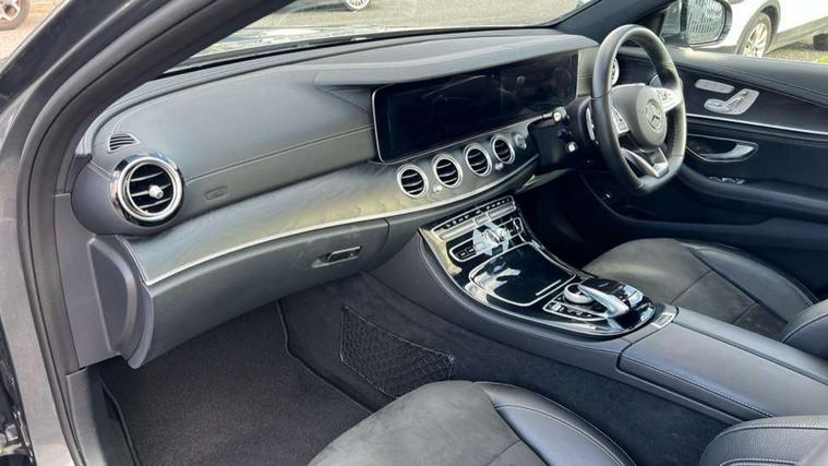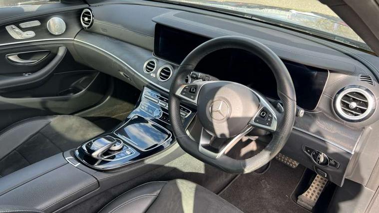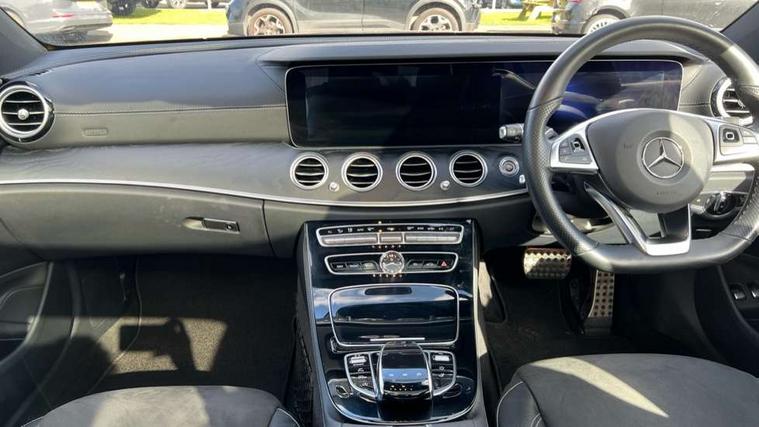 Active park assist with parktronic system, Analogue clock, Attention assist, Bluetooth interface for hands free telephone, Boot release from drivers seat, Brake wear warning light, DYNAMIC SELECT with a choice of driving modes (ECO, Comfort, Sport, Sport+ and Individual), Easy-pack tailgate - Powered opening/closing automatically, Multi function trip computer, Park assist pilot with front and rear park assist, Remote boot release, Service indicator (ASSYST), Speed sensitive power steering, Diesel particulate filter, Burmester surround sound system with 13 speakers, DAB Digital radio, Media interface, Steering wheel mounted audio controls, USB/aux input socket, Adaptive brake lights, Aerial integrated in rear window, AMG bodystyling, Body colour bumpers, Body colour door handles, Chrome roof rails, Electrically adjustable and heated door mirrors, Polished aluminium upper window surround, Rain sensor windscreen wipers, 3 spoke AMG steering wheel in Nappa leather, 40:20:40 split folding rear bench seat, Ambient lighting, AMG floormats, Artico man-made leather upper dash trim, Auto Mercedes-Benz child seat recognition sensor, Black roof lining, Chrome door pins, Folding shopping box, Front and rear door pockets, Front centre armrest with storage compartment, Front door sills with Mercedes Benz lettering, Heated front seats, Height/reach adjust steering wheel, Interior rear light/integral reading lights, Isofix rear child seat fastenings, Lockable/illuminated air conditioned glovebox, Multi function steering wheel, Sports pedals with stainless steel surfaces and rubber studs, Storage compartment with 12V socket in centre console, Sunvisors with illuminated vanity mirrors, Interior lighting pack - E Class, Keyless Go comfort pack - E Class, Memory pack - E Class, Mirror pack - E Class, 3x3 point rear seatbelts, Active bonnet, Active brake assist, Childproof rear door locks, Driver and passenger side/thorax airbags, Driver/front passenger airbag, Drivers knee airbag, Electronic parking brake, Hill hold assist, Hill start assist, Pre-Safe anticipatory safety system, Seat occupancy sensor, Seatbelt warning, Tyre pressure monitoring system, Warning triangle and first aid kit, Window airbags, Alarm system/interior protection/immobiliser, Chrome surround in electric key, High gloss black centre console, Run flat tyres,