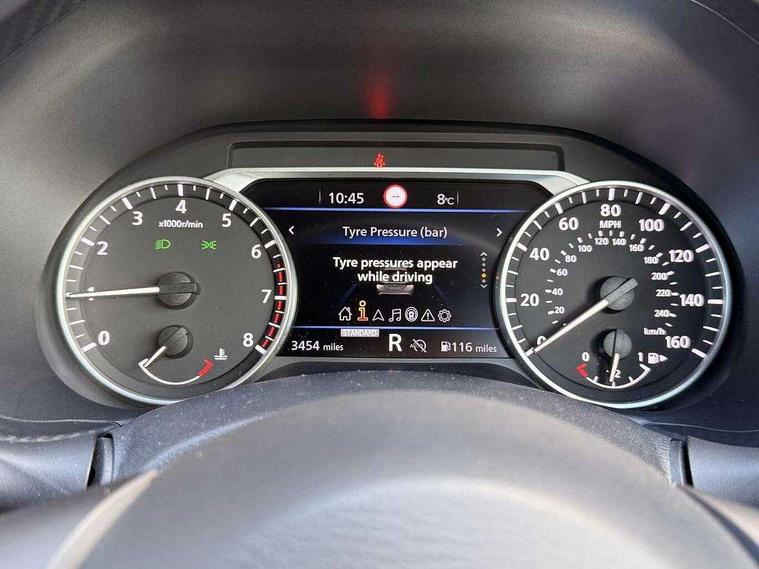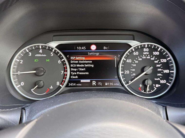 7" full colour TFT screen combimeter, Apple CarPlay and Google Android auto, Drive modes select (Eco, normal and sport), Emergency and breakdown call, Front parking sensor, Idle start/stop system, Intelligent lane intervention, Lane departure warning system, Nissan connect 8" touch screen entertainment system, Nissan connect nav with TomTom traffic, Nissan connect services and Wifi connection, Outside temperature sensor, Power Steering, Rear parking sensor, Traffic sign recognition, Trip computer, Voice recognition, Gasoline particulate filter, 6 speakers, Bluetooth system, USB, Aux-in and 12V socket, DAB Digital radio, Rear console USB port, Auto dimming interior rear view mirror, Auto headlights, Automatic hazard signal with emergency stop signal, Body colour bumpers, Body colour door handles, Electrically adjustable door mirrors with integrated indicators, Follow me home headlights, Front and rear electric window with one touch driver window, Heated and auto folding door mirrors, High beam assist, LED daytime running lights, LED headlamps, LED rear fog lamp, LED rear lamps, Rain sensor windscreen wipers, Rear privacy glass, Rear side wing doors, Rear wiper, Shark fin roof antenna in Pearl Black, Three blink turn signal, 3 height adjustable rear headrests, 3 seat bench in 2nd row, 60/40 split folding rear seat, Automatic climate control, Card holder on driver sunvisor, Cloth upholstery with black and metallic grey syntech leather inserts, Driver and passenger sliding and reclining seats, Driver side rear coat hanger, Driver/passenger sunvisors and vanity mirrors, Front and rear cabin lights, Front armrest, Front door pockets with bottle holders, Front head restraints, Front/rear passenger grab handles, Grey synthetic leather kneepad, Height adjustable driver's seat, Internal chrome door handles, Leather gearshift knob, Leather steering wheel, Luggage board, Luggage space lighting, Monoform sporty seats, Multifunction steering wheel, Rear door bottle holders, Single front passenger seat, Steering wheel mounted gearshift paddles, Telescopic steering wheel adjustment, Two cupholders in front centre console, Two rear isofix child seat anchorage points with top tether, Welcome light and console tray ambient lighting, ABS with EBD and brake assist, Active ride control, Active Trace Control, Driver and passenger airbags, Driver and passenger side airbags, Electric handbrake with auto hold function, Electronic Stability Programme (ESP), Front and rear curtain airbags, Height adjustable seatbelts, Hill start assist, Intelligent emergency braking with pedestrian and cyclist recognition, Rear door child safety locks, Seatbelt reminder for driver/front passenger and rear seats, Single tone horn, Three 3 point rear seatbelts, Traction control, Tyre pressure monitoring system, VDC Dynamic Vehicle Control, Ventilated rear brake discs, Alarm, Immobiliser, Intelligent key and start push button with walk away lock and approach unlock functions, Remote central locking,