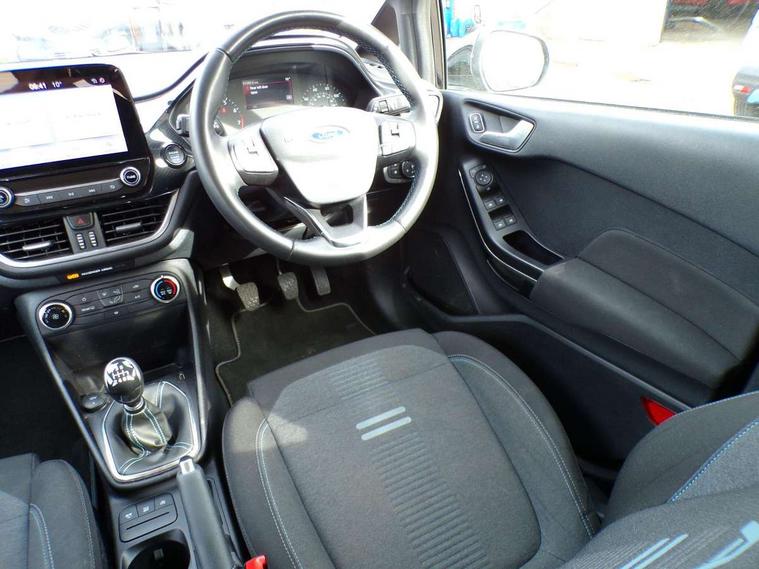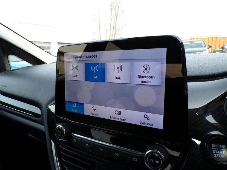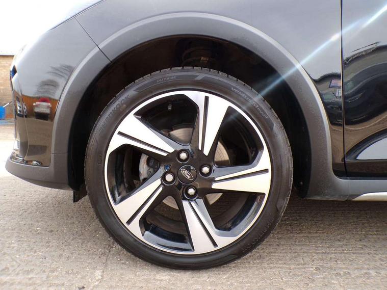 4.2" Colour TFT Ice blue illumination analogue cluster, Driver alert system, Electric power steering, Ford easy fuel, Lane keep assist, Lane keeping aid, Rear parking distance sensors, Selectable drive modes (Normal, Sport, Track), Trip computer, Rough road suspension with increased ride height adjust, 3rd brake light, Auto high beam, Automatic headlights, Body colour bumpers, Body coloured electrically operated with side indicators, Electric front windows/one touch facility, Electric rear windows, Quickclear heated windscreen, Rain sensing wipers and auto dimming rear view mirror, Rear privacy glass, Rear side wing doors, Rear wiper, Rugged bodystyling kit with active front wing badges, 3 rear headrests, 3 seat bench in 2nd row, Adjustable head restraints, Centre console with opening armrest, 2x cupholders, 12v and USB, Cloth upholstery with dark blue stitching, Leather gear knob, Manual 2 way passenger seat adjust, Manual 4-way driver seat adjust, Manual air conditioning, Premium floor mats, Sensico wrapped steering wheel, Single front passenger seat, 3 point seatbelts on all rear seats, Electronic stability control with hill start assist, Front and rear seat belt warning, Manual child lock in rear doors, Tyre pressure monitoring system, Keyless start with 'Ford Power' starter button, MyKey system, Remote central locking, Thatcham alarm with power door dead locks, 17" 5 spoke alloys with rough metal machined finish,