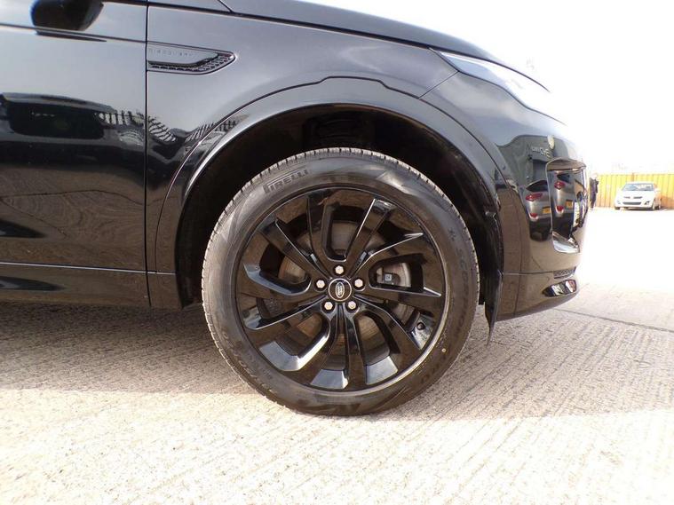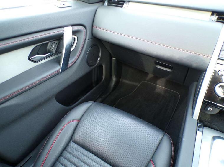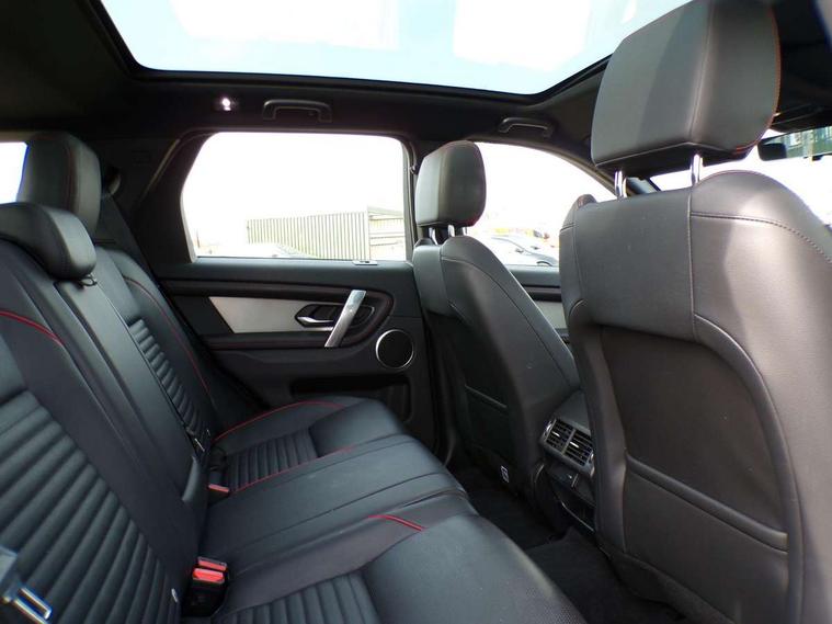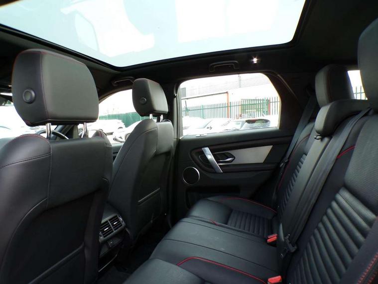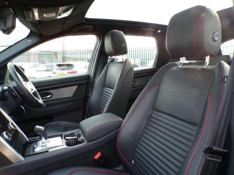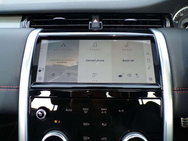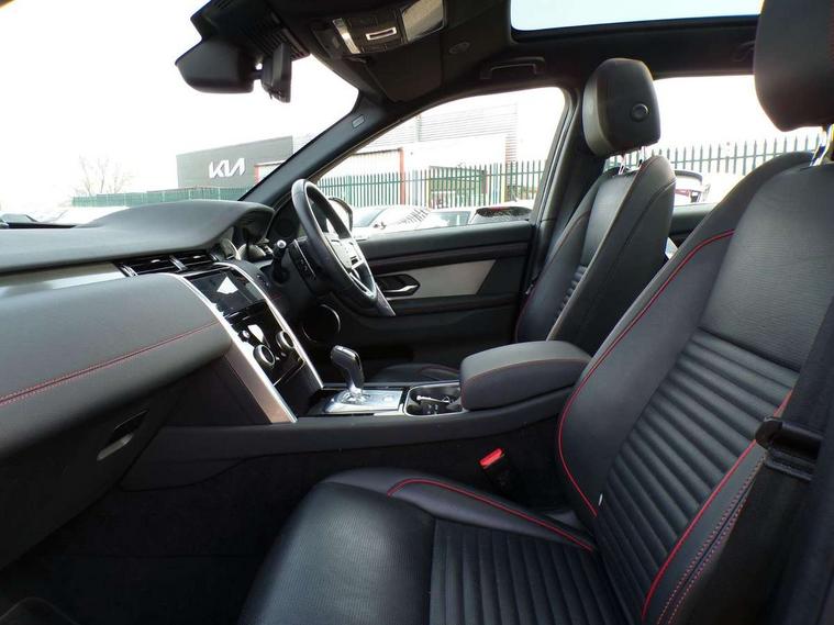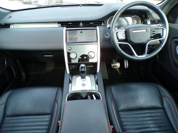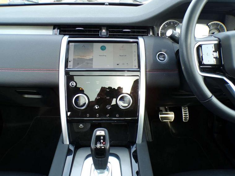 10" touch screen, Adaptive cruise control, Android Auto, Apple CarPlay, Driver condition monitor, eCall emergency call system, Front and rear parking aid, InControl remote premium, Lane keep assist, Locking fuel flap, PAS, Pivi Pro connected navigation system with upgraded Infotainment, Powered tailgate/boot lid, Push button start, Rear collision monitor, Service interval indicator, Traffic sign recognition with adaptive speed limiter, Trip computer, Wade Sensing, All terrain progress control, Coil suspension system, Diesel particulate filter, Dynamic stability control, Terrain Response 2, Bluetooth connectivity including audio streaming, Digital Audio Broadcast radio-DAB, Steering wheel mounted audio controls, 3rd brake light, Automatic headlights, ClearSight interior rear view mirror, Electric front/rear windows, Electric heated/power fold door mirrors with approach lights and auto dimming driver side, Fixed panoramic sunroof with powered sunblind, Front and rear recovery eyes, Heated rear window, Heated windscreen including heated washer jets, No badges, R Dynamic badge, Rain sensing windscreen wipers, Rear fog lights, Rear side wing doors, Rear wing door, Rear wiper, 5 seats, Bright metal pedals, Centre console with armrest, Footwell lights, Front and rear grab handles, Front passenger isofix child seat attachment, Loadspace cover, Loadspace light, Overhead lighting console, Overhead stowage for sunglasses, Rear headrests, Satin chrome gearshift paddles, Sunvisors with illuminated vanity mirrors, Tilt/reach adjustable steering wheel, Black exterior pack - Discovery sport, Online pack with data plan - Discovery, 3 point seatbelts on all seats, ABS, Brake hold function, Child locks on rear doors, Collision mitigation braking system, Cornering brake control (CBC), Driver/Front Passenger airbags, Drivers knee airbag, Electronic brake force distribution, Electronic parking brake, Emergency brake assist, ESP + traction control, Hill descent control, Hill launch assist, Pedestrian airbag system, Rear seat ISOFIX, Roll stability control, Side and curtain airbags for front and 2nd row seats, Trailer stability control, Tyre pressure monitoring system, Battery Back Up System (BBUS) with tilt sensor, Global lock and unlock switch on driver door, Intrusion sensor, Keyless entry, Locking wheel nuts, Centre stack rails in noble chrome,