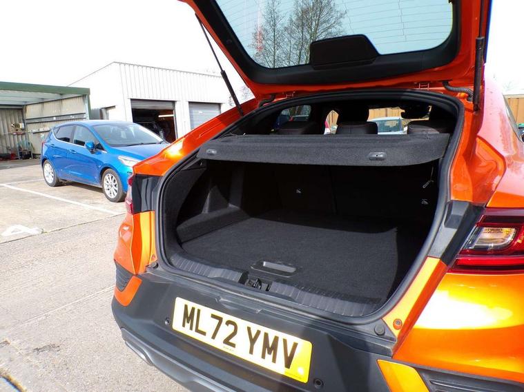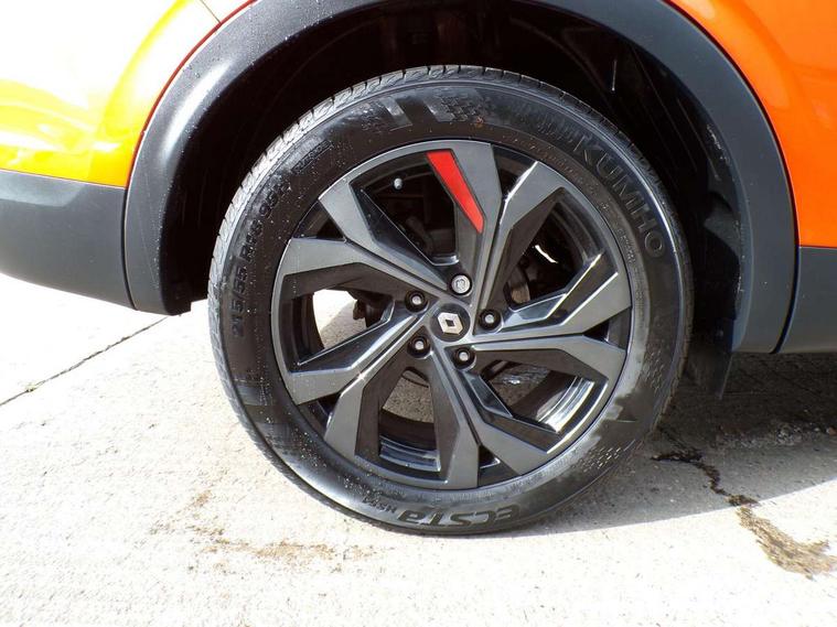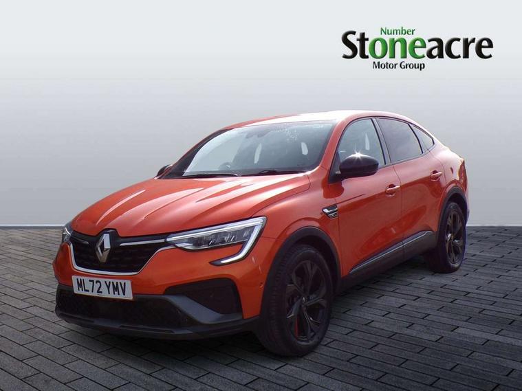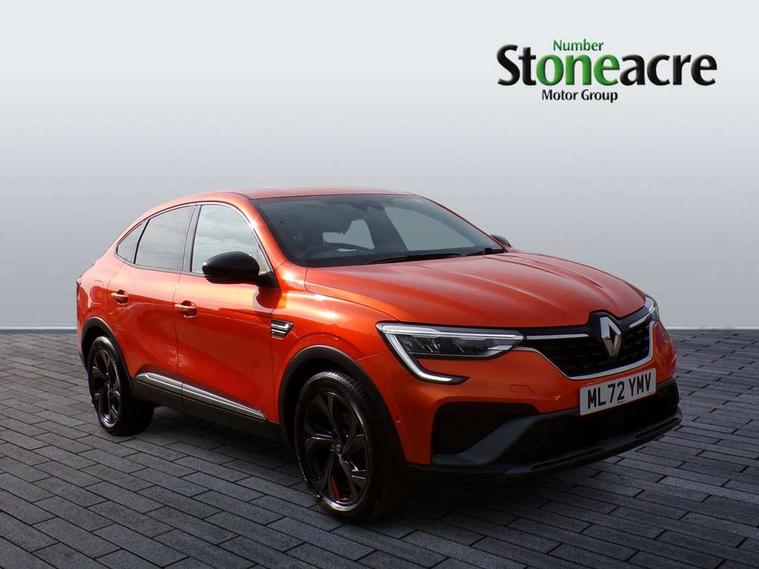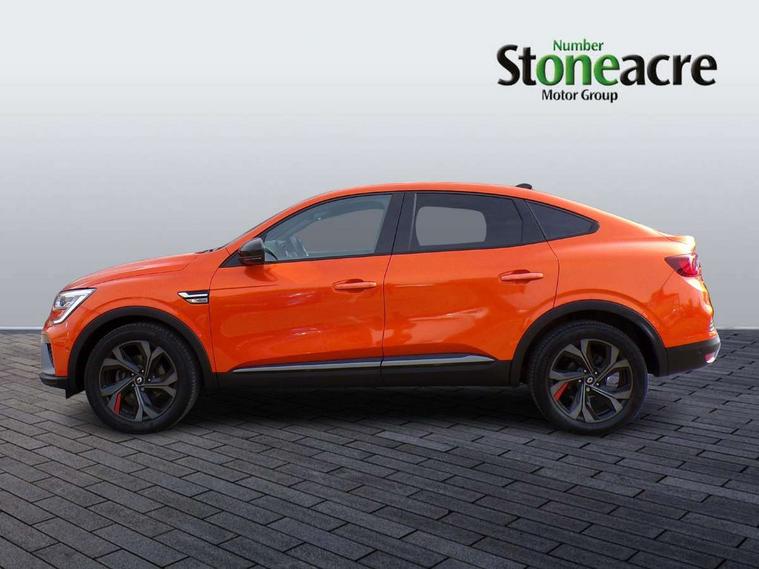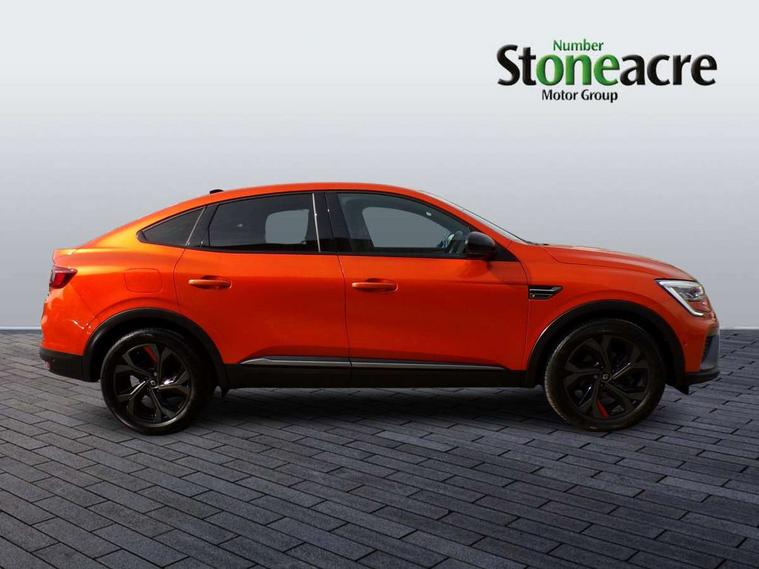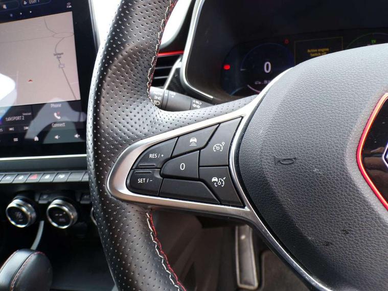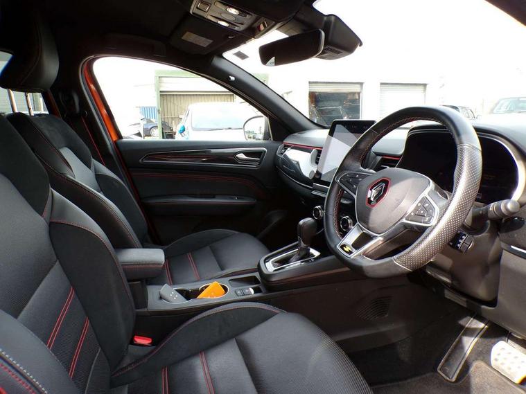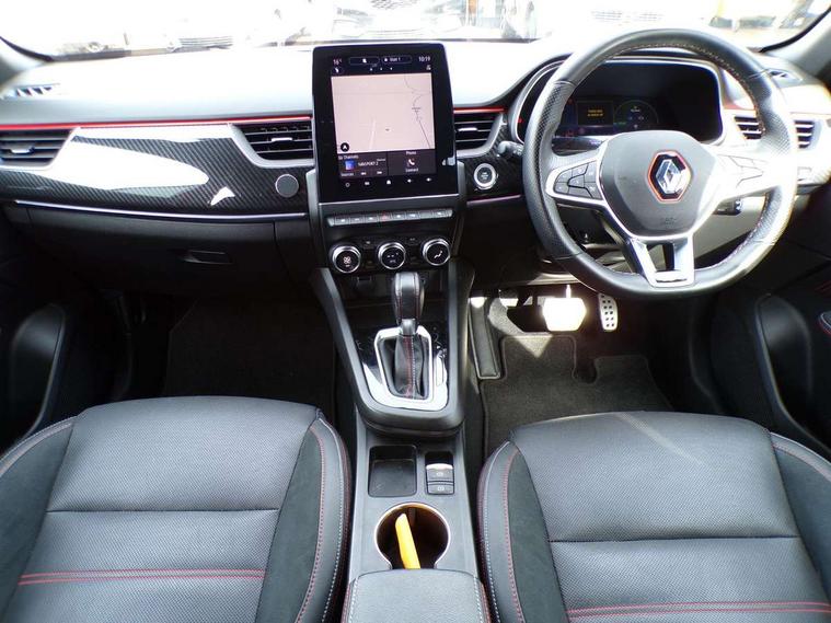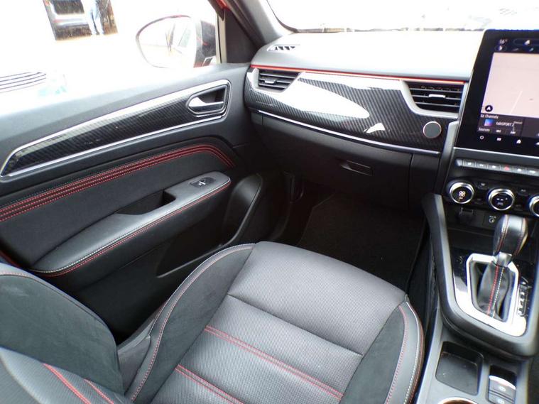 7" TFT Driver information display, Blind spot warning, Bluetooth system, EASY LINK 9.3" portrait touchscreen with navigation, Google search and traffic information, eCall emergency call system, Eco mode, EV button to activate pure mode, Front and rear parking sensors, Gear change indicator, Lane departure warning, Lane keep assist, Multi-sense - 3 driving modes and 8 ambient lighting, Rear cross traffic alert, Rear view camera, Renault automatic emergency assist, Smartphone integration compatible with Apple CarPlay and Android Auto, Traffic sign recognition with over speed prevention, Trip computer, Variable assistance electric power steering, Wireless phone charger, DAB radio, USB port, 3rd brake light, Auto dimming rear view mirror, Automatic headlights, Automatic high / low beam, Automatic windscreen wipers with rain sensor, Black side door protection with gun metal insert, Body coloured bumpers, C-shaped LED front signature lighting, Chrome decopart on wing (fender molding) with R.S. Line badge, Double chromed exhaust tailpipes elements, Extra tinted rear windows and tailgate, Frameless rear view mirror, Front and rear electric windows, Front bumper with F1 blade and honeycomb front grille, Front driver window with one touch facility and anti-pinch function, Front grille with chrome on upper part, Full LED headlights, Glossy black door mirror and lower window lining, Gun Metal front and rear skid plates, Heated rear window, R.S. Line badges on front wing and hatch door, Rain sensor, Rear windscreen wiper, Shiny black shark fin antenna, Side mirrors adjustable electrically, electrically foldable, with defrosting and temperature sensor, automatically foldable at vehicle closure, 3 seat bench in 2nd row, 60:40 split and fixed base rear seats, Aluminium pedals, Automatic climate control with combined filter, humidity sensor and AQS, Black interior roof lining, Carbon style dashboard, Central console with storage, Driver's seat height adjustment, Electrically adjustable front seats, Front and rear head restraints, Height and reach adjustable steering wheel, ISOFIX child seat fixing points on rear outermost seats, LED front and rear roof lights, Passenger seat height adjuster, R.S. line black suede-leather upholstery with red/grey stiching, R.S. Line perforated leather steering wheel with red/black harmony and R.S. Line badge, Rear air vents, Red inserts on air vents, Single front passenger seat, Parking Pack - Hands-free parking & flank protection - Arkana, Winter pack - Arkana, 3x3 point rear seat belts, ABS+EBA, Active emergency braking system, B Brake Mode - One pedal driving with increased regenerative braking, Distance warning alert, Driver airbag, Driver and passenger front and side airbag deactivation, Driver and passenger side airbags, Driver height adjustable seat belt, Electronic parking brake with auto hold, ESC (Electronic Stability Control), Front and rear no seatbelt warning sound, Front curtain airbags, Front head airbags, Hill start assist, Passenger airbag, Tyre pressure warning light, Anti drill door locks and locking fuel cap, Central door locking, Deadlocking system, Hands free keycard with Keyless access and start, RAID (Renault Anti-Intruder Device) automatic door locking, Rear side wing door and window child locking function (front driver door control panel), Superlocking, Thatcham alarm, 18" Silverstone diamond alloy wheels with red inserts,