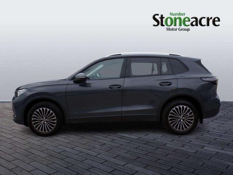 Adaptive cruise control (ACC), Advanced driver attention and drowsiness monitor, Bluetooth mobile phone interface, Car2X technology, Digital Cockpit Pro - 10.25" high resolution dash display screen with customisable menus and information, Dynamic road sign display, E-Sim card for online connectivity, eCall emergency call service, Front Assist - Autonomous emergency braking with pedestrian and cyclist monitoring, Lane change system, Side assist, Rear traffic alert and Exit warning system, Lane keeping system Lane Assist, Multifunction front facing camera, Oncoming vehicle braking when turning including swerve support, Park assistance plus with front and rear parking sensors, Power assisted steering with speed sensitive, Start/stop system with regenerative braking, Warning signal and warning light for front and rear seatbelts not fastened, Wireless App-Connect, Front wheel drive, Digital radio reception (DAB), Diversity antenna for FM reception, Ambient lighting with logo projection, Auto dimming interior rear view mirror, Automatic headlight control system, Body coloured bumpers and air intake with chrome trim, Body coloured door handles, Body-coloured exterior mirror housings, Coming/leaving home lighting function, Heat insulating glass in side and rear windows, Heat insulating windshield, Heated rear window, High level 3rd brake light, Illuminated door handle recesses, Illuminated lightline between headlamps, Rain sensor windscreen wipers, Rear fog light on one side, reversing light on both sides, Rear side wing doors, Rear wiper, 12V outlet in center console rear and in luggage compartment, 12V socket in centre console, 3 bench rear seats in 2nd row, Air care climatronic 3 zone air conditioning system with rear air conditioning control panel, Carpet mats, front and rear, Centre console with illuminated storage compartment with sliding cover and two drinks holders, Ceramique headlining, Door and side trim panel in foam film and woven fabric, Front centre armrest, ISOFIX anchors for child seats on outer rear seats and front passenger seat. Compatible with i-Size, Mechanical rear seat release, Power adjustable lumbar support in front, Rear bench seat, split folding, longitudinally movable and folding with load-through hatch and centre armrest, Safety optimised front head restraints, Single front passenger seat, Sun visors with illuminated vanity mirrors, Three rear head restraints, Variable luggage compartment floor, Comfort package with park assist plus and Safelock - Tiguan, Design package - Tiguan, 3 point seat belt for centre rear seats, 3 Point seat belts in front with pretensioners, 3 point seatbelts in outer rear with ECE label, Driver and front passenger airbag with front passenger airbag deactivation, Electronic parking brake with auto hold, Front and rear curtain airbags, Front and rear side airbags, Front centre airbag, Front disc brakes, Manual child proof rear door locks, Rear disc brakes, Two tone horn, Warning triangle, Anti theft wheel bolts, Soul instrument panel, Airstop tyres,