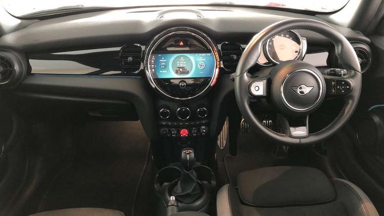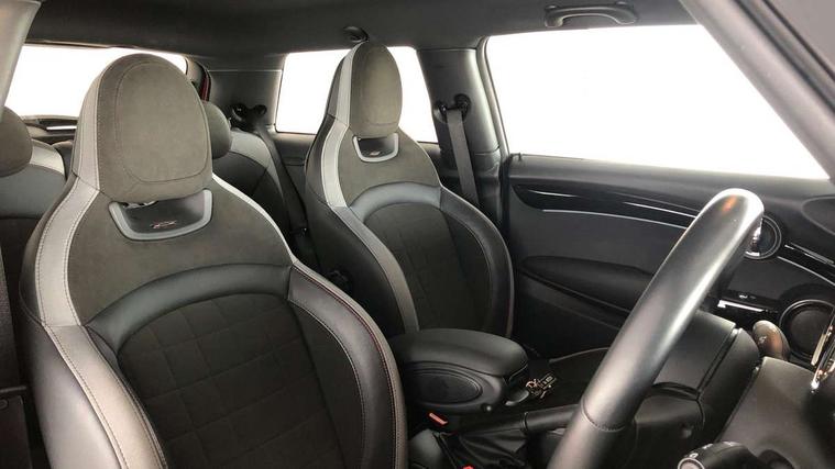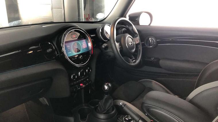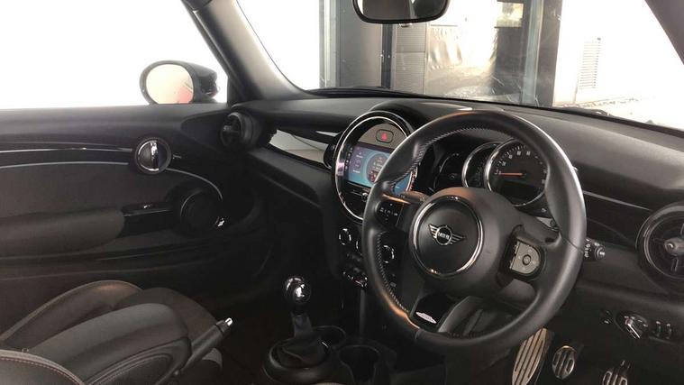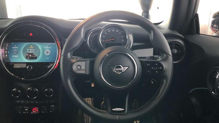 Apple CarPlay, Automatic start/stop function with brake energy recuperation, Compatible mobile phone bluetooth with audio streaming, Cruise control with brake assist, Electro-mechanical speed dependant steering assistance, Flexible car sharing preparation, Instrument cluster, MINI Driving Modes - centre toggle switch to control driving setting (sport, mid and green), Mini E-call, MINI TeleServices, On board computer, Rear park distance control, Service interval indicator, 6 Speed manual transmission including gear change indicator display, Double Vanos system, Fully variable valve control, High precision injection, Intelligent adaptive suspension, Performance Control, 8.8" touchscreen with LED ring, FM tuner and DAB digital radio, 3rd brake light, Automatic headlight activation switch, Bonnet scoop, Dynamic brake lights, Electric front windows, Heated rear window, Heated windscreen washer jets, JCW Aerodynamic kit - Front and rear bumpers with sporty JCW styling and part-painted side sills with MINI John Cooper Works door sill finishers, John Cooper Works rear spoiler, LED headlight with closed ring and daytime driving lights, Metal door sill strips with Cooper S, Model logo Cooper S on right of tailgate, Radiator grille chrome border with honeycomb structure including S Badge, Rain sensor window wipers, Rear fog lights, Rear LED lights with union jack design, Rear window wiper, Side scuttle panel with integrated indicator, Sun/heat protection glass, Two central exhaust tailpipes with chrome finisher, White indicator lenses, 12V Accessory socket in centre console, 2 seat bench in 2nd row, 4 lashing eyes in luggage compartment, 60/40 split folding rear seat, Anthracite headliner including grab handles and clothes hooks, Carbon black colour line - Knee roll and door armrest, Chrome interior highlights, Cupholders, Front and rear isofix with front passenger airbag deactivation, Front floor mats in velour, Glove compartment, Height and length steering column adjustment, Interior lighting with 12 different colours across the dashboard, underneath door bezel with illuminated laser-engraved design on central display, JCW Sport seats with integrated headrests, adjustable thigh support and John Cooper Works logo, Leatherette gearshift lever and handbrake gaiters, LED reading lights, vanity mirror lights, front foot well light and spotlight on front seats, Manual air conditioning, Mechanical seat adjustment - forward/back & backrest for front seats and driver seat height adjust, Multifunction steering wheel, Passenger seat height adjuster, Single front passenger seat, Storage compartments in doors, Storage pocket on back of front seats, Sunvisors with vanity mirrors, Walknappa leather steering wheel with grey seam and John Cooper Works badge on Piano Black lower steering wheel spoke, Piano black exterior pack - Mini Hatchback Cooper S, 3 point seatbelts on all four seats, 6 Airbags - front, side, head and seat belt tensioners, Anti-lock braking system (ABS), DSC - Dynamic Stability Control, Front and rear disc brakes, Two tone horn, Tyre pressure monitoring system, Alarm system with tilt sensor, monitoring doors, bonnet interior and tailgate, Electronic vehicle immobiliser, Start/stop toggle with keyless go, Piano black interior trim, Tool kit,