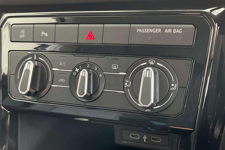 'Lights On' Reminder warning buzzer, Advanced driver attention and drowsiness monitor, Bluetooth telephone and audio connection for compatible devices, Car information display, Dynamic road sign display, E-Sim card for online connectivity, eCall emergency call system, Front and rear parking sensors, Front assist, forward collision warning, autonomous emergency braking and speed limiter, Low washer fluid warning light, Multifunction computer with visual gear change recommendation for fuel consumption, Multifunction front facing camera for distance control, Operating permit alteration, Power assisted steering, Predictive adaptive cruise control, Preparation for navigation system with media and internet package, Preparation for We connect and We connect plus, Rear view camera, Semi-automated driving assistance, travel assist including lane keeping system Lane Assist and emergency assisst, Side assist, Speedo, rev counter, electronic odometer, trip, service interval display, exterior temperature and fuel gauge, Warning sound and light for doors and tailgate open, Warning sound and light for front seatbelts unfastened, Wireless Car net app connect with Apple CarPlay, combined functionality of Apple CarPlay/Android Auto and MirrorLink, Wireless charging, Misfuel prevention device, Start-stop system with battery regeneration (recuperation - energy recovery during braking), 2 USB C ports in front, 2 USB charging sockets on the centre console in the rear charging capacity upto 45W, DAB Digital radio receiver, Diversity antenna for FM reception, Multi device interface (MDI) with USB connection, Music playback - MP3, WMA and AAC files, Radio, Automatic dimming interior rear view mirror, Automatic hazard lights activation under emergency braking, Automatic headlight control with LED separate daytime running light and coming home and leaving home feature, Black roof rails, Body colour door handles, Body colour door mirrors, Body coloured bumpers, Electric folding door mirror, adjustable, heated with front passenger exterior mirror lowering function, Exterior mirrors convex on the left and aspherical on the right, Front and rear electric windows, Galvanised body, Headlight range control, Heat insulating and laminated safety glass windshield, Heat insulating darkened glass in side and rear windows, High Beam Assist, automatic sensing for switching between dipped and main beam, LED rear combination lights, LED third brake light, Lower door sills and door pillars in black, Privacy glass for rear side windows and rear window, Rain sensor, Rear fog light on one side, reversing light on both sides, Rear side wing doors, Rear window aerial, Rear window wiper with intermittent control, Reflectors in all doors, Scuff plates, Tailgate with integrated roof spoiler, 12V Accessory socket in centre console, 3 rear head restraints, 3 seat bench in 2nd row, 60/40 split folding rear seat backrest, Ambient lighting and logo projection, Ceramique roof lining, Cloth upholstery, Door and side trim panel, Driver and front passenger sunvisor with vanity mirror, Dust and pollen filter, Front + rear carpet mats, Front and rear reading lights X 2, Front centre armrest with storage compartment, Front seat back storage pockets, Glove compartment door with light, Heating and fresh air system with 4 stage blower, Height/reach adjust steering wheel, Instrument lighting white adjustable panel illumination, Interior light with switch off delay and dimmer, Isofix anchors for child seats on outer rear seats and front passenger seats, Leather gearshift handle, Leather wrapped multifunction steering wheel, Luggage compartment floor, Luggage compartment lighting, Manual front seats with height adjustment, Padded dashboard, Removable luggage compartment cover, Single front passenger seat, Storage compartment in drivers and front passengers door, Unsplit sliding rear seat bench, Without drawers under front seats, 3 point outer rear seat belts with ECE label, 3 Point seatbelt for centre rear seat, Anti-lock Braking System (ABS) with Hydraulic Brake Assist (HBA), Automatic post collision braking system, Disc brakes in front, Driver and front passenger safety-optimised head restraints, Drivers and Front Passengers airbags with front passengers airbag deactivation switch, Drum brakes in rear, ESC with EDL and ASR (traction control), Extended and predictive pedestrian/cyclist protection, Front and rear passenger curtain airbag system including front side airbags, Height adjustable front 3 point seatbelts + pretensioners, Hill start assist, Pre crash preventive occupant protection, Proactive passenger protection system in combination with front assist, Rear door child safety locks, Rigid safety cell with front and rear crumple zones, Single tone horn, Tyre pressure loss indicator, Volkswagen roadside assistance, Alarm with interior protection, Anti theft alarm system, Electronic engine immobiliser, Remote keyless entry using key fob including Start/Stop button on centre console with SAFELOCK, Remote tailgate unlocking using key fob, Low rolling resistance tyres,
