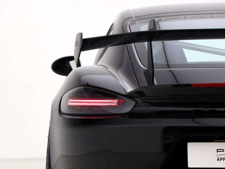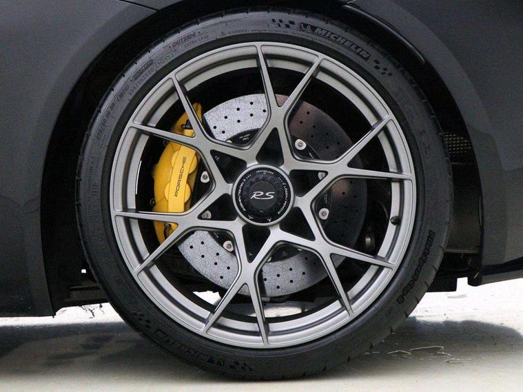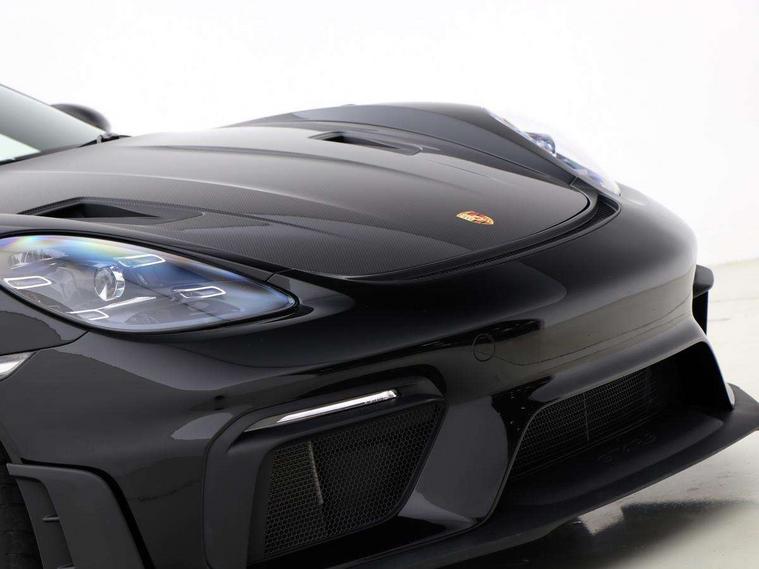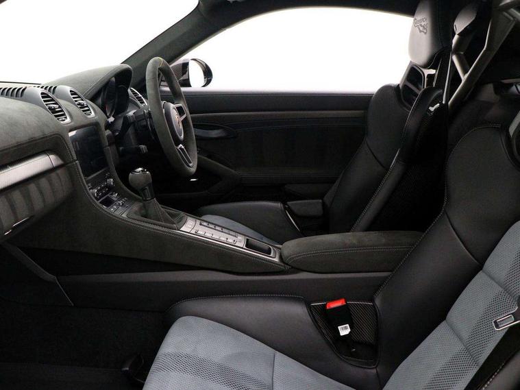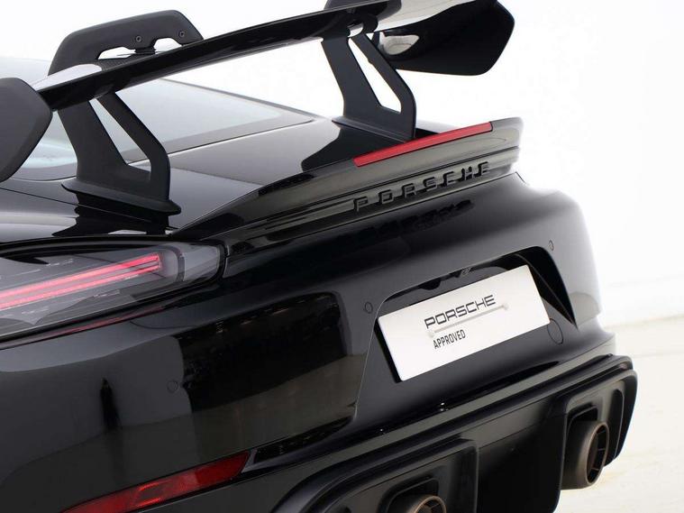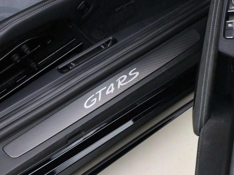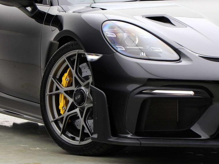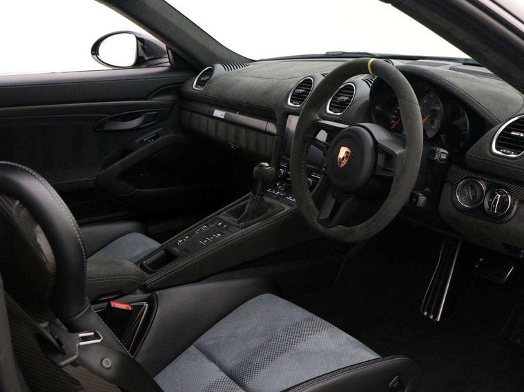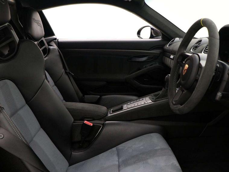 Auto start and stop system, Cruise control, Digital displays for vehicle speed, chosen gear, odometer, trip odometer and clock, eCall emergency call system, Electromechanical power steering with variable steering ratio and speed dependent steering assistance, Instrument cluster with central rev counter and high-resolution 4.6 inch colour display, Porsche track precision app, 64 litre fuel tank, Adjustable chassis for race track use (toe, camber, anti-roll bars), Adjustable race track chassis with RS specific spring rates and shock absorber tuning, Aluminium block and cylinder heads, Closed underbody panelling, Direct fuel injection (DFI), Dry sump lubrication with separate engine oil tank, Dynamic gearbox mount system, Electronically control damping system with 2 manual selectable Normal and Sport modes, Forged titanium connecting rods, Gasoline particulate filter, Oil supply with fully variable pressure oil pump, 7 suction stages, oil centrifuge and additional oil supply via crankshaft, Porsche Active Suspension Management (PASM) sport suspension with lowered 30mm ride height, Porsche Doppelkupplung (PDK) - 7 speed dual clutch transmission with manual control by steering wheel gearshift paddles and GT specific gear selector, Porsche stability management (PSM) including ABS with two switchable stages (ESC OFF and ESC+TC OFF), Porsche TORQUE Vectoring (PTV) with mechanical rear differential lock, Rear wheel drive, Two seater vehicle with mid mounted engine, Two three-way catalytic converters and on-board diagnostics for monitoring emission control system and coated particulate filter, Variable intake manifold with two switchable resonance valves, VarioCam Plus variable valve timing and switchable valve lift, Water cooled with thermal management, DAB Digital radio, Integrated 4G/LTE compatible SIM including data for the Porsche Connect Services, Integrated compatible SIM including Porsche Connect Services, Navigation incl porsche + Apple Carplay, connect module, wireless internet access, carfinder, remote vehicle status, remote service and vehicle track, USB interface in central storage compartment, Wifi and music streaming, Automatic headlight activation including welcome home lighting, Black side window trim, Body colour bumpers, Bonnet made of carbon fibre reinforced plastic (CFRP) in exterior colour with black NACA air inlets for brake cooling, Centre wheel bolts in black including wheel hub cover with RS logo in silver, Electrically adjustable heated exterior mirrors on door waist rails, aspherical on driver's side, Exclusive design fuel filler cap, Fixed rear spoiler, Flow optimized stainless steel lightweight sports exhaust system with 2 tailpipes made of stainless steel in high gloss black, Front apron with large cooling intakes with grilles and spoiler lip with recessed GT4 RS logo in black and central air outlet, Front wheel arches made of carbon fibre reinforced plastic (CFRP) in exterior colour including wheel arch ventilation in black, Green tinted heat insulating glass, Grey top tinted windscreen, Heated rear windscreen, Intelligent lightweight body in Aluminium/Steel composite construction, LED 3rd brake light, LED tinted taillights and integral 4-point brake lights and reversing lights, Porsche logo in accent trim on rear apron painted in satin black, Power windows with one touch operation and door seal protection, Rain sensor, Rear apron lower part in black with diffuser including fins, Rear boot, Separate tinted auxiliary lights in the front end with LED indicators and position lights, Side air intakes with one grille, sideblades including GT4 RS logo in black synthetic, Variable intake system with two switchable resonance flaps and six individual throttle valves, Wide opening rear hatch with rear screen made of lightweight glass, Windscreen washer system with aero wiper blades and washer jets, 12V sockets in passenger footwell, Adjustable fan with air recirculation and defroster functions, Airbox cover with GT4 RS logo in silver and black, Ascending centre console with uncovered storage compartment and closed storage compartment, Footwell illumination, Front and rear luggage compartments, Front headrests, Heated seats, LED reading lights, orientation, ignition lock, additionally luggage compartment and glove compartment lighting, Lightweight door panels with storage net in black and opening loops in arctic grey, Lockable glovebox, PDK gear changer lever with manual alley, grip area and shiift gaiter in Race tex, shift pattern in racing yellow, Race-Tex roof lining and A pillar trims, RS sport steering wheel, Single front passenger seat, Sports look pedal and footrest with stainless steel surround in matt brushed, Storage compartments in each doors, Two individual cup holders (Passenger side, integrated into dashboard trim strip), Two zone automatic climate control, Carbon interior pack in satin finish - Cayman, Interior pack with items in leather and Race-tex - Cayman, ASR, Electrically controlled parking brake, Front seatbelt pretensioners + load limiters, Full size driver and passenger airbags, Lightweight spring strut axle front/rear, McPherson front axle + lightweight springs incl helper, anti-roll bar, all suspension mountings ball jointed, Passenger airbag deactivate switch, Porsche side impact protection doors with thorax airbag in outer backrest side bolster and head airbag for driver/passenger in door panel, Tyre pressure monitoring system (TPM) with track mode, Alarm system with interior surveillance, Dashcam preparation, Engine immobiliser with in key transponder, central locking and remote control, Tyre repair kit,