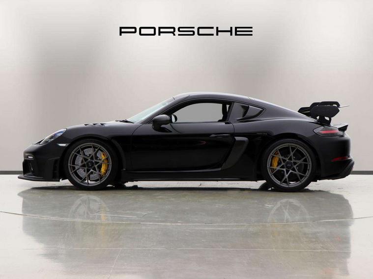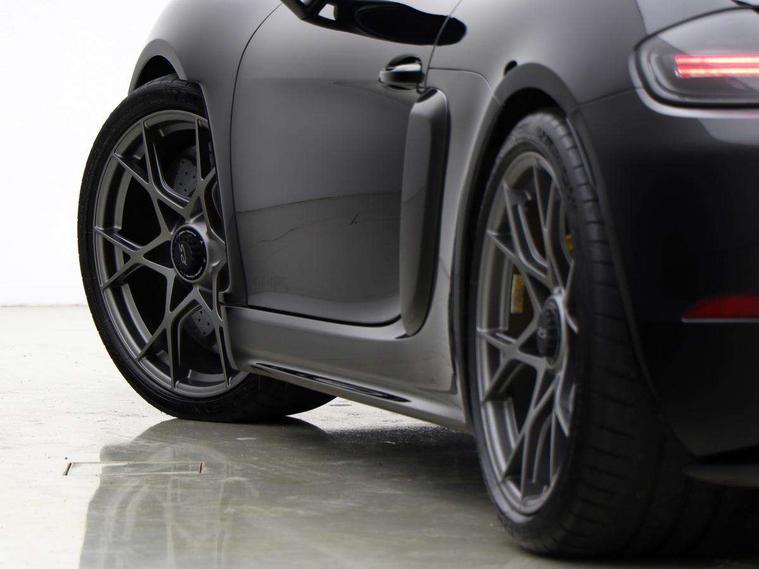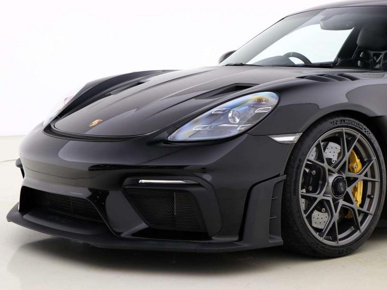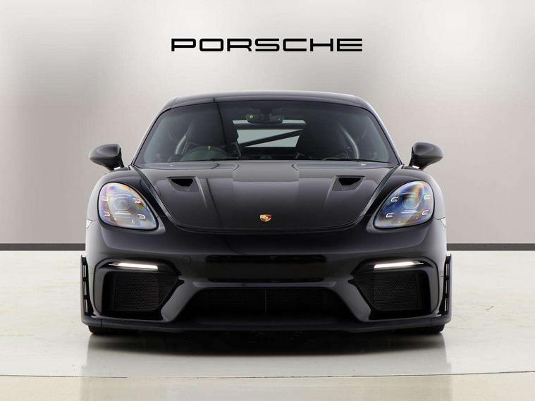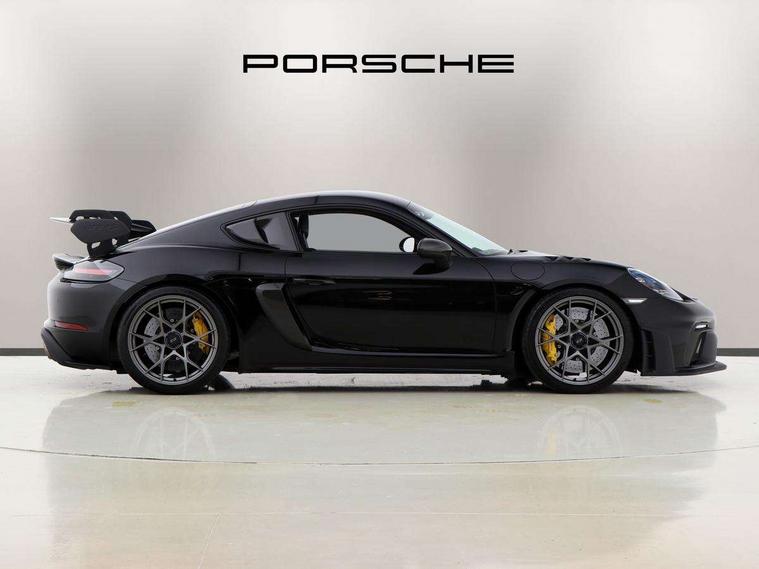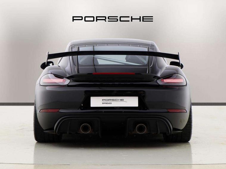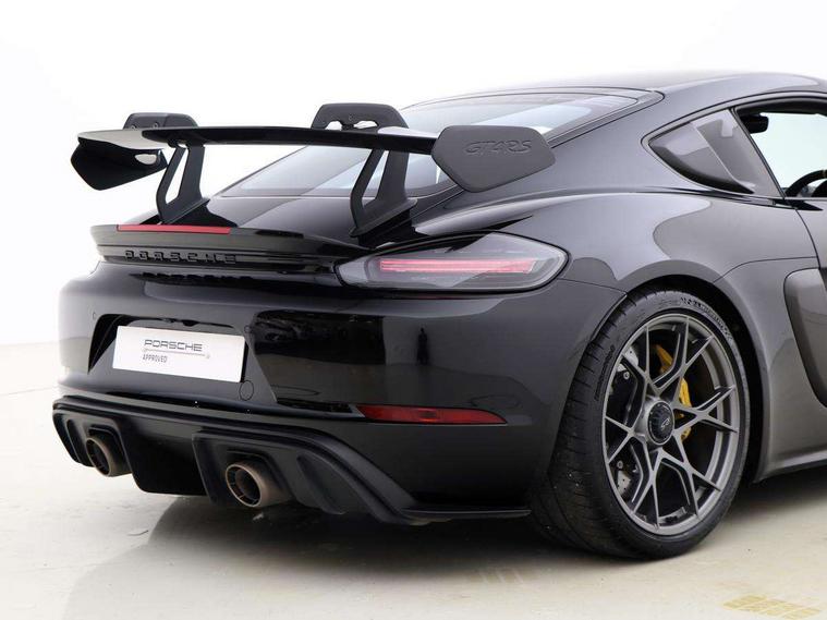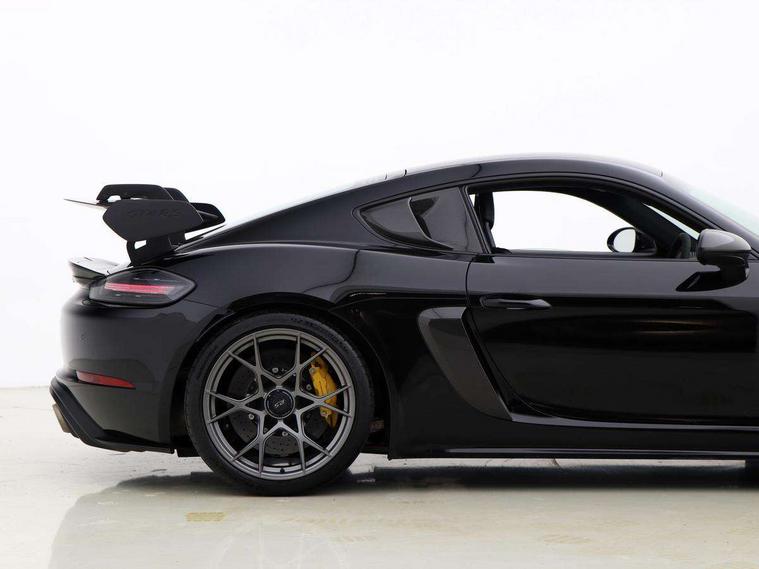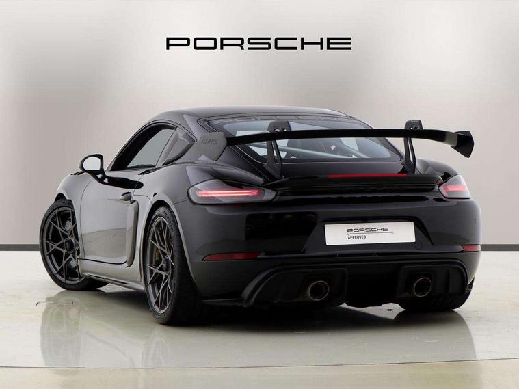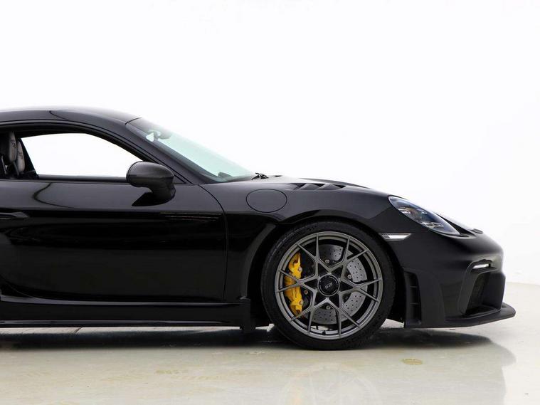 Auto start and stop system, Cruise control, Digital displays for vehicle speed, chosen gear, odometer, trip odometer and clock, eCall emergency call system, Electromechanical power steering with variable steering ratio and speed dependent steering assistance, Instrument cluster with central rev counter and high-resolution 4.6 inch colour display, Porsche track precision app, 64 litre fuel tank, Adjustable chassis for race track use (toe, camber, anti-roll bars), Adjustable race track chassis with RS specific spring rates and shock absorber tuning, Aluminium block and cylinder heads, Closed underbody panelling, Direct fuel injection (DFI), Dry sump lubrication with separate engine oil tank, Dynamic gearbox mount system, Electronically control damping system with 2 manual selectable Normal and Sport modes, Forged titanium connecting rods, Gasoline particulate filter, Oil supply with fully variable pressure oil pump, 7 suction stages, oil centrifuge and additional oil supply via crankshaft, Porsche Active Suspension Management (PASM) sport suspension with lowered 30mm ride height, Porsche Doppelkupplung (PDK) - 7 speed dual clutch transmission with manual control by steering wheel gearshift paddles and GT specific gear selector, Porsche stability management (PSM) including ABS with two switchable stages (ESC OFF and ESC+TC OFF), Porsche TORQUE Vectoring (PTV) with mechanical rear differential lock, Rear wheel drive, Two seater vehicle with mid mounted engine, Two three-way catalytic converters and on-board diagnostics for monitoring emission control system and coated particulate filter, Variable intake manifold with two switchable resonance valves, VarioCam Plus variable valve timing and switchable valve lift, Water cooled with thermal management, DAB Digital radio, Integrated 4G/LTE compatible SIM including data for the Porsche Connect Services, Integrated compatible SIM including Porsche Connect Services, Navigation incl porsche + Apple Carplay, connect module, wireless internet access, carfinder, remote vehicle status, remote service and vehicle track, USB interface in central storage compartment, Wifi and music streaming, Automatic headlight activation including welcome home lighting, Black side window trim, Body colour bumpers, Bonnet made of carbon fibre reinforced plastic (CFRP) in exterior colour with black NACA air inlets for brake cooling, Centre wheel bolts in black including wheel hub cover with RS logo in silver, Electrically adjustable heated exterior mirrors on door waist rails, aspherical on driver's side, Exclusive design fuel filler cap, Fixed rear spoiler, Flow optimized stainless steel lightweight sports exhaust system with 2 tailpipes made of stainless steel in high gloss black, Front apron with large cooling intakes with grilles and spoiler lip with recessed GT4 RS logo in black and central air outlet, Front wheel arches made of carbon fibre reinforced plastic (CFRP) in exterior colour including wheel arch ventilation in black, Green tinted heat insulating glass, Grey top tinted windscreen, Heated rear windscreen, Intelligent lightweight body in Aluminium/Steel composite construction, LED 3rd brake light, LED tinted taillights and integral 4-point brake lights and reversing lights, Porsche logo in accent trim on rear apron painted in satin black, Power windows with one touch operation and door seal protection, Rain sensor, Rear apron lower part in black with diffuser including fins, Rear boot, Separate tinted auxiliary lights in the front end with LED indicators and position lights, Side air intakes with one grille, sideblades including GT4 RS logo in black synthetic, Variable intake system with two switchable resonance flaps and six individual throttle valves, Wide opening rear hatch with rear screen made of lightweight glass, Windscreen washer system with aero wiper blades and washer jets, 12V sockets in passenger footwell, Adjustable fan with air recirculation and defroster functions, Airbox cover with GT4 RS logo in silver and black, Ascending centre console with uncovered storage compartment and closed storage compartment, Footwell illumination, Front and rear luggage compartments, Front headrests, Heated seats, LED reading lights, orientation, ignition lock, additionally luggage compartment and glove compartment lighting, Lightweight door panels with storage net in black and opening loops in arctic grey, Lockable glovebox, PDK gear changer lever with manual alley, grip area and shiift gaiter in Race tex, shift pattern in racing yellow, Race-Tex roof lining and A pillar trims, RS sport steering wheel, Single front passenger seat, Sports look pedal and footrest with stainless steel surround in matt brushed, Storage compartments in each doors, Two individual cup holders (Passenger side, integrated into dashboard trim strip), Two zone automatic climate control, Carbon interior pack in satin finish - Cayman, Interior pack with items in leather and Race-tex - Cayman, ASR, Electrically controlled parking brake, Front seatbelt pretensioners + load limiters, Full size driver and passenger airbags, Lightweight spring strut axle front/rear, McPherson front axle + lightweight springs incl helper, anti-roll bar, all suspension mountings ball jointed, Passenger airbag deactivate switch, Porsche side impact protection doors with thorax airbag in outer backrest side bolster and head airbag for driver/passenger in door panel, Tyre pressure monitoring system (TPM) with track mode, Alarm system with interior surveillance, Dashcam preparation, Engine immobiliser with in key transponder, central locking and remote control, Tyre repair kit,