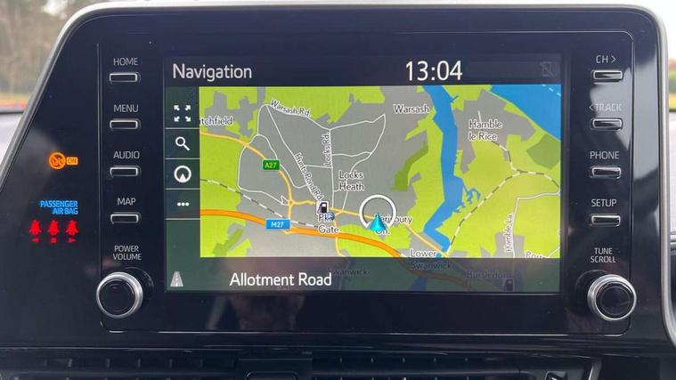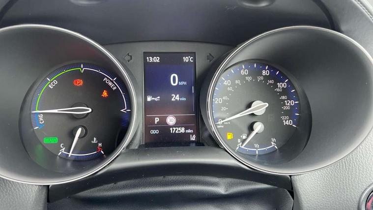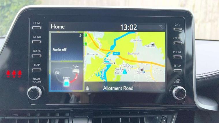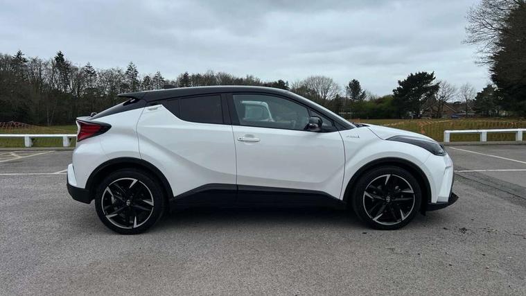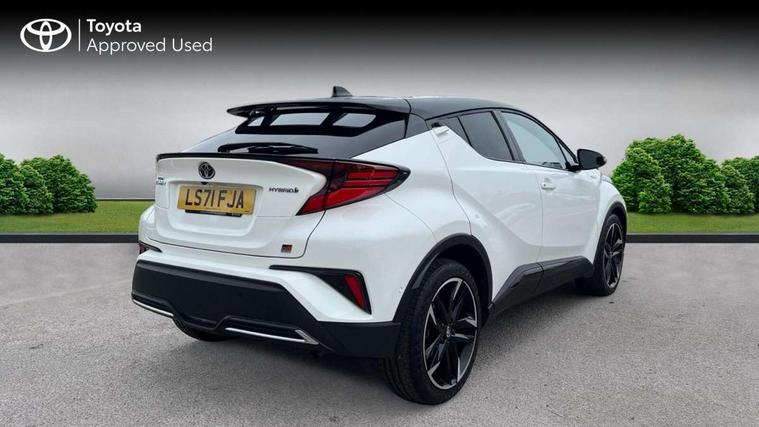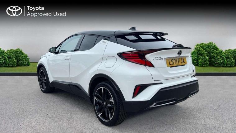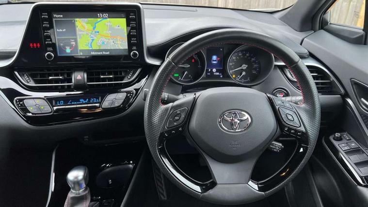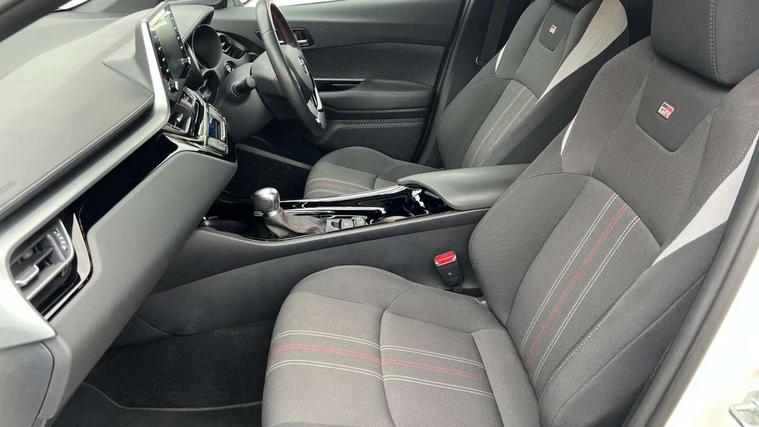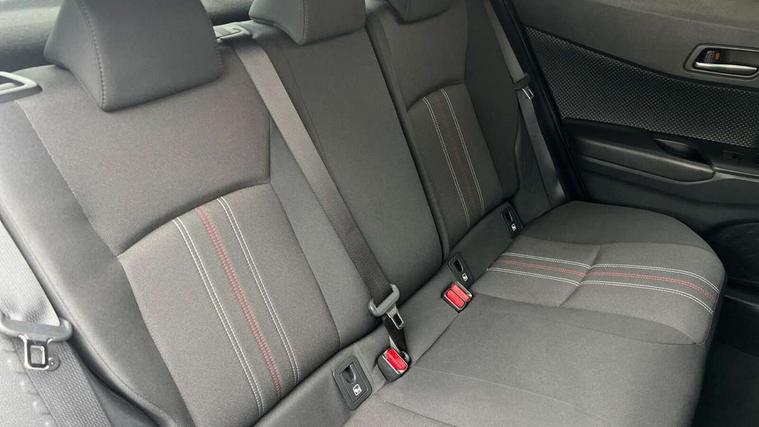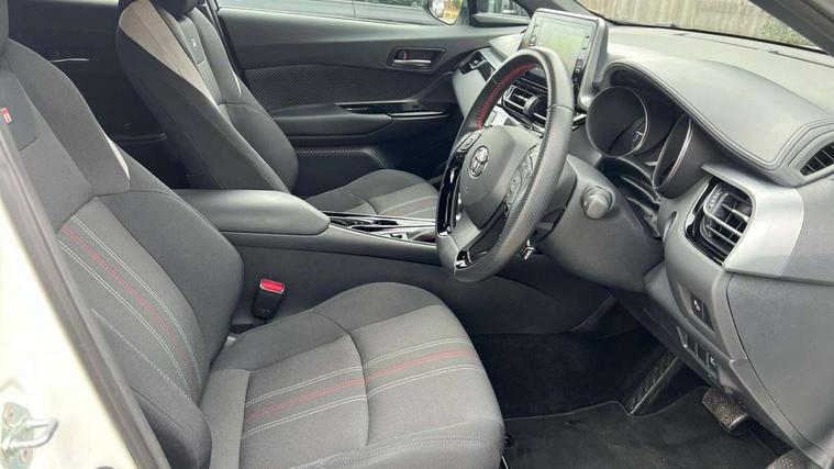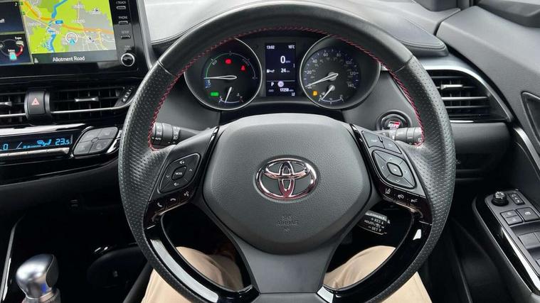 4.2" coloured TFT screen for multi-information display, Adaptive cruise control, Bluetooth connectivity, Electric power steering, Hybrid system indicator, Lane departure alert with steering control, Remote boot door release in cabin, Remote boot door release in key, Reversing camera, Road sign assist - RSA, Simple Intelligent parking assist, Touch 2 Go navigation system, Trip computer, Voice recognition, Vehicle Stability Control (VSC), 6 speakers, AM/FM radio, DAB Radio (Digital Audio Broadcasting), Toyota touch 2 multimedia system with 8" display, USB connector, Wi-fi connectivity, Adaptive front light system, Adaptive LED Headlights, Anti-jam protection on power windows, Auto high beam, Auto up and down function on all power windows, Automatic headlight levelling, Automatic headlights, Automatic headlights cut-off, Black and body coloured rear bumper, Black upper front grille, Body colour door handles, Body colour door mirrors, Body coloured front bumper, Boot door release with push button, Chrome front lower bumper, Electric heated door mirrors, Follow me home headlights, Front and rear power windows, Front spoiler lip in black, Honeycomb lower front grille, LED daytime running lights, LED fog lights, LED front light guide, LED High mounted stop light, LED rear brake lights, LED rear combination lights, Noise reduction layer on front windows and windscreen, Power adjustable door mirrors, Privacy glass, Rear sequential indicators, Rear spoiler, Rear tailgate, Rear window defogger, Rear window wiper, Shark fin antenna, UV-filter on driver and passenger windows, UV-filter on rear windows, 12v power outlet - front, 3 rear headrests, 3 spoke perforated leather steering wheel, 60/40 split folding rear seat, Adjustable rear headrests, Adjustable speed limiter switch on steering wheel, Assist grips front and centre pillar, Audio and telephone switches on steering wheel, Black front door assist grips, Blue ambient lighting on front cup holders, Blue ambient lighting on front doors, Boot light, Chrome interior door handles, Driver and front passenger personal light, Driver and front passenger Whiplash Injury Lessening seats, Driver and passenger seatback pockets, Dual zone automatic air conditioning, Fabric upholstery, Floor mats, Front cupholders, Front head restraints, Front sports seats, Glovebox with internal light, Hard tonneau cover, Heated driver and front passenger seats, Hooks for luggage holding net, Humidifying Nanoe air purifier, Illuminated entry system, Isofix attachments on outer rear seats, Leather gearshift, Light on driver sun visor, Light on passenger sun visor, Manual telescopic steering wheel, Manual tilt steering wheel, Manually height adjustable driver seat, Manually height adjustable front passenger seat, Manually reclining driver seat, Manually reclining front passenger seat, Manually sliding driver seat, Manually sliding front passenger seat, Microphone on front personal light, Mirror on driver sun visor, Mirror on passenger sun visor, Multimedia switches on steering wheel, Pollen filter, Power adjustable lumbar support on driver seat, Shopping bag hooks, Slow opening on lower glovebox, Voice recognition switch on steering wheel, Tech with parking sensor pack - C-HR, 16 Disk front wheel brake, 3x3 point rear seatbelts, ABS+EBD+Brake assist, Electronic parking brake, Front and rear seatbelt reminder, Front passenger airbag on/off switch, Hill start assist control (HAC), Pre collision system with pedestrian detection, Pre-tensioners and force limiters, Rear door child safety locks, SRS Airbags - Driver + Front passenger, front side, front and rear curtain and driver's knee airbags, Toyota safety sense, Tyre pressure monitoring system, Acoustic vehicle alert system (AVAS), Glass-breaking alarm sensors, Immobiliser, Intrusion alarm, Intrusion sensor, Motion sensor alarm, Power door locks, Power passenger window lock, Remote central locking, Black lower dashboard, Black upper dashboard, Piano black console, Silver deco line on upper dashboard, 19" Black machined alloy wheels, Tyre repair kit,