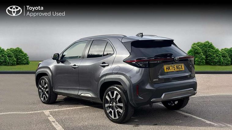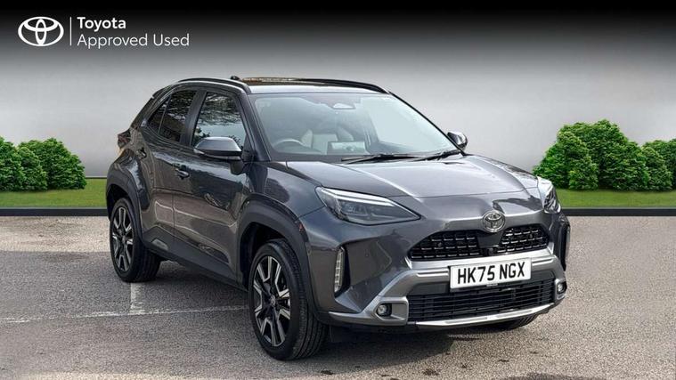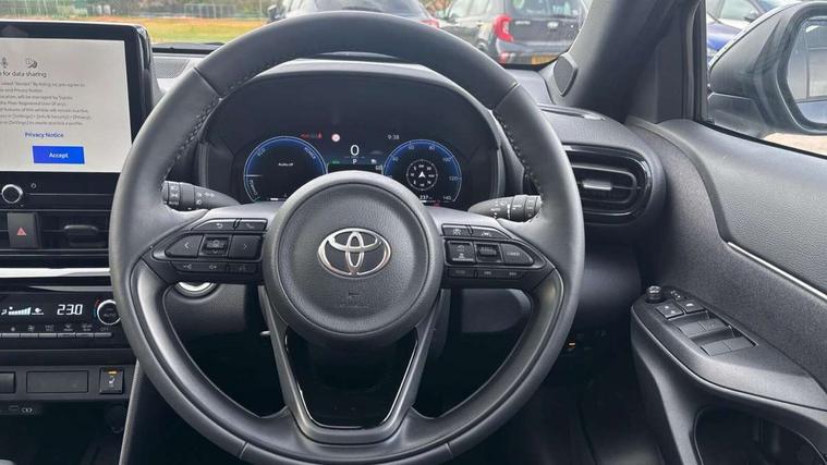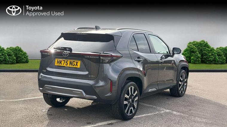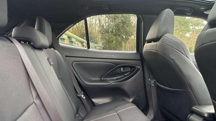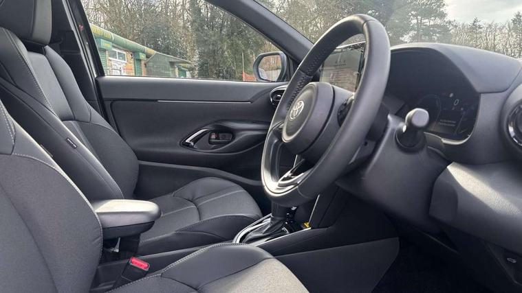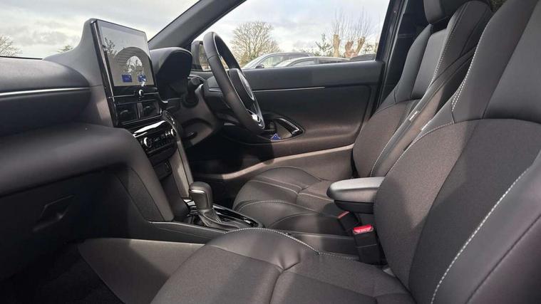 10.5" Multimedia display screen, 10.5" Toyota smart connect+ with navi multimedia system with wireless Smartphone integration incl Apple CarPlay, 360 degree panoramic view monitor, 7" Multi information display screen, Adaptive cruise control, multi info switches on steering wheel, Adjustable speed limiter, Advanced parking assist, Blind spot monitoring, Bluetooth connectivity, Color multi-information display, Digital speedometer, Digital tachometer, Drive mode selector, Driver attention alert system, Dynamic guide lines on reversing camera, eCall emergency system, Electric power steering, Emergency driving stop system, Full range intelligent adaptive cruise control, Hybrid system indicator, Intelligent front and rear parking sensors with clearance sonar and automatic braking, Intersection turn assist, Key reminder warning, Lane change assist, Lane trace assist, My T Connected services, Power tailgate, Pre-collision system enhanced with emergency steering assist, Rear cross traffic alert, Remote boot door release in cabin, Road sign assist - RSA, Safe exit assist, Tailgate, Telephone switch on steering wheel, Wireless Mobile Phone Charger, Steering assisted vehicle stability control, 6 speakers, DAB Digital radio, Front USB Type-C connector, Front USB-C device charger, Acoustic windscreen glass, Anti-jam protection on power windows, Auto dimming rear view mirror, Auto high beam [AHB] with on/off switch, Auto intermittent windscreen wipers, Automatic headlights, Automatic headlights cut-off, Automatically retractable door mirrors, Black door moulding, Black lower front grille, Black protection moulding on side doors, Black roof rails, Black wheel arch mouldings, Body colour door handles, Body colour front bumper, Body colour rear bumper, Electric adjustable heated door mirrors, Follow me home headlights, Front and rear electric windows with auto up/down function, Gloss black upper front grille, Headlight cut off reminder, Indicators integrated on door mirrors, Intermittent rear wiper, Kick activated power back door, LED 3rd brake light, LED daytime running lights guide, LED front fog lights, LED front light guide, LED Indicators, LED projector headlights, LED rear lights with sequential indicators, Manual headlight levelling, Meshed shape upper front grille, Noise reduction layer on windscreen, Pre wiring for towing hook, Privacy glass, Rain sensor, Rear roof spoiler, Rear side wing doors, Rear window defogger, Shark fin antenna, 12v power outlet - front, 12V power point in boot, 2x Rear coat hooks, 3 seat bench in 2nd row, 3 spoke leather steering wheel, 40/60 split deckboard, 40:20:40 split folding rear bench seat, Adjustable rear headrests, Adjustable speed limiter switch on steering wheel, Boot light, Central armrest, Driver and front passenger personal lights, Driver and front passenger Whiplash injury Lesseing seats, Driver and passenger seatback pockets, Dual zone automatic air conditioning, Fabric door trim, Front console box, Front cup holders, Front door pockets, Front head restraints, Front sport seats, Front/rear assist grips, Gear shift indicator, Grey roof lining, Heated driver and passenger seats, Heated steering wheel, Height adjustable driver's seat, Height adjustable front passenger seat, Hooks for luggage holding belts, ISOFIX child restraint system, Lane departure alert switch on steering control, Leather gearshift, LED centre room light, Light on driver and passenger sun visor, Manual telescopic and tilting steering wheel, Mirror on driver and passenger sun visor, Nanoe-X air purifier, Partial synthetic leather upholstery, Pollen air filter, Power adjustable lumbar support on driver seat, Rear cup holders, Rear door pockets, Rear head restraints, Remote air-conditioning system, Single compartment glovebox, Single front passenger seat, Soft tonneau cover, Storage box under boot floor, Voice recognition switch on steering wheel, White ambient lighting in centre console, White ambient lighting in footwell, White ambient lighting on front doors, Yaris cross floor mats, 3x3 point rear seat belts, ABS+EBD+Brake assist, Downhill Assist Control (DAC), Driver and passenger central airbags, Driver and passenger front airbags, Driver and passenger side airbags, Electronic parking brake, Emergency brake light system (EBS), Front seat belt reminder, Hill start assist control (HAC), Passenger airbag on/off switch, Pre-collision system with pedestrian and cyclist detection, Rear door child safety locks, Rear passenger side airbags, Rear seat belt reminder, Traction control, Tyre pressure warning system, Immobiliser, Intrusion alarm, Keyless smart entry with push button start, Power door locks, Power passenger window lock, Remote door lock, Gloss black side air vent surrounds, Tyre repair kit,