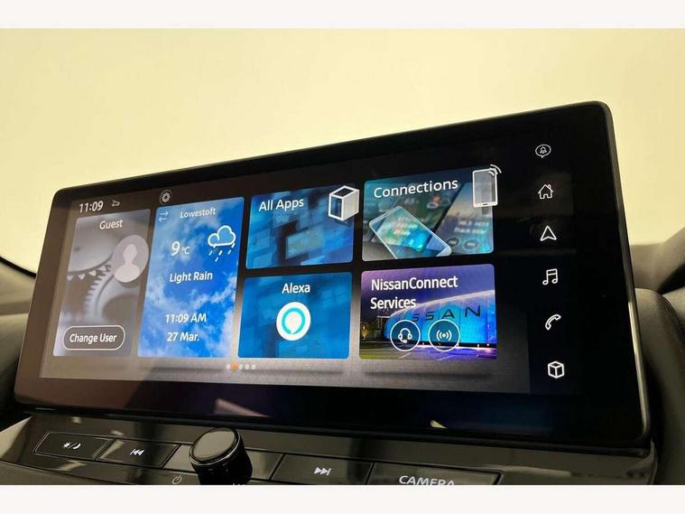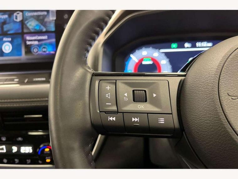 Advanced 10.8" head up display, Android auto/Apple CarPlay (Wired), Blind spot warning, Drive modes (sport, normal, eco), e-Pedal step, Electric speed sensitive power steering, Emergency and breakdown call, Front and rear parking sensors, Full Digital 12.3" TFT Digital Combimeter, Google maps services - search, weather, 3D maps and Google street view, Hands free power tailgate, Idle stop/start system, Intelligent around view monitor, Intelligent driver alert system, Intelligent forward collision warning, Intelligent lane departure warning, Intelligent lane intervention, Intelligent lane keep assist, Lane departure prevention, Maximum speed limiter, Moving object detection, Nissan connect 12.3 inch touchscreen infotainment system, Nissan connect nav with TomTom traffic, Pro pilot and head up display, ProPilot park, Push button starter, Rear cross traffic alert, Rear view camera, Remote control services - door locks, lights, horn and car locator, Telematics - notifications and connectivity services, TomTom live traffic services, Traffic jam pilot, Traffic sign recognition with legal speed adjustment, Trip computer, Virtual personal assistant and firmware over the air capability, Wireless apple carplay, Wireless charging pad, 6 speakers, AM/FM audio system with DAB, Bluetooth audio streaming, Front USB connections (Type-A and Type-C), Rear USB charging only ports (Type-A and Type-C), 3rd brake light, Auto dimming rear view mirror, Auto rear wiper when reversing, Body colour mirror caps, Body coloured door handles, Bodyside mouldings, Chrome side window finisher, e-POWER badging, Electric auto folding door mirrors, Electrically adjustable and heated door mirrors, Follow me home headlights, Headlights auto levelling system, High beam assist, Intelligent auto headlights, LED daytime running lights, LED headlights with adaptive driving beam, LED rear lights, One touch front and rear electric windows with remote opening and closing, Partially body coloured bumpers, Rain sensing wipers, Rear privacy glass, Rear reversing light (bulb lighting), Rear roof spoiler, Rear side wing doors, Rear styling plate, Shark fin antenna, Splash free wipers, Super UV and infrared cut glass, Thermaclear heated windscreen, Three blink turn signal, 12v power socket in dashboard and luggage, 3 bench rear seats in 2nd row, 3 rear headrests, Butteryfly console, Chrome interior door handles, Driver and front passenger sunvisors with illuminated vanity mirrors, Driver seat back pocket, Electric adjustable 2 way lumbar support for driver, Electric adjustable 2 way lumbar support for passenger seat, Electrically adjustable driver seat, Front and rear heated seats, Front centre console and armrest, Front cupholders, Front door with bottle holders, Heated steering wheel, Height adjustable driver's seat, Height adjustable front headrests, Height adjustable passenger seat, Leather shift knob, Leather steering wheel, Luggage board system, Luggage space lighting, Multifunction steering wheel, Passenger seat back pocket, Rear armrest with 2 cupholders, Rear door bottle holders, Single front passenger seat, Sliding second row seats, Split folding 2nd row - 40/20/40, Steering column mounted gear shift paddles, Synthetic leather monoform upholstery, Tilt/telescopic adjustable steering wheel, Tri zone automatic climate control with pollen filter, Two rear isofix child seat anchorage points with top tether, Sky pack - X-Trail, 3x3 point rear seatbelt pretensioners + load limiters, ABS with EBD and brake assist, Active brake limited slip, Auto hold function, Child locks on rear doors, Curtain and front side, far side airbags, Driver and passenger airbags, Driver, passenger and 2nd row rear seat belt reminder, Electronic parking brake, Front seatbelt pretensioners + load limiters, Height adjustable front seatbelts, Hill start assist, Intelligent blind spot intervention, Intelligent front emergency braking with pedestrian, cyclist recognition and junction assist, Intelligent rear automatic braking, Tyre pressure monitoring system, Vehicle dynamic control, Engine immobiliser, Intelligent Key, Remote central door locking with deadlocking, Thatcham Cat.1 alarm, 19" Diamond cut alloy wheels, Tyre puncture repair kit,