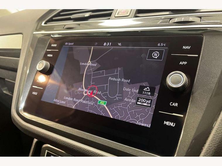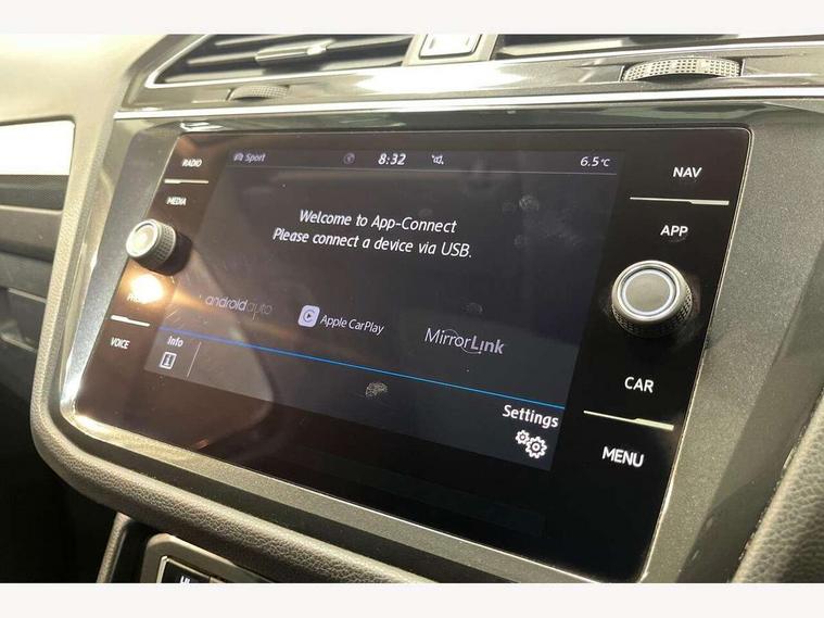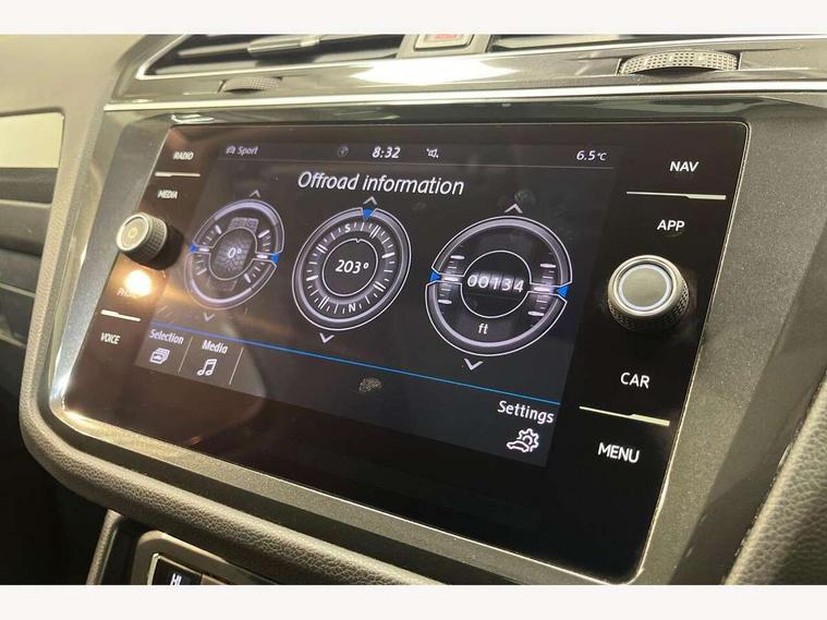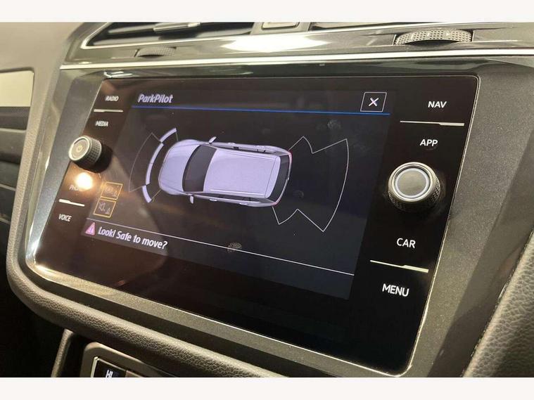 Active information display, Adaptive cruise control, App-Connect, Bluetooth phone integration system, Distance control assist, Drive mode selector, Driver profile selection, Fatigue detection system, Instrument cluster, Lane assist, Low washer fluid warning light, Outside temperature display, Service interval indicator, Speed limiter, Warning lights, XDS electronic differential lock, 2x USB sockets in front, Aux-in socket, DAB Digital radio, MP3 compatible single CD player, SD card slot, Auto dimming interior mirror, Automatic activation of hazard warning lights, Black door protector with chrome inserts, Body colour door handles, Body colour door mirrors, Body coloured bumpers, Chrome side body trim, Chrome side window surrounds, Chrome trimmed radiator grille, Coming/leaving home lighting function, Dusk sensor + auto driving lights, Electric folding door mirrors, Electric heated + adjustable door mirrors, Electric panoramic sunroof with sunblind, Front and rear electric windows, Heated rear window, LED headlights with dynamic light assist daytime running lights and cornering front fog lights, LED rear lights, Rain sensor windscreen wipers, Rear windscreen washer and wiper with interval delay, Silver rear diffuser trim, Silver roof rails, Silver under body guard, Tinted windows (B pillar backwards), Windscreen wipers/ intermittent wipe + 4 position delay, 12V Accessory socket in centre console, 3 rear headrests, 3 zone climate control, 4 load lashing points, 40:20:40 split folding rear seats, Bag hook in luggage compartment, Driver + front passenger lumbar support, Foldable passenger seatback, Front + rear carpet mats, Front centre armrest with 12v socket, Front centre armrest with storage + rear 2 air vents + cupholders, Front seatback folding tables, Height/reach adjust steering wheel, Illuminated driver/passenger vanity mirrors, Illuminated scuff plates, Interior light with delay, Isofix Preparation 2 Rear child seats, Leather gear knob, Load through provision with 2 cupholders when folded, Lockable cooled glovebox, Luggage compartment lighting, Luggage compartment side storage, Map pockets on front seats, Passenger seat height adjuster, Passenger underseat drawer, Rear cupholders, Removable luggage cover, Sliding/reclining rear seats, Storage compartment in driver's door, Storage compartment in passenger's door, Storage compartment in rear doors, Storage tray on dashboard, Sunglasses storage, Variable boot floor, Ambient lighting pack - Tiguan, 3 rear 3 point seatbelts, ABS+EBD+Brake assist, Active bonnet, Active pedestrian safety system, Curtain airbags, Driver/Front Passenger airbags, Driver/Passenger whiplash optimised head restraints, Drivers knee airbag, DTC - Drag torque control, Electronic parking brake with auto hold, ESP with EDL + ASR, First aid kit, Front assist including city emergency braking, Front side airbags, Head airbag system, Height adjustable front 3 point seatbelts + pretensioners, Hill hold control, Passenger airbag deactivate switch, Passenger knee airbag, Pre crash system, Rear side airbags, Seatbelt warning lamp and buzzer, Two tone horn, Warning triangle, Alarm with interior protection, Electronic engine immobiliser, Remote central locking with 2 remote folding keys, Chrome door trim inserts, Piano black interior trim, Steel space saver spare wheel,