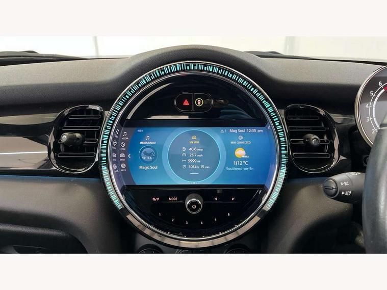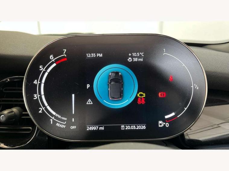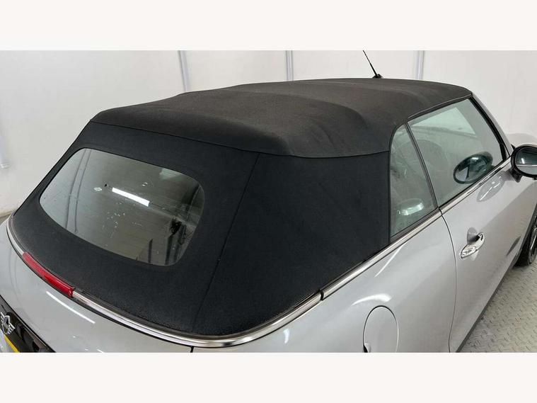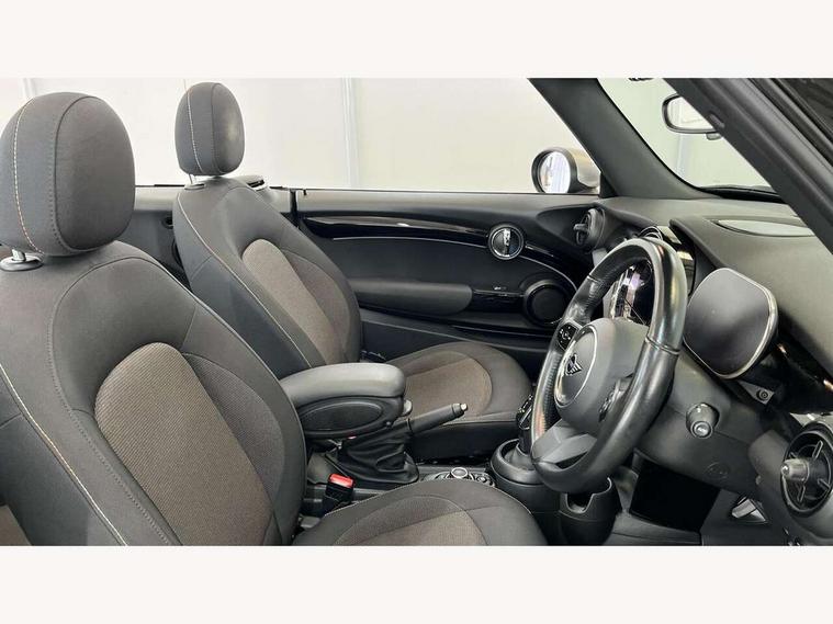 Apple CarPlay, Automatic start/stop function with brake energy recuperation, Compatible mobile phone bluetooth with audio streaming, Cruise control with brake assist, Electro-mechanical speed dependant steering assistance, Instrument cluster, Mini E-call, MINI TeleServices, On board computer, Rear park distance control, Service interval indicator, Double Vanos system, Fully variable valve control, High precision injection, Performance Control, Steptronic transmission with double clutch, FM tuner and DAB digital radio, Automatic headlight activation switch, Body colour fuel filler cap, Chrome border high gloss black slats radiator grille, Dynamic brake lights, Electric windows, Fully electric black softtop with integrated sunroof functionality, Heated rear window, Heated windscreen washer jets, LED headlight with closed ring and daytime driving lights, Left exhaust tailpipe with chrome finisher, Metal door sill strips with MINI imprint, Model logo Cooper on right of tailgate, Rain sensor window wipers, Rear boot, Rear fog lights, Rear LED lights with union jack design, Side scuttle panel with integrated indicator, Sun/heat protection glass, Third brake light, White indicator lenses, 12V Accessory socket in centre console, 2 seat bench in 2nd row, 4 lashing eyes in luggage compartment, 50/50 split folding rear seats, Chrome interior highlights, Colour line - Carbon black, Cupholders, Easy Load boot handles, Front and rear head restraints, Front and rear isofix with front passenger airbag deactivation, Glove compartment, Height and length steering column adjustment, Interior lighting with 12 different colours running across the dashboard, underneath door bezel illuminated laser engraved design on central display, Leather gearshift lever and handbrake gaiters, LED reading lights, vanity mirror lights, front foot well light and spotlight on front seats, Manual air conditioning, Mechanical seat adjustment, driver seat height adjust, forward/back and front seats backrest, Multifunction steering wheel, Single front passenger seat, Sports steering wheel, Storage compartments in doors, Sunvisors with vanity mirrors, Three spoke steering wheel with speed limiter and audio/communication controls, Velour floor mats, Convertible pack with comfort access - Mini Convertible, Navigation pack without Apple car play - Mini Convertible, 3 point seatbelts on all four seats, 6 Airbags - front, side and seat belt tensioners, Active rollover protection, Anti-lock braking system (ABS), DSC - Dynamic Stability Control, Front and rear disc brakes, Hill start assist, Single tone fanfare horn, Tyre pressure monitoring system, Alarm system with tilt sensor, monitoring doors, bonnet interior and tailgate, Electronic vehicle immobiliser, Keyless Go, Piano black interior trim, Tool kit, Tyre repair kit,