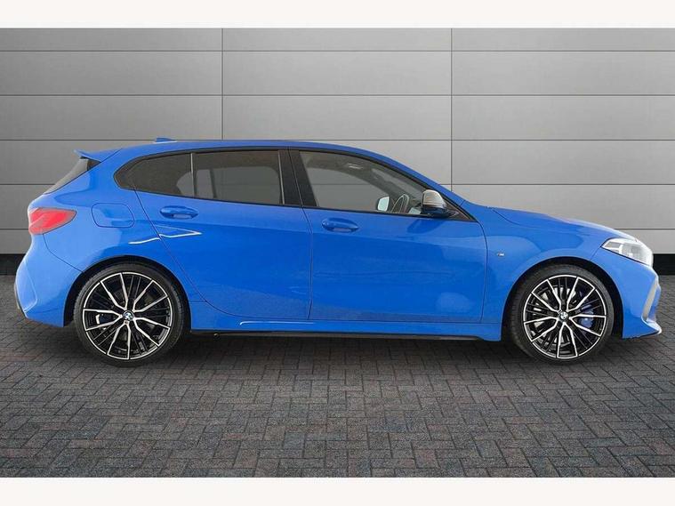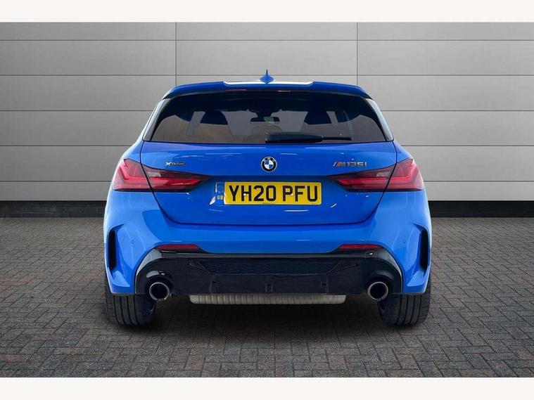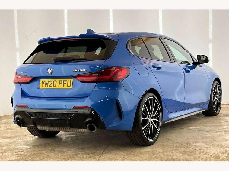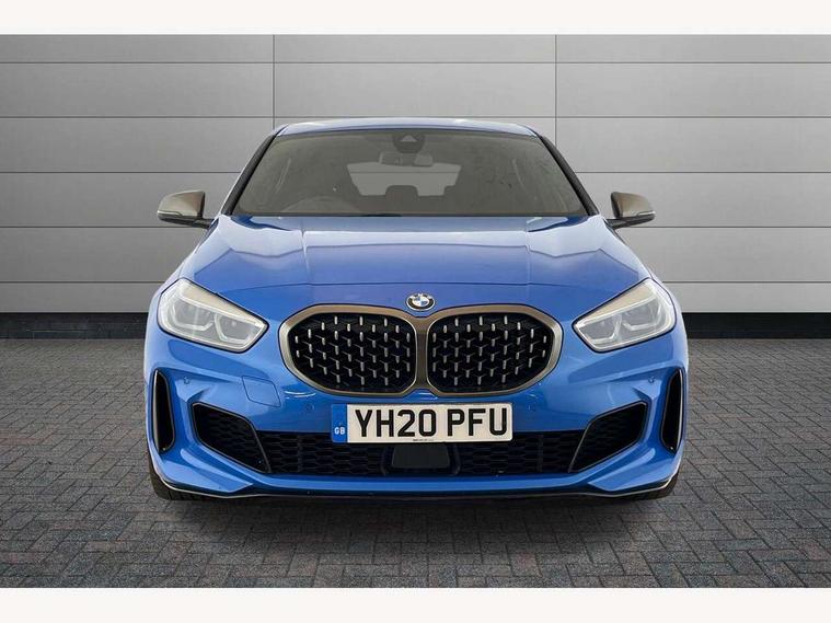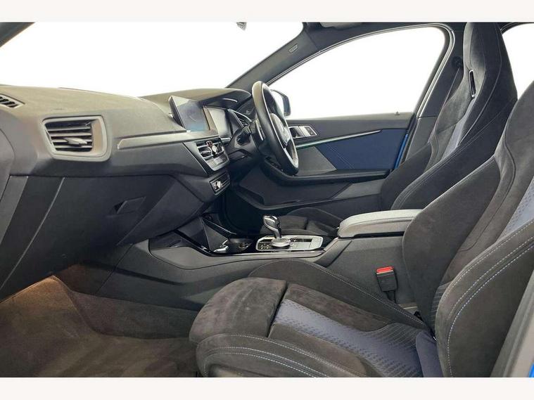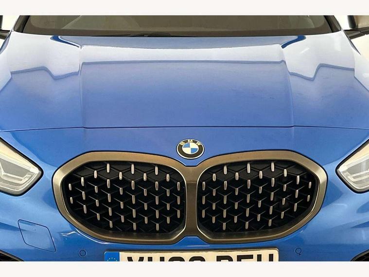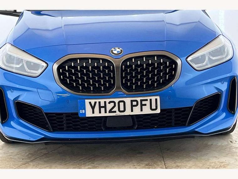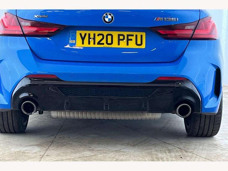 Active guard plus, Attentiveness assist, BMW Live Cockpit Professional sat nav system including 10.25" high resolution display and Intelligent Voice Assistant, BMW Online services, BMW Teleservices, Check Control warning system for monitoring of lights and door/luggage compartment open warning, Eco pro mode, Gearshift time display in manual mode, Integrated owners handbook, M Sports steering, Oil sensor for level and grade, On board computer, Optimum shift indicator, Personal Profile, Pull away assistant, Speed limiter, Sporty fast gear shifting in sport mode, Aluminium lightweight construction, Anti roll bar front and rear, Balancer shaft, Double VANOS, Drive Performance Control, Eight speed sport automatic transmission with electronic selector lever, Electronic differential lock, Engine cover with M performance designation, High precision injection, Larger fuel tank capacity (50 litres), Launch control, Petrol Particulate Filter, VALVETRONIC engine management, Bluetooth audio streaming, DAB Digital radio, Auto dimming rear view mirror, Automatic headlight beam throw control, Body colour door handles, Cerium grey exterior mirror caps, Direction indicator side lights in exterior mirrors, Electric folding and anti dazzle exterior mirrors, Fading support, Follow me home headlights, Front and rear electric windows with open and close fingertip control, anti trap facility and comfort closing, Front door sill finishers with M135i designation, Green tinted heat protection glazing, Heated, electrically adjustable exterior mirror aspheric on driver side, convex on passenger side, High gloss shadow line exterior trim, High gloss shadowline window frame, Recess cover mirror frames and B/C pillar embelisher trim, High level third brake light, Kidney grille frame in Cerium Grey with Mesh design, LED daytime running lights, LED eyebrow turn indicators, Lightweight engineering, M logo designation side in cerium grey, M performance exhaust system, M rear spoiler, Matt black air guide grilles, Model designation on right side of tailgate, Nearside reverse light in rear light cluster, Rain sensor including auto headlights activation, Rear fog lights, Rear window wiper, Round exhaust system with twin cerium grey tailpipes in left and right split, Shark fin antenna, Visible VIN plate, Welcome lighting, Windscreen wipers with integrated washing jets, 12V power socket in centre console, 2 cupholders in front centre console, 3 rear seat head restraints, 3 spoke M sports design leather steering wheel finished in nappa leather with specific M badge, Anthracite headlining, Anthracite Velour floor mats, Child seat ISOFIX attachment for two outer rear seats and front passenger seat with anchorage points, Conditioned based service, Driver and front passenger seat heating, Driver side folding compartment in instrument panel, Folding rear clothes hook, Folding rear seats, Four grab handles integrated in roof lining, Front and rear door pockets, Front and rear side armrest integrated into door trim, Front armrest foldable with integrated storage compartment, Front M seats, Glove compartment, Height adjustable front head restraints, Manual adjust steering wheel, Multi-function controls for steering wheel, Rear seat backrest with manual 60:40 split folding with 3 top tether clips integrated on rear of seat panels, Storage compartment in centre console, Sun visors with vanity mirrors and insert tab, Two zone automatic air conditioning, Connected pack professional - 1 Series, Extended Lighting pack - 1 Series M135i, Extended storage pack - 1 Series, Interior lights pack - 1 Series, Luggage compartment pack - 1 Series, M Sport exterior styling aerodynamics pack - 1 Series 135i, 2 tone horn, 3 point seatbelts on all seats, front pyrotechnic belt tensioners, stopper and belt force limiters, rear coded belt buckles, Airbags - Front driver and passenger, front and rear head, front side, curtain head protection, Anti lock braking system (ABS) with brake assist, BMW emergency call, Brake drying, Braking readiness, Crash sensor activating central locking release, hazard warning lights, fuel cut off, interior lighting + activation of safety battery terminal clamp, Driver and front passenger seat belt security check, Dynamic stability control + (DSC+), Dynamic Traction Control - DTC, Electrically operated hand brake, Front and rear disc brakes, Front passenger manual airbag deactivation, M Sport braking system, M sport seatbelt, Rear child proof door locks, Seatbelt warning, Side impact protection, Torsen mechanical limited slip differential, Tyre pressure monitoring system, Warning triangle and first aid kit, Automatic drive away locking facility, Central locking switch for all doors, fuel filler cap and luggage compartment, Deadlocking function system to all doors, Locking wheel bolts, Remote control with integrated key with High-gloss Black inlay and M designation and 1 button for open/ close lock, window, open luggage compartment, Start/stop button with comfort go keyless engine start and auto start stop deactivation button, Thatcham Cat.1 alarm and immobiliser, Contrast stitching on instrument panel, 18" Burnished M double spoke Bi-colour alloy wheels finished in Cerium grey matt - style 556M, BMW mobility system, Reduced rolling resistance tyres,