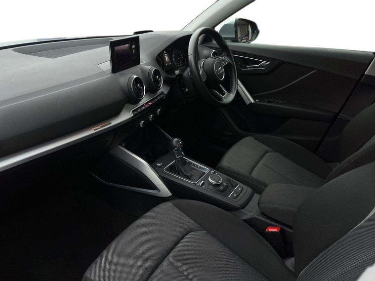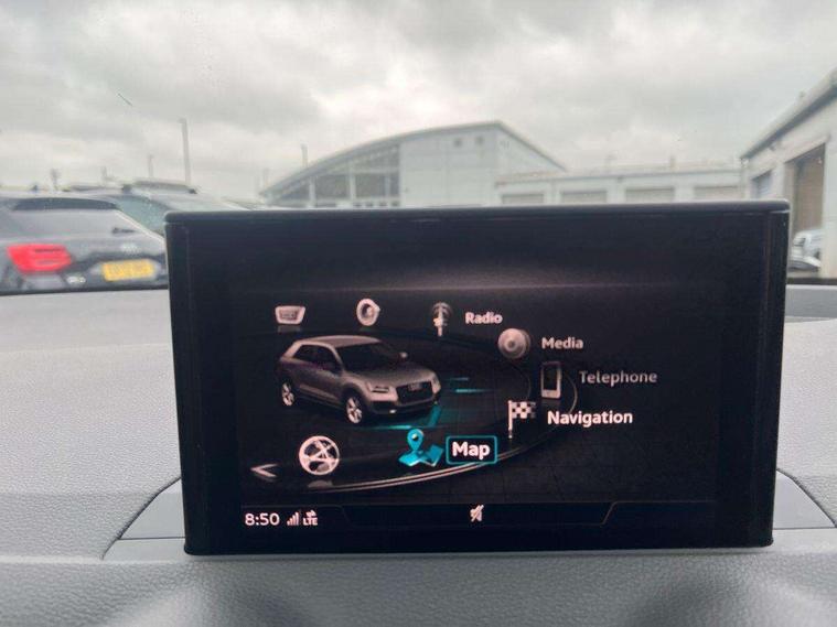 Audi drive select, Audi smartphone interface, Bluetooth hands free telephone connection, MMI - Multi Media Interface control system, MMI SD card Navigation, PAS, Service interval indicator, Voice control system, Dynamic suspension, Audi music interface, Aux input, CD player, DAB digital radio module, MMI radio plus with 7" colour MMI screen and MMI controller, USB port, Body colour door mirrors, Chrome exhaust tailpipe, Door mirror integrated indicators, Electrically adjustable and heated door mirrors, Front and rear electric windows, Rear wiper, Sunband for windscreen, Aluminium door sill trims, Centre console with storage/cupholders, Front and rear door pockets, Front and rear headrests, Front and rear velour floor mats, Front centre armrest, Front sports seats, Glovebox, Height adjustable front seats, Height/reach adjust steering wheel, ISOFIX on front passenger and rear outer seats, Storage compartment in rear centre console, Titanium grey cloth headlining, Non smoking pack - Q2, 3x3 point rear seatbelts, ABS+Electronic Brake force Distribution, Curtain airbags, Driver and passenger airbags, Driver and passenger side airbags, EDL + ASR, Electrically operated child locks on rear doors, Electromechanical parking brake, ESP, Multi-Collision braking, Pre-sense front with pedestrian recognition, Seatbelt warning light, Tyre pressure monitoring system, Warning triangle and first aid kit, Locking wheel bolts, Remote central locking, Thatcham category 1 alarm + immobiliser, Aluminium interior trim,