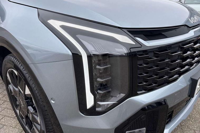 12.3" Driver display screen, 12.3" Touchscreen navigation system, 360 degree around view monitor, Blind spot collision avoidance assist, Blind spot view monitor, Bluetooth connection, Customisable head-up display, Digital key 2.0, Drive mode selector, Driver attention warning, E-call, Emergency stop signalling system, Forward collision avoidance assist 2.0, Front and rear parking sensors, Highway Driving Assist (HDA 2.0), Intelligent speed limit assist, Kia Connect (UVO), Lane Following Assist (LFA), Lane keep assist, Low washer fluid warning, Motor driven power steering, Over the air (OTA) functionality, Parking collision avoidance assist (PCA), Rear cross traffic collision avoidance assist (RCCA), Remote smart parking assist, Reversing camera, Safe exit warning (SEW), Smart cruise control with stop and go functionality, Smart power tailgate, Speed limiter, Trip computer, Windscreen washer level indicator, Wireless apple car play/android Auto, Wireless Smartphone charger, DAB Radio with MP3, Front passenger 1x USB-C port, Harman Kardon premium sound system with 8 speakers, Rear passenger 2x USB-C port, Steering wheel mounted audio controls, USB-C port for connection of a media device, Auto dimming rear view mirror, Automatic defog system, Automatic headlight control system, Black and body coloured bumpers, Black window surrounds, Body colour exterior door handles, Body colour radiator upper garnish and door garnish, Dual LED headlights with adaptive driving beam, Electric front and rear windows with front one touch function, Electrically adjustable/heated/folding door mirrors with LED indicators, Front and rear body colour skid plates, Gloss black door mirrors, Gloss black radiator grille, Gloss black wheel arches, Glossy black roof rails, GT-Line exterior styling, Heated rear window, High beam assist, LED daytime running lights, LED front fog lamps, LED High mounted stop light, LED rear lights, Panoramic sunroof with tilting and sliding function with electric blind, Privacy glass in rear windows and tailgate, Rain sensing wipers, Rear fog lamp, Rear roof spoiler, Rear side wing doors, Rear wiper, Satin finished beltline, Trailer stability assist, 12V power socket in front and luggage compartment, 3 seat bench in 2nd row, 3 x passenger assist grips, 40/20/40 split folding rear seat, All-round height adjustable headrests, Alloy pedals, Automatic air conditioning, Black headlining, Centre console storage box, Cupholders in rear armrest, Customisable ambient lighting, Door courtesy lamps, Driver and front passenger sunvisors with illuminated vanity mirrors, Drivers seat power lumbar support, Electric adjustable driver seat with memory function, Electric adjustable front passenger seat, Front and rear door storage, Front seat and rear pockets, Gear shift indicator, Glovebox, GT-Line Interior Styling, Heated front and outer rear seats, Heated steering wheel, ISOFIX Child seat top tethers and anchor fixings outer rear seats, Leather steering wheel, Leather/suede upholstery, LED front cabin light, LED interior personal lamp, LED lighting in overhead console, LED rear reading lights, Luggage area LED light, Luggage area load cover, Luggage area parcel shelf, Luggage board, Luggage compartment under floor storage, Luggage net hooks, Manual adjust steering wheel, Metal paint interior door handles, Paddle shift controls, Rear air conditioning, Rear cabin light, Rear coat hooks, Single front passenger seat, Ventilated front seats, Ventilation ducts to rear compartment, Active front headrests, All round 3-point seatbelts, Anti-lock braking system (ABS), Dual front side airbags, Dual horn, Dynamic brake control, Electronic parking brake with auto hold function, Electronic stability control with downhill brake control, Front passenger airbag cut-off switch, Front seatbelt pretensioners + load limiters, Height adjustable front seatbelts, Hill start assist control (HAC), Impact sensing auto door unlocking, Multi collision brake assist, Rear airbags, Rear door child safety locks, Rear seat alert system, Seatbelt reminder warning, Traction control, Twin curtain airbags, Twin front airbags, Tyre pressure monitoring system, Vehicle stability management, Customisable automatic door locking, Customisable automatic door unlocking, Door deadlocks, Engine Start/Stop Button with Smart Entry System, Locking wheel nuts, Smart key with motion sensor, Speed sensitive auto door locking, Thatcham category 2 security alarm and immobiliser, Visible vehicle identification number, 19" GT-Line alloy wheels, Tyre mobility kit,