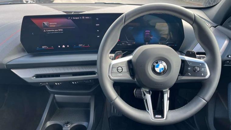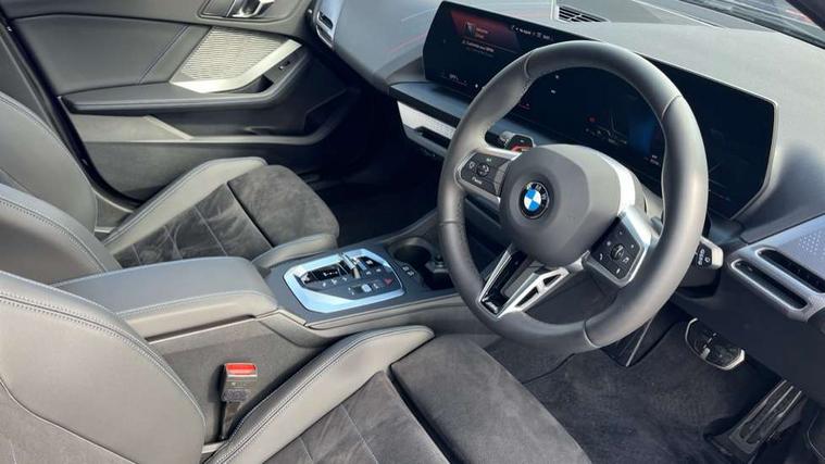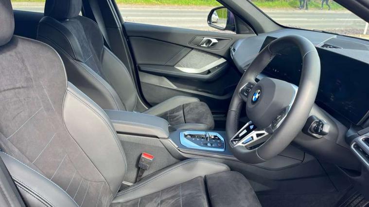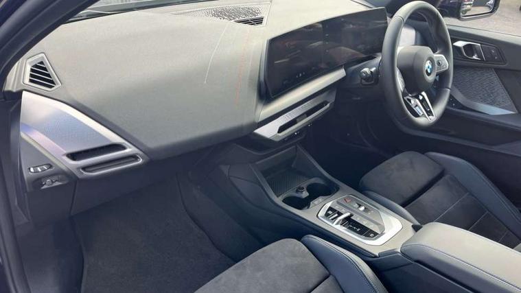Active guard plus, Attentiveness assist, Bluetooth / WiFi interface for wireless connection of mobile terminal devices and audio streaming, BMW ConnectedDrive online services, BMW Live cockpit plus, BMW Teleservices, Check Control warning system for monitoring of lights and door/luggage compartment open warning, Eco pro mode, Electric power steering with Servotronic steering optimised at all speed ranges, Evasion assistant, Flat airvents in instrument panel with adjustable slats, Front and rear parking sensors, Front axle single joint with specific axle kinematics to minimise drive influences on steering + provide increased rigidity agile driving behaviour, Gearshift time display in manual mode, Integrated owners handbook, Left turn warning with brake function, My modes (Personal / Efficient / Sport), Oil sensor for level and grade, On board computer, Optimum shift indicator, Park assist including reversing assistant, lateral parking aid and reversing assist camera, Personal e-SIM, Personal Profile, Pull away assistant, Rigidly mounted rear subframe - Multi link construction with separate spring / damper configuration and excellent driving characteristics, Speed limit Info including no-overtaking indicator, Speed limiter, 49 litre fuel tank, Aluminium lightweight construction, Anti roll bar front and rear, Balancer shaft, Double VANOS twin scroll turbocharging system, Drive Performance Control, Electronic differential lock, Electronic selector lever, High precision injection, M Adaptive suspension, Petrol Particulate Filter, Steptronic transmission with double clutch, Twin tube gas filled shock absorbers with degressive characteristic curve, VALVETRONIC engine management, DAB Digital radio, Auto dimming rear view mirror, Automatic windscreen wipers and automatic headlight, Body colour door handles, Body colour roof trims, Chrome 'M' logo side designation, Chrome exhaust twin tailpipes round 90mm in left, Chrome kidney grille frame with Satin Aluminium struts, Direction indicator side lights in exterior mirrors, Electrically adjustable exterior mirror with mirror adjustment switch on drivers armrest and aspheric on driver side, convex on passenger side, Exterior M sport design elements, Fading support, Folding side mirrors with auto dimming/folding wing mirrors with auto dimming, Follow me home headlights, Front and rear bumper system with replaceable deformation elements, Front and rear electric windows with open and close fingertip control, anti trap facility and comfort closing, Front bumper panel with M specific design in vehicle colour with inserts in black high gloss, Front door sill finishers in black plastic with M designation in metallic look, Green tinted heat protection glazing, Heated rear window, High gloss black exterior mirrors, High gloss shadowline window frame, Recess cover mirror frames and B/C pillar embelisher trim, High level third brake light, Integrated front windscreen with washer jets, LED daytime running lights, LED eyebrow turn indicators, LED front fog lights, LED Headlights, Lightweight engineering, Matt black air guide grilles, Matt black wheel arch trim, Model badge on tailgate right, Nearside reverse light in rear light cluster, Preparation for high beam assistant, Rain sensor, Rear bumper panel with M-specific design in vehicle colour with inserts in black high gloss, Rear fog lights, Rear side wing doors, Rear window wiper, Shark fin antenna, Side sill covers with M specific design in body colour, Trailer stabilisation logic, Visible VIN plate, Welcome lighting, 12V power socket in front centre console with blanking plug, 3 rear seat head restraints, 3 seat bench in 2nd row, 3 spoke sports leather steering wheel with black leather and stitching, pearl chrome decorative finish, specific M Badge, Anthracite front and rear floor mats, Anthracite headlining, Black boot net with lashing eyes, Cargo function on 2nd seat row, Child seat ISOFIX attachment for two outer rear seats and front passenger seat with anchorage points, Conditioned based service, Driver and front passenger backrest net on rear, Driver and front passenger seat heating, Driver side folding compartment in instrument panel, Folding rear clothes hook, Footrest and pedals in black plastic, Four grab handles integrated in roof lining, Front and rear door pockets with bottle holders, Front and rear side armrest integrated into door trim, Front armrest with storage compartment, Gearshift paddles on steering wheel, Glove compartment, Height adjustable front head restraints, Luggage compartment for bag hooks on left and right, foldable luggage compartment liner and four lashing eyelets, Manual adjust steering wheel, Multi-function controls for steering wheel, Rear seat backrest with manual 60:40 split folding with 3 top tether clips integrated on rear of seat panels, Single front passenger seat, Storage compartment in centre console, Storage compartment in luggage compartment, Stowage of the parcel shelf in luggage compartment trim, Sun visors with vanity mirrors and insert tab, Two front centre console cupholders, Type C two USB ports in rear centre console, Upper retaining strap integrated into backrest rear panels, Connected pack professional - 1 Series, Interior lights pack - 1 Series, M Sport exterior styling aerodynamics pack - 1 Series, 2 tone horn, 3 point seatbelts on all seats, front pyrotechnic belt tensioners, stopper and belt force limiters, rear coded belt buckles, Airbags - Front driver/passenger, front and rear curtain head protection, front side, manual deactivation of front passenger airbag, Anti lock braking system (ABS) with brake assist, BMW emergency call, Brake drying, Braking readiness, Child proof locking system in rear door, Comfort modes, Cornering brake control, Crash sensor activating of airbags, Unlocking doors, hazard warning lights, interior light, safety battery terminal, Driver and front passenger seat belt security check, Dynamic stability control + (DSC+), Dynamic