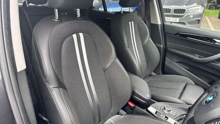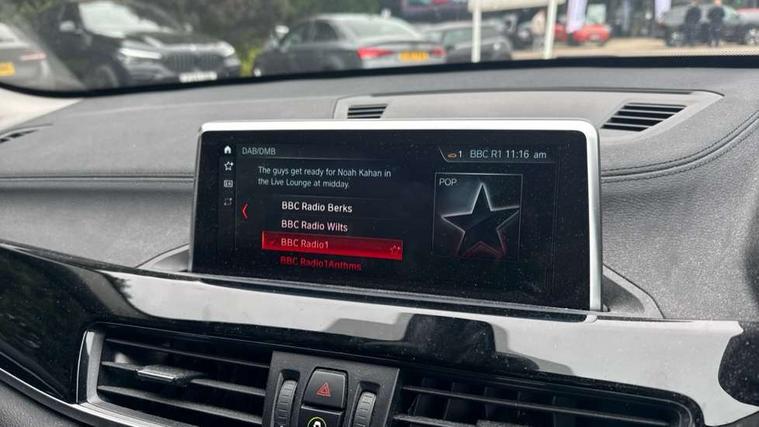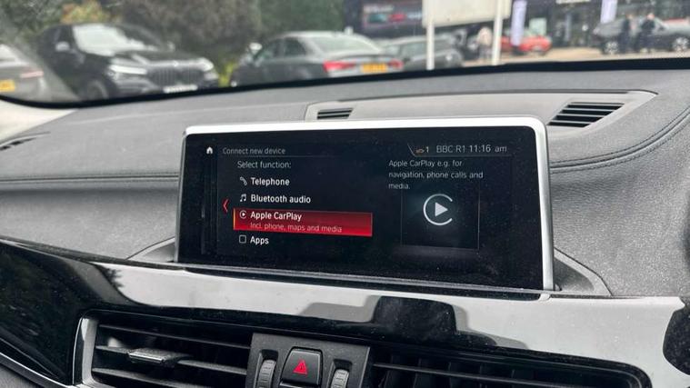 Ambient temperature display, Apple CarPlay, Arrow pointers, north up, direction of travel and perspective map displays, Attentiveness assist, Automatic tailgate opening, BMW ConnectedDrive, BMW Online services, BMW remote services, BMW Teleservices, Brake pad wear indicator in front and rear, Characteristic map controlled oil pump system, Front axle single joint with specific axle kinematics to minimise drive influences on steering + provide increased rigidity agile driving behaviour, Front/rear park distance control (PDC), Instrument cluster with Black optic display featuring superimposed dials and 5.7" colour display, Instrument cluster with speedometer with miles per hour read out, tachometer and fuel gauge, Integrated hard drive with map data updates via USB interface, Lights on warning by audio warning signal when ignition is switched off, On board computer, Operation by iDrive with direct selection buttons and 8 programmable buttons, Optimum shift indicator, Outside temperature gauge, Park assist system, Personal Profile - automatic lock when driving away selectable, Real time traffic information, Rigidly mounted rear subframe - Multi link construction with separate spring / damper configuration and excellent driving characteristics, Service interval indicator, Servotronic PAS, Tyre puncture warning system, 12V compressor with integrated sealant injection bottle and hose, Aluminium lightweight construction including crankcase, Anti-roll bars, Balancer shaft, Double VANOS, Drive performance control with ECO PRO comfort + sport mode, Electronic differential lock control (EDLC), High precision injection, Performance Control, Seven speed dual clutch automatic transmission (DCT), Standard suspension, Stop/start function, Turbocharger with Valvetronic, Twin tube gas filled shock absorbers with degressive characteristic curve, DAB Digital radio, Adjustable headlights, Aero curtain, Automatically dimming rear view mirror, BMW Icon design LED daytime driving lights, Body colour bumpers, Body colour door handles, Body colour door mirrors, Body colour front bumper underbody protection, Direction indicator side lights integrated exterior mirrors, Dynamic brake lights, Electric windows - front and rear, with open/close fingertip control, anti-trap facility and comfort closing, Electrically adjustable door mirrors with aspheric on driver side, convex on passenger side with integrated indicators, Exclusive front door sill finishers with BMW designation, Follow me home headlights, Front air guide finished in black silver, Front air inlets and centre air inlets with high gloss black finisher, Front and rear bumper system, Green tinted heat protection glazing glass, Headlight beam throw control, Heated door mirrors, Heated windscreen washer jets, High level third brake light, Kidney grille with 14 chrome high gloss black fronted with black matt sides vertical bars, LED direction indicator lights in headlight eyebrow, LED front fog lights, Lightweight engineering, Model designation, Rain sensor including auto headlights activation, Rear bumper underbody protection in body colour with high gloss black insert, Rear fog lights, Rear window aerial, Rear window wash/wipe, Reversing light in rear light cluster, Roof mouldings in matt black, Shark fin antenna, Sill cover finished in body colour and matt black, Single chrome exhaust tailpipe, Two eye face design on light, Visible VIN plate, Welcome lighting, 12v power point in centre console, 2 cup holders in front, 3 rear headrests, 3 spoke sport leather steering wheel, 40:20:40 split folding rear bench seat, Boot light, Centre armrest in 20 degree part rear seat backrest, Child seat ISOFIX attachment for two outer rear seats and front passenger seat with anchorage points, Conditioned based service, Driver/front passenger seat backrest back with luggage net, Dual zone automatic air conditioning, Four grab handles integrated in roof linings, Front and rear side armrests integrated into door trim, Front centre armrest/sliding cover, Front centre interior light over interior mirror and rear centre automatic interior light when door is opened/ignition switched off or via remote key, Front sports seats, Front/rear adjustable head restraints, Illuminated glovebox, Leather gearknob/gaiter/handbrake grip, LED ambient lighting in door trim, Luggage area underfloor compartment, Luggage compartment access via recessed handle below tailgate, Luggage compartment lighting, Luggage compartment loading edge with stainless steel insert, Manually adjustment steering wheel column, Multifunction steering wheel, Rear coded belt buckles, Standing free front adjustable armrest and fixed in different positions, Steering wheel gearshift paddles, Velour floor carpets, Extended storage package - X1, ABS/EBD, Audio/visual collision warning system, Automatic Stability Control (ASC), Battery safety cut-off, BMW emergency call, Brake drying, Brake energy regeneration, Braking readiness, Cornering brake control (CBC), Crash Sensor - activates hazard/interior lighting + unlocks doors, Driver/Front Passenger airbags, Driver/front passenger side airbags, Dynamic brake control, Dynamic stability control + (DSC+), Dynamic Traction Control - DTC, Electronic parking brake, Front and rear head airbags, Front passenger airbag deactivation, Front seatbelt force limiters, Front ventilated disc brakes, Hill start assist, Pyrotechnically pre-tensioned front seatbelts, Rear disc brakes, Rear door child safety locks, Seatbelt security check for driver and front passenger, Side impact protection, Three point seat belts in all seats, Twin horns, Tyre pressure monitor, Warning triangle and first aid kit, Central locking switch for all doors, fuel filler cap and luggage compartment, Check control system for monitoring of lights and door/luggage compartment open warning, Engine immobiliser, Locking wheel bolts, Remote control Thatcham category 1 alarm, Remote control with integrated two key, Start/stop butto