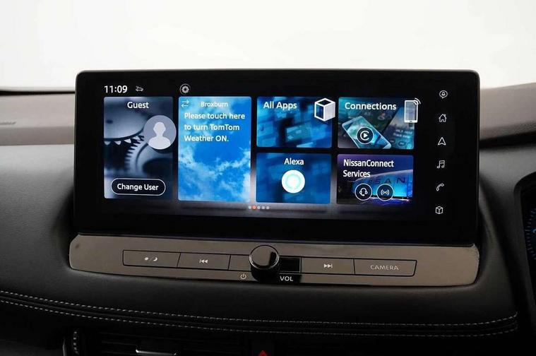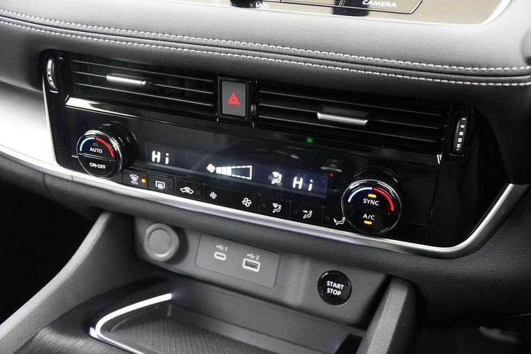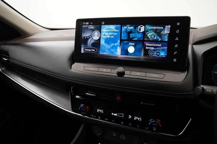 Android auto/Apple CarPlay (Wired), Blind spot warning, Drive modes (sport, normal, eco, snow, off-road), e-Pedal step, Electric speed sensitive power steering, Emergency and breakdown call, Front and rear parking sensors, Full Digital 12.3" TFT Digital Combimeter, Google maps services - search, weather, 3D maps and Google street view, Idle stop/start system, Intelligent around view monitor, Intelligent Cruise control (ICC), Intelligent driver alert system, Intelligent forward collision warning, Intelligent lane departure warning, Intelligent lane intervention, Intelligent lane keep assist, Maximum speed limiter, Moving object detection, Nissan connect 12.3 inch touchscreen infotainment system, Nissan connect nav with TomTom traffic, Push button starter, Rear cross traffic alert, Rear view camera, Remote control services - door locks, lights, horn and car locator, Telematics - notifications and connectivity services, TomTom live traffic services, Traffic sign recognition with legal speed adjustment, Trip computer, Virtual personal assistant and firmware over the air capability, Wireless apple carplay, 6 speakers, AM/FM audio system with DAB, Bluetooth audio streaming, Front USB connections (Type-A and Type-C), Rear USB charging only ports (Type-A and Type-C), 3rd brake light, Auto dimming rear view mirror, Auto rear wiper when reversing, Body colour mirror caps, Body coloured door handles, Bodyside mouldings, Chrome side window finisher, e-4ORCE badging, e-POWER badging, Electric auto folding door mirrors, Electrically adjustable and heated door mirrors, Follow me home headlights, Headlights auto levelling system, High beam assist, Intelligent auto headlights, LED daytime running lights, LED Headlights, LED rear lights, One touch front and rear electric windows with remote opening and closing, Partially body coloured bumpers, Rain sensing wipers, Rear privacy glass, Rear reversing light (bulb lighting), Rear roof spoiler, Rear side wing doors, Rear styling plate, Shark fin antenna, Splash free wipers, Super UV and infrared cut glass, Three blink turn signal, 12v power socket in dashboard and luggage, 3 bench rear seats in 2nd row, 3 rear headrests, 60/40 split folding rear seat bench, Butteryfly console, Chrome interior door handles, Cloth monoform upholstery, Driver and front passenger sunvisors with illuminated vanity mirrors, Driver seat back pocket, Dual zone automatic climate control with pollen filter, Front centre console and armrest, Front cupholders, Front door with bottle holders, Height adjustable driver's seat, Height adjustable front headrests, Height adjustable passenger seat, Leather shift knob, Leather steering wheel, Luggage board system, Luggage space lighting, Multifunction steering wheel, Passenger seat back pocket, Rear armrest with 2 cupholders, Rear door bottle holders, Single front passenger seat, Tilt/telescopic adjustable steering wheel, Two rear isofix child seat anchorage points with top tether, 3x3 point rear seatbelt pretensioners + load limiters, ABS with EBD and brake assist, Active brake limited slip, Auto hold function, Child locks on rear doors, Curtain and front side, far side airbags, Driver and passenger airbags, Driver, passenger and 2nd row rear seat belt reminder, Electronic parking brake, Front seatbelt pretensioners + load limiters, Height adjustable front seatbelts, Hill start assist, Intelligent blind spot intervention, Intelligent front emergency braking with pedestrian, cyclist recognition and junction assist, Intelligent rear automatic braking, Tyre pressure monitoring system, Vehicle dynamic control, Engine immobiliser, Intelligent Key, Remote central door locking with deadlocking, Thatcham Cat.1 alarm, 18" Diamond cut alloy wheels, Tyre puncture repair kit,