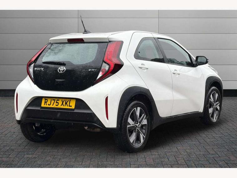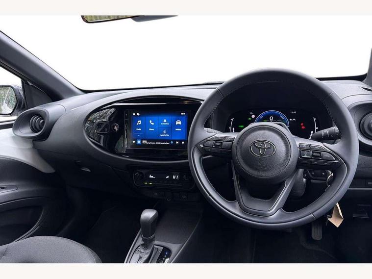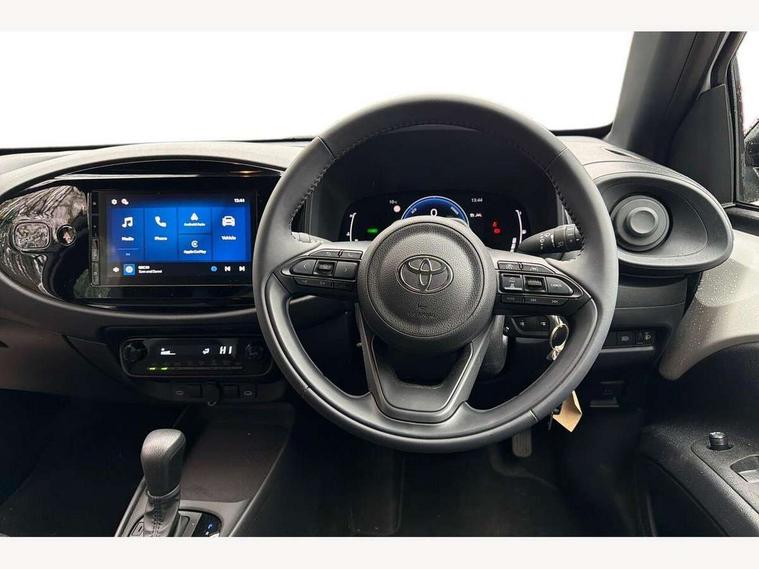7" Digital Combimeter, Acceleration suppression at low speed, Adaptive cruise control, Adaptive cruise control switch on steering wheel, Adjustable speed limiter, Bluetooth connectivity, Colour multi information display, Digital speedometer, Digital tachograph, Driver attention alert system, eCall emergency call system, Electric power steering, Emergency driving stop system, Hybrid system indicator, Intersection turn assist, Key reminder warning, Lane trace assist, Multi information display switches on steering wheel, Pre collision system with emergency steering assist, Proactive driving assist (PDA), Reversing camera, Reversing camera display in audio screen, Reversing camera with static guide lines, Road sign assist - RSA, Wireless smartphone integration incl apple car play and android auto, MacPherson front suspension, Steering assisted vehicle stability control, Torsion beam rear suspension, 4 speakers, 9" Toyota touch 3 multimedia system, DAB digital audio broadcast, Front USB-C device charger, USB Type-C connector, Auto headlights, Auto high beam assist, Automatic headlights cut-off, Bicycle towing hook, Black door belt moulding, Black protection moulding on side doors, Black rocker panel, Black upper front grille, Black wheel arch mouldings, Body colour door handles, Body coloured front bumper with silver garnish, Boot door release with push button, Bulb indicators, Follow me home headlights, Front power windows, Gloss black door mirrors, Headlight cut-off reminder, LED daytime running lights, LED front light guide, LED High mounted stop lamp, Manual day/night rear view mirror, Manual headlight levelling, Manually retractable door mirrors, Power adjustable door mirrors, Projector halogen headlights, Rain sensor, Rear combination lights LED bulb type, Rear side wing doors, Rear windscreen defogger, Rear windscreen wiper, Short antenna, Standard roof, Turning signal integrated indicators in door mirrors, Variable intermittent windscreen wipers, X gradation upper front grille, 12v power outlet - front, 2 seat bench in 2nd row, 3 spoke synthetic leather steering wheel, 50/50 split folding rear seat, Adjustable speed limiter switch on steering wheel, Audio and telephone switches on steering wheel, Auto air conditioning, Aygo X logo on floor mats, Black rear interior door handles, Black surround on air conditioning buttons, Boot light, Boot underfloor storage, Centre room light, Fabric upholstery, Floor mats, Floor mats with border/stitching, Front cup holders, Front head restraints, Gear shift indicator, Height adjustable driver seat, ISOFIX child restraint system on rear seats, Lane departure alert switch on steering wheel, Manual tilt steering wheel, Manually reclining and sliding driver seat, Manually reclining and sliding front passenger seat, Pollen filter, Power height adjustable passenger seat, PVC gear shift knob, Rear door pockets, Rear head restraints, Satin silver front interior door handles, Single compartment glovebox, Single front passenger seat, Soft deckboard, Soft tonneau cover, Sun visors with mirror on driver and passenger side, Voice recognition switch on steering wheel, ABS+EBD+Brake assist, Child safety door lock, Downhill Assist Control (DAC), Electronic parking brake with hold function, Emergency brake light signal (EBS), Hill start assist control (HAC), Passenger airbag on/off switch, Pre collision system with driver monitoring camera, Pre collision system with pedestrian, cyclist and motorbike detection, Seat belt reminder for front and rear seats, Supplement restraints system (SRS) - 6 airbags, Traction control, Tyre pressure warning system, Alarm/immobiliser, Remote power door locks, Tyre repair kit,