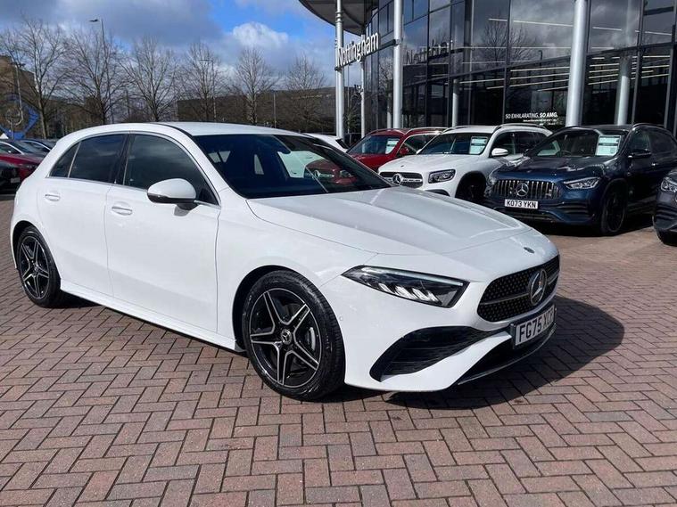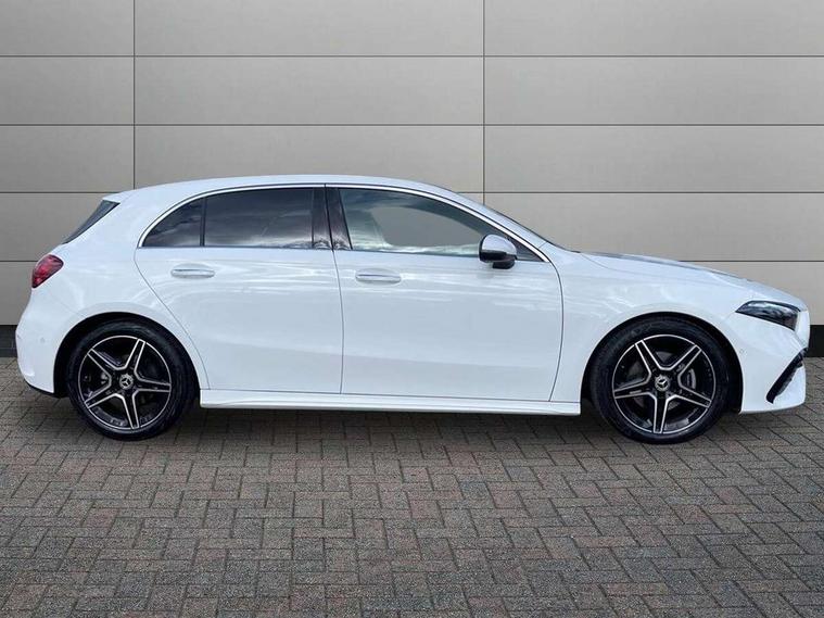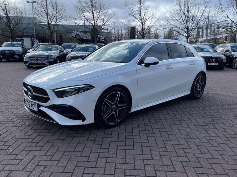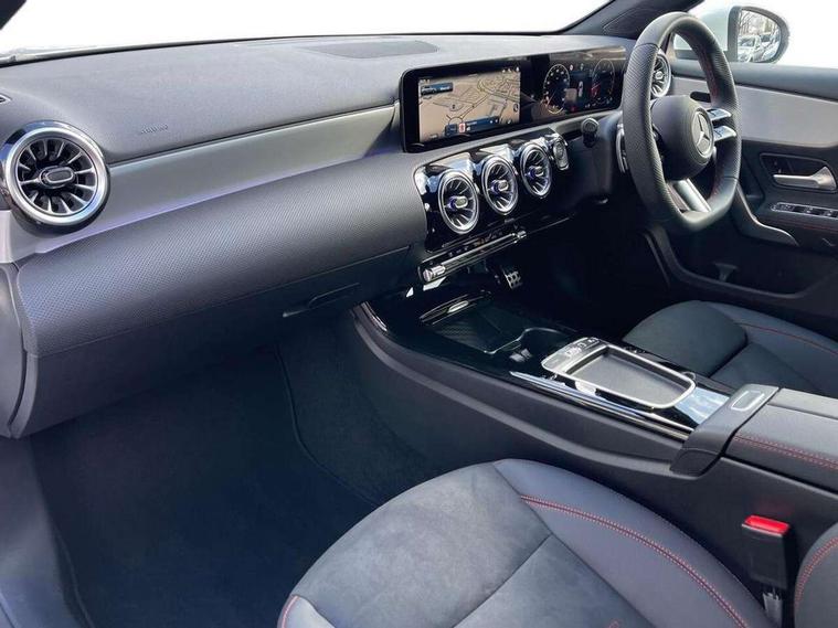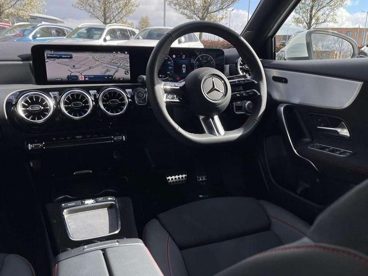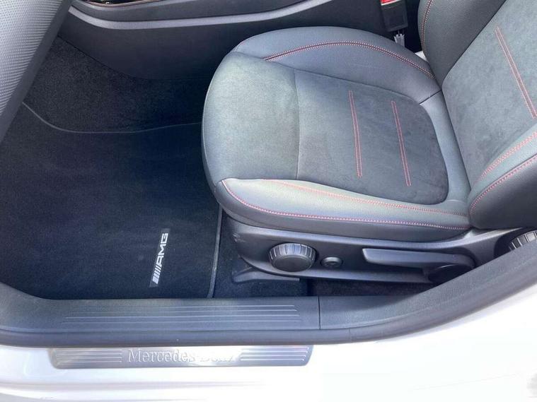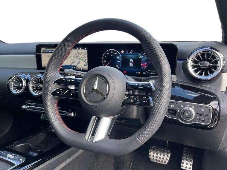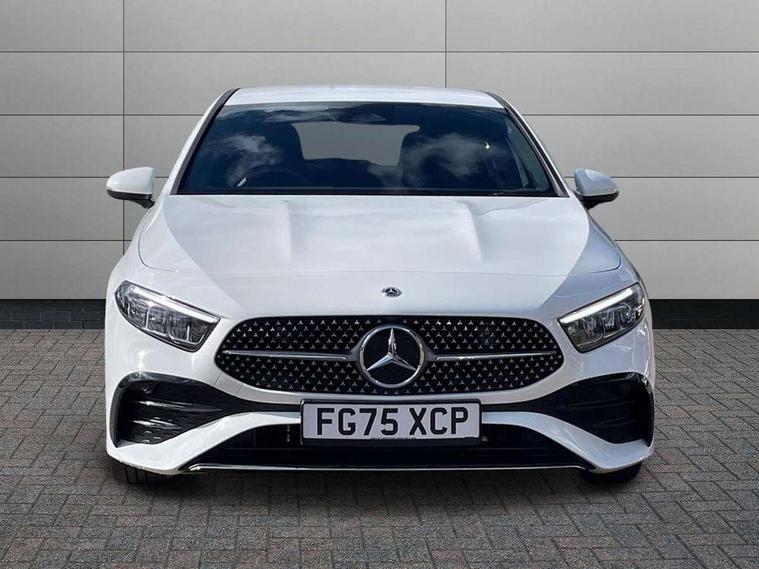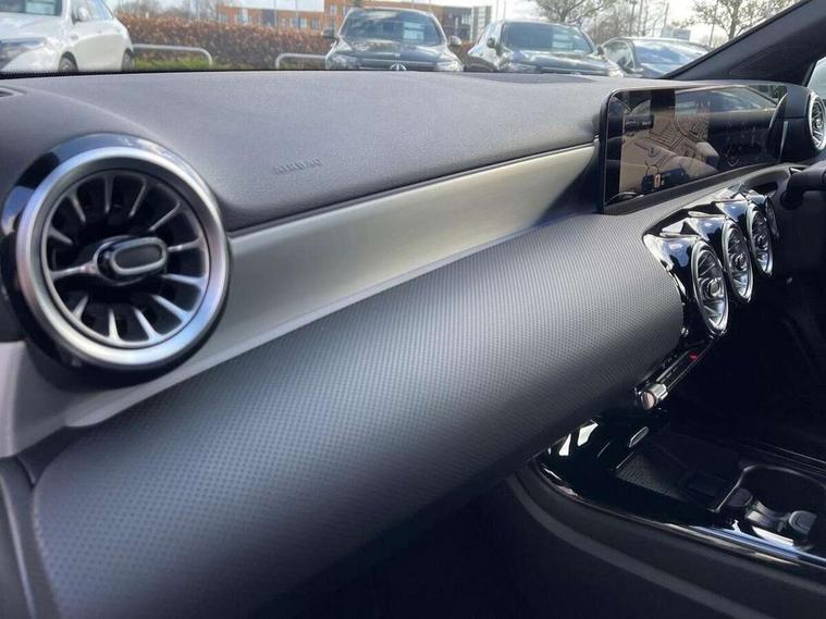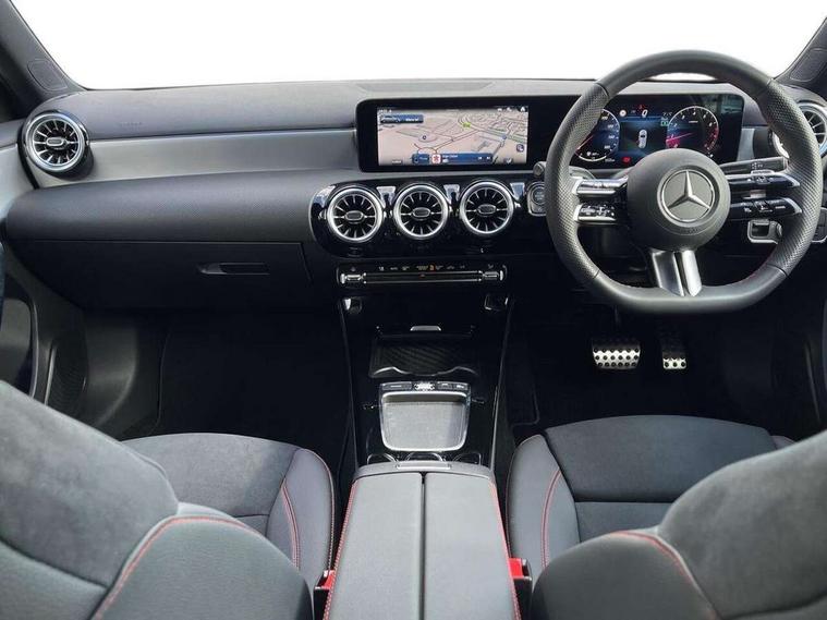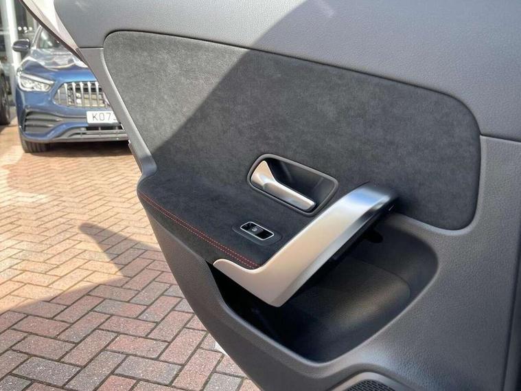 10.25 inch touchscreen central media display, 10.25" Digital instrument cluster display screen, Attention assist, Blind spot assist, Brake pad wear indicator warning light, Car wash mode, Cruise control + speed limiter, Direct steering, Direction indicators with lane change function, Dual bluetooth interfaces, DYNAMIC SELECT with a choice of driving modes (ECO, Comfort, Sport and Individual), ECO start/stop function, Engine start/stop button, Fluid level warning indicator for fuel, oil, coolant and washer fluid, Fluorescent jacket for driver, Hard-disk navigation, Hey Mercedes Voice activation, Lamp failure indicator, Lane keeping system, Mercedes me connect including emergency call system, accident recovery, breakdown and maintenance management, Mercedes me remote services, Outside temperature gauge, Owners manual in English, Pre-installation of private car share, Remote boot closing, Service indicator (ASSYST), Smartphone integration with Apple CarPlay and Android auto, Speed limit assist, Speed sensitive power steering, Tailgate, Trip computer in multifunction display with current consumption indicator, Wireless charging, Lowered comfort suspension, DAB Digital radio, MBUX multimedia system, Mercedes Benz sound system (100 W) with 6 speakers, 4 Electric Front and Rear windows, Adaptive brake lights, AMG body styling - AMG front apron with front splitter and AMG rear apron and visible exhaust tailpipe trim elements, Body colour bumpers, Body colour door handles with chrome inserts, Body colour side skirt, Chrome beltline strips, Diamond radiator grille with pins in fine star pattern, Electric adjustable and heated door mirrors with integrated LED side indicators, Exhaust system with 2 visible tailpipe trim elements and rear apron, Headlamp assist automatic headlamp activation, Heated glass rear windscreen + timer control, LED High level third brake light, LED High Performance headlamps including integral LED daytime running lamps and adaptive highbeam assist, LED tail lamp, Privacy glass, Radio aerial, Rain sensing windscreen wipers with two sensitivity settings, Rear fog lights, Rear side wing doors, Rear windscreen wiper, Window line trim strip in chrome, 3 seat bench in 2nd row, 3 Spoke flat bottom leather multi function steering wheel with perforated leather in grip area, 4 way lumbar support, 40:20:40 split folding rear seats, Air conditioning - One zone THERMATIC automatic climate control with automatically controlled air distribution, AMG floor mats, Artico man-made leather/Microcut microfibre upholstery, Automatic child seat recognition sensor, Black air vents with surround in silver chrome, Black roof lining, Brushed stainless steel sports pedals with rubber studs, Front centre armrest with stowage, Front door sills with Mercedes Benz lettering, Front seat backs luggage nets, Galvanished gear shift paddles on steering wheel, Heated front seats, Height/reach adjustable steering column, Interior lighting - 64 colour Ambient lighting, Interior mirror with reading lamps in black and frameless, Rear armrest with 2 cupholders, Rear head restraints, Seat occupancy sensor for front passenger seat, Single front passenger seat, Sports seats with integrated headrests, Stowage compartment in centre console with retractable cover, Sunvisors with illuminated vanity mirrors, Twin front cupholders, Light and sight package - A Class, Mirror package - A Class, Parking pack with 180 degree view - A Class, Seat comfort pack - A Class, USB pack plus - A Class, 3 rear 3 point seatbelts, ABS with Brake Assist, Active bonnet, Active brake assist includes forward collision warning system with autonomous braking, Adaptive brake assist with hold function and hill start assist, Bonnet with power domes, Childproof locks manually operated for rear doors and electrically operated for rear power windows, Crash responsive emergency lighting, Driver and passenger head and side airbags, Drivers knee airbag, Dual stage driver/passenger airbags, Electronic parking brake, ESP curve dynamic assist, ESP with ASR, Front and rear seatbelt reminder, ISOFIX and top tether child seat fixing points in two outer rear seats, Tyre pressure monitoring system, Warning triangle and first aid kit, Window airbags, Alarm system/interior protection/immobiliser, Guard 360 degree vehicle protection, Keyless entry lock/unlock, Keyless Go, Remote central locking and crash sensor with emergency opening function, Black seatbelts, Light longitudinal grain aluminium trim, 18" AMG 5 twin spoke light alloy wheels, aerodynamically optimised, painted in black with high sheen finish, Summer tyres, Tirefit sealant kit,