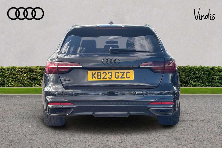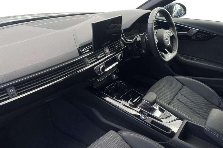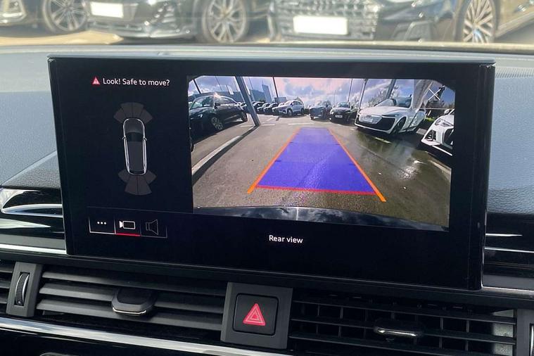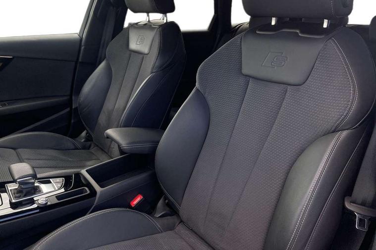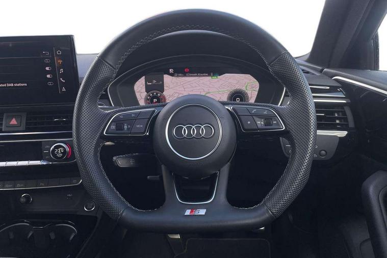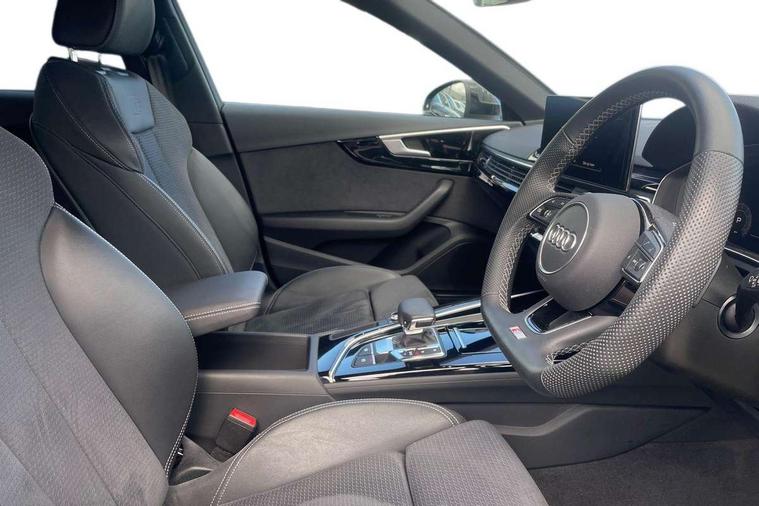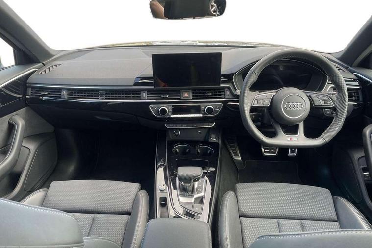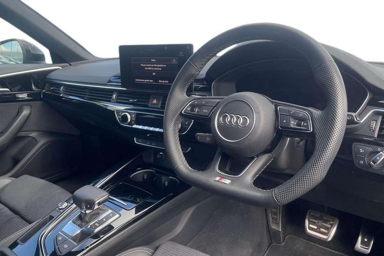 Audi connect safety and service (e-call), Audi connect with Amazon Alexa Integration, Audi drive select, Audi smartphone interface, Audi virtual cockpit, Automatic start-stop system with coasting functionality and efficiency programme, Bluetooth interface, Electromechanical power steering, Email, calendar and text messages displayed via MMI, MMI Navigation plus with MMI touch includes 10.1" high resolution colour MMI display, 3D map, Power operated tailgate, Voice control system, 54 litre fuel tank, Sports suspension lowered by 23mm, 2 USB charging ports, 8 passive loudspeakers, DAB digital radio reception, Audi beam uses LEDs to project the audi logo onto the ground as you exit your A4, Auto dimming rear view mirror, Black Audi rings and black badging (model name in black badging, no engine badging), Body colour door handles, Body colour front spoiler lip, Body colour side sill trim, Electrically folding auto dimming/adjustable/heated door mirrors with LED side indicators and kerb view function for passenger side, Exhaust tailpipes in high dark chrome, Front and rear bumpers with side skirts, Grained matt black side air inlets with matt aluminium silver inlay, High beam assistant, High gloss black B pillar trims and triangular rear door trim, LED headlights with LED rear lights + dynamic rear indicators + headlight adjustment and high beam, turning light + LED daytime running lights, LED third brake light, Privacy glass, Rain and light sensors, Rear diffuser in matt black with trim strip in matt aluminium silver, Rear side wing doors, Rear wiper, RS4 rear spoiler in body colour, S Line badges on the front wings, S Line roof edge spoiler, Variable intermittent front wash/wipe, Windscreen with acoustic glazing, 4 way electric lumbar support for driver and front passenger, 40/20/40 split folding 3 rear seat bench in 3 parts with rear centre armrest, Black cloth headlining, Black perforated leather gearknob, Contrast stitching on seats, steering wheel and gear lever gaiter, Deluxe 3 zone electronic climate control, Door sill trims with aluminium inlay, Electric load area cover, Front and rear head restraints, Front centre armrest, Heated front seats, Illuminated door sill trims with S logo, ISOFIX child seat mounting and top tether, Manual seat adjustment, Single front passenger seat, Stainless steel pedals and foot rest, Black styling pack - A4 Avant, LED Interior light pack - A4/S4, 3 rear seatbelts, 6 airbags - Driver, front passenger, curtain and side windows, Electronic Stabilisation Control (ESC) including ABS, ASR and EDL, Hill hold assist, Multi collision brake assist, Pop-up bonnet for pedestrian protection, Pre sense city, Rear door child safety locks, Seatbelt monitoring, Warning triangle and first aid kit, Anti theft alarm, Anti theft wheel bolts, Central locking, Keyless Go, Piano black finish inlay, 19" 5 arm flag design Audi sport diamond cut alloy wheels in gloss anthracite black, Tool kit, Tyre repair kit,