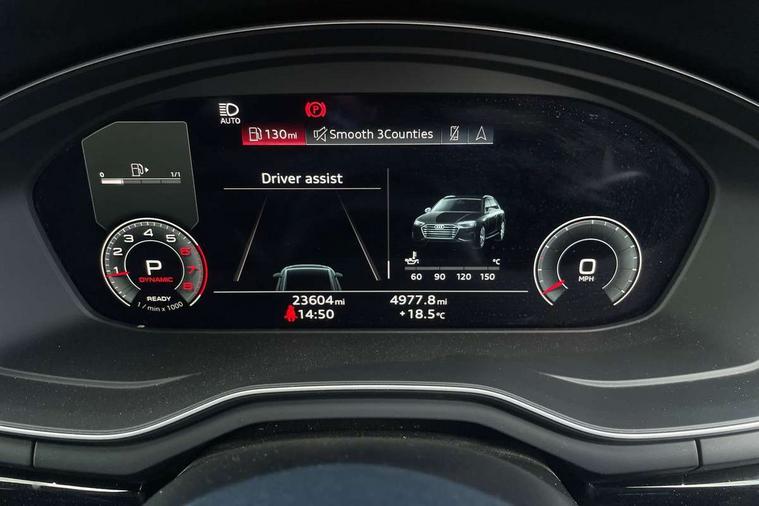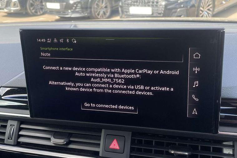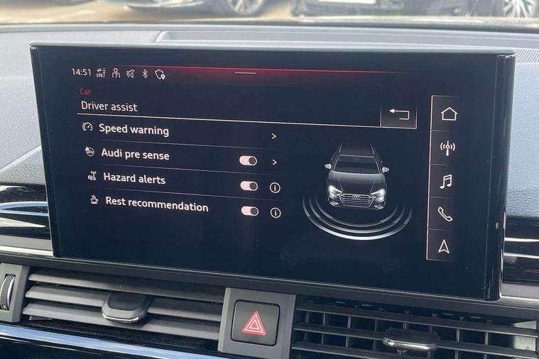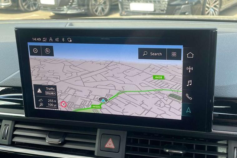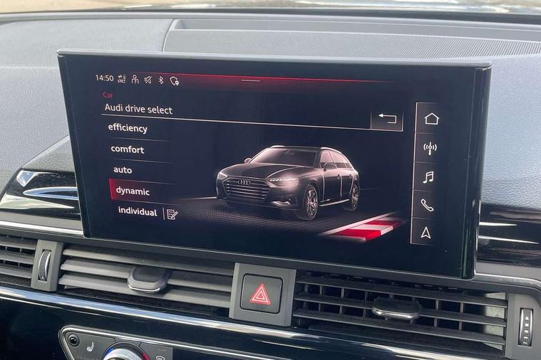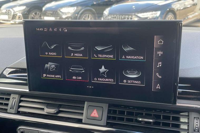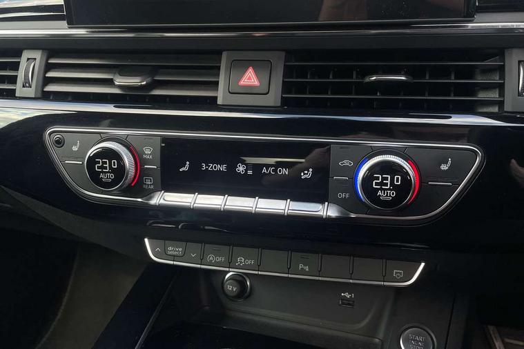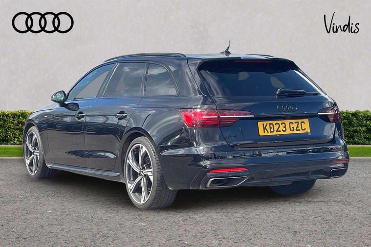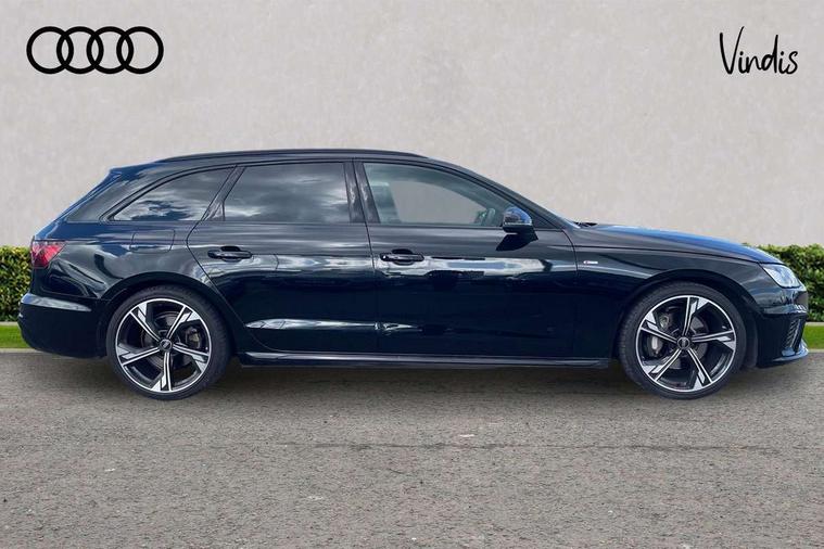 Audi connect safety and service (e-call), Audi connect with Amazon Alexa Integration, Audi drive select, Audi smartphone interface, Audi virtual cockpit, Automatic start-stop system with coasting functionality and efficiency programme, Bluetooth interface, Electromechanical power steering, Email, calendar and text messages displayed via MMI, MMI Navigation plus with MMI touch includes 10.1" high resolution colour MMI display, 3D map, Power operated tailgate, Voice control system, 54 litre fuel tank, Sports suspension lowered by 23mm, 2 USB charging ports, 8 passive loudspeakers, DAB digital radio reception, Audi beam uses LEDs to project the audi logo onto the ground as you exit your A4, Auto dimming rear view mirror, Black Audi rings and black badging (model name in black badging, no engine badging), Body colour door handles, Body colour front spoiler lip, Body colour side sill trim, Electrically folding auto dimming/adjustable/heated door mirrors with LED side indicators and kerb view function for passenger side, Exhaust tailpipes in high dark chrome, Front and rear bumpers with side skirts, Grained matt black side air inlets with matt aluminium silver inlay, High beam assistant, High gloss black B pillar trims and triangular rear door trim, LED headlights with LED rear lights + dynamic rear indicators + headlight adjustment and high beam, turning light + LED daytime running lights, LED third brake light, Privacy glass, Rain and light sensors, Rear diffuser in matt black with trim strip in matt aluminium silver, Rear side wing doors, Rear wiper, RS4 rear spoiler in body colour, S Line badges on the front wings, S Line roof edge spoiler, Variable intermittent front wash/wipe, Windscreen with acoustic glazing, 4 way electric lumbar support for driver and front passenger, 40/20/40 split folding 3 rear seat bench in 3 parts with rear centre armrest, Black cloth headlining, Black perforated leather gearknob, Contrast stitching on seats, steering wheel and gear lever gaiter, Deluxe 3 zone electronic climate control, Door sill trims with aluminium inlay, Electric load area cover, Front and rear head restraints, Front centre armrest, Heated front seats, Illuminated door sill trims with S logo, ISOFIX child seat mounting and top tether, Manual seat adjustment, Single front passenger seat, Stainless steel pedals and foot rest, Black styling pack - A4 Avant, LED Interior light pack - A4/S4, 3 rear seatbelts, 6 airbags - Driver, front passenger, curtain and side windows, Electronic Stabilisation Control (ESC) including ABS, ASR and EDL, Hill hold assist, Multi collision brake assist, Pop-up bonnet for pedestrian protection, Pre sense city, Rear door child safety locks, Seatbelt monitoring, Warning triangle and first aid kit, Anti theft alarm, Anti theft wheel bolts, Central locking, Keyless Go, Piano black finish inlay, 19" 5 arm flag design Audi sport diamond cut alloy wheels in gloss anthracite black, Tool kit, Tyre repair kit,