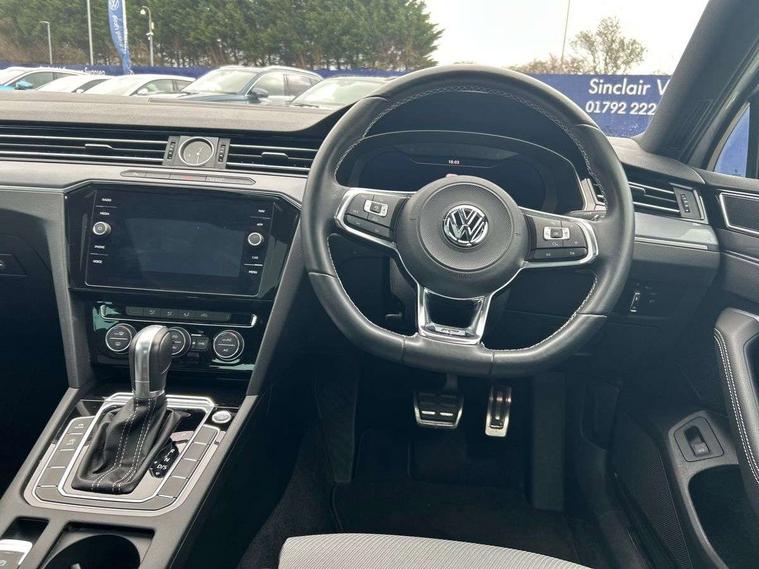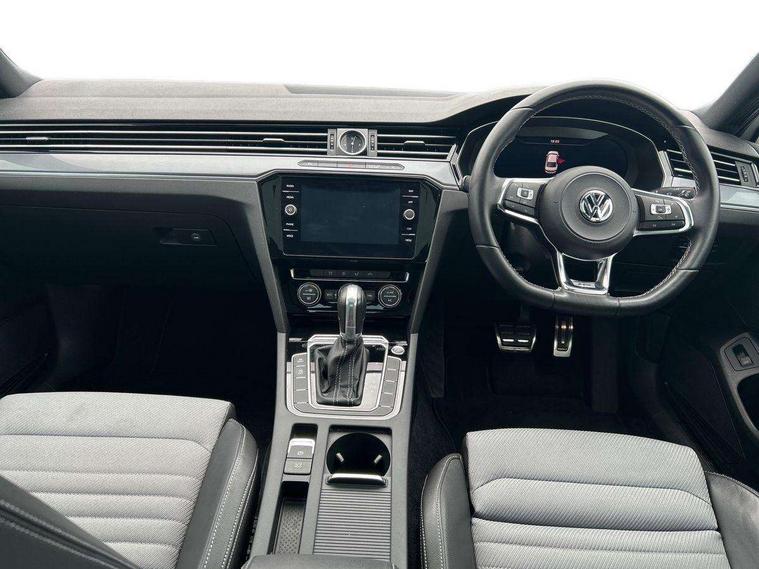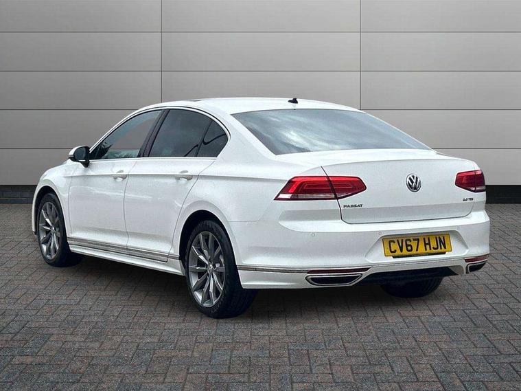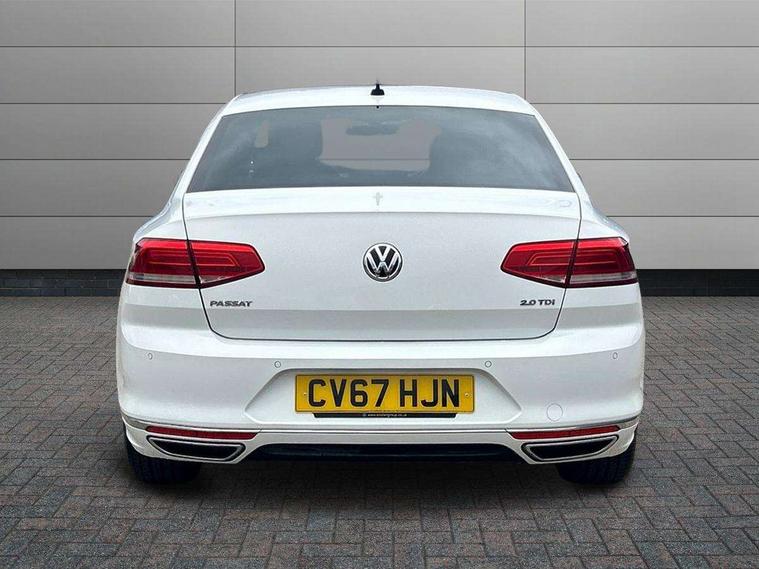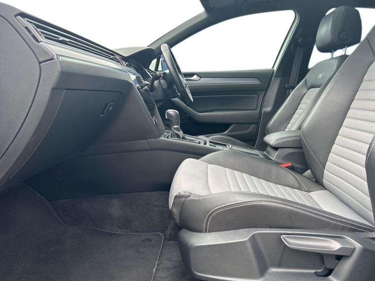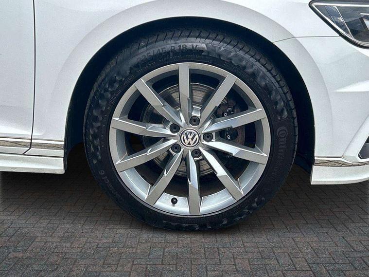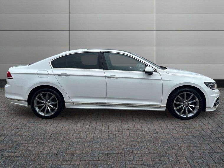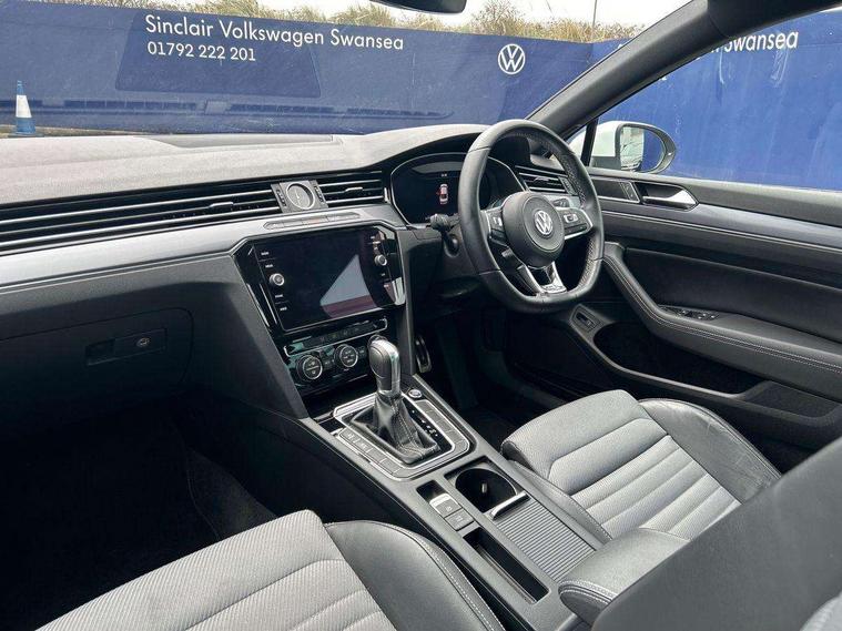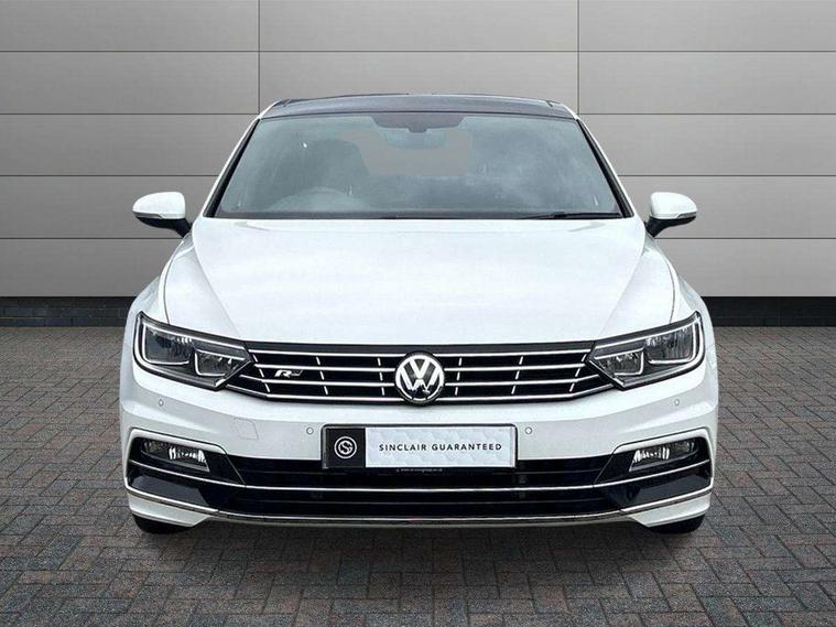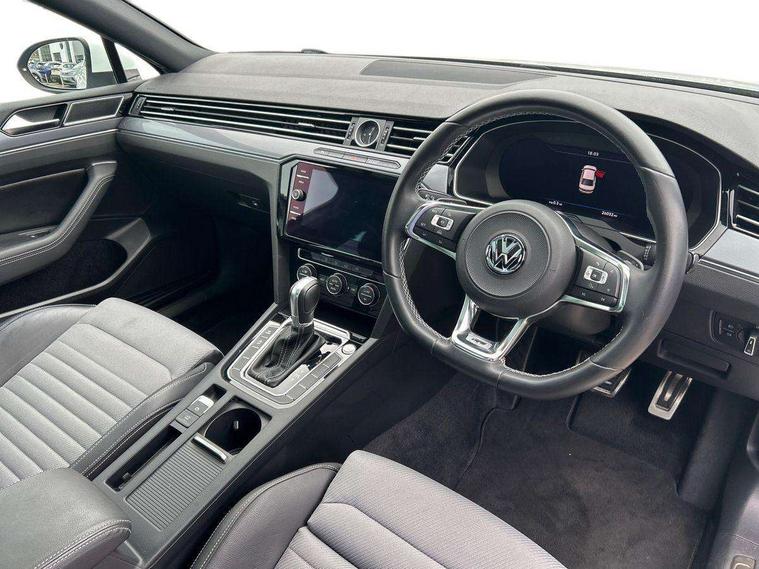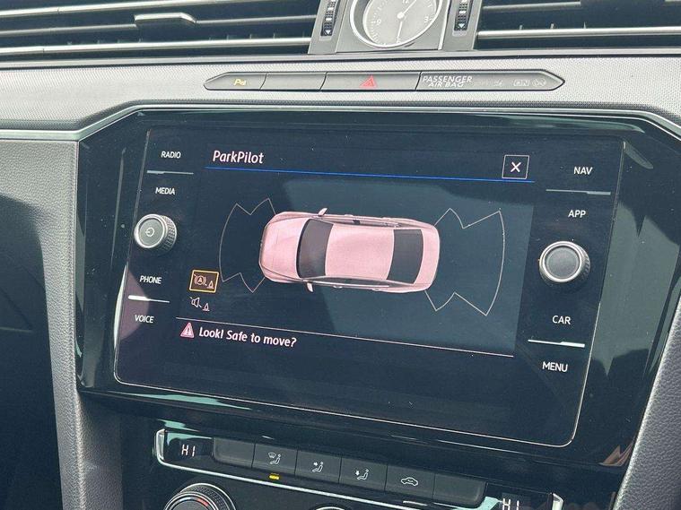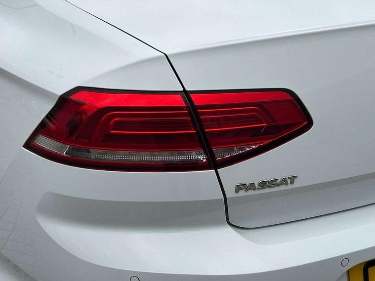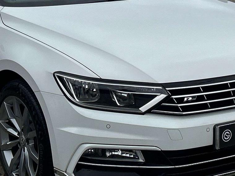Adaptive cruise control, Analogue clock, Door/boot open warning light, Driver alert system, Driver profile selection, Exterior temperature gauge with frost alarm, Information display, Low washer fluid warning light, Multifunction computer, Remote boot release, Remote fuel flap release, Rev counter with fuel gauge, Service interval indicator, Speed limiter, Warning buzzer and light for front seatbelts unfastened, Diesel particulate filter, Auxiliary socket for external device, Composition media system with Radio/CD/MP3, DAB Digital radio, MDI with USB/iPod connection cables, SD card slot, Auto dimming driver's door mirror, Auto dimming rear view mirror, Automatic activation of hazard warning lights, Automatic headlights with dusk sensor, Body colour bumpers, Body colour door handles, Body coloured door mirrors, Chrome fog light surround, Chrome louvres in grille, Chrome side sills, Chrome side window surrounds, Chrome surround for air intake, Coming/leaving home lighting function, Electric front windows, Electric panoramic sunroof with sunblind, Electric rear windows, Electrically adjustable and heated door mirrors, Front fog lights with static cornering function, Gloss black finish on B pillar, Headlight range control, Heated rear window, LED rear lights, R Line body kit, Rain sensor, Remote folding door mirrors and puddle lights, Trailer stability assist, Twin Trapezoidal tailpipes, Windscreen wipers/ intermittent wipe + 4 position delay, 12V Accessory socket in centre console, 12V socket in luggage compartment, 3 rear head restraints, 3 spoke multifunction leather steering wheel including paddle shift, 3 Zone electronic climate control with automatic air recirculation, 4 boot load lashing points, 60/40 split folding rear seat, Black roof lining, Driver's cushion tilt adjust, Entry lights on doors, Front + rear carpet mats, Front and rear interior lighting with delay and dimming function, Front centre armrest with storage compartment, Front comfort seats, Front cupholders x2 with covers, Front door pocket bottle holders, Height adjustable head restraints, Height/reach adjust steering wheel, Leather gearknob, Load through provision, Lockable, illuminated, cooled glovebox, Luggage compartment cover, removable, Luggage compartment lighting, Rear centre armrest with cupholder and storage, Stainless steel pedals, Storage compartment in driver's door, Storage compartment in passenger's door, Storage compartment in rear doors, Storage compartment in roof console, Storage pockets in backrests of front seats, Sunvisors with illuminated vanity mirrors, Variable boot floor, Ambient lighting pack - Passat, Mirror pack - Passat, 3 rear 3 point seatbelts, ABS, brake assist and EBD, Automatic post collision braking, Curtain airbags, Driver/Front Passenger airbags, Driver/Front passenger WOKS head restraints, Drivers knee airbag, Electronic parking brake with auto hold, ESP with EDL + ASR, First aid kit, Front assist including city emergency braking, Front side airbags, Height adjustable front 3 point seatbelts + pretensioners, Hill hold function, Manual passenger airbag deactivation function, Pre crash system, Rear seatbelt warning indicator, Rear side airbags, Warning triangle, Alarm with interior protection, Electronic engine immobiliser, Keyless start, Remote central locking with 2 remote folding keys, Brushed aluminium interior trim, Chrome air vent and instrument surround, Piano black centre console, White instrument dials,