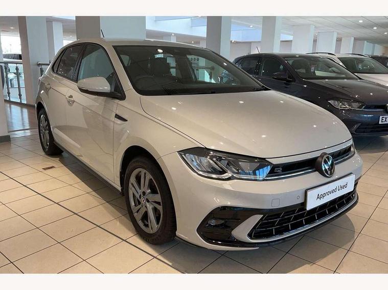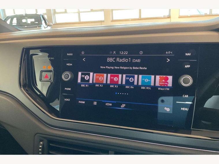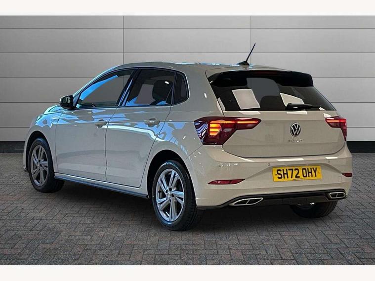 Adaptive cruise control with follow-to-stop and speed limiter, Bluetooth mobile phone interface, Digital Cockpit Pro with 10.25" Display, Driver alert system, Dynamic road sign display, Emergency call service, Power assisted speed sensitive steering, Preparation for We connect and We connect plus, Speedo and rev counter, electronic odometer, trip, service interval display and fuel gauge, Standard rear axle, Travel Assist - Lane keeping system and traffic jam assist, Travel assist including emergency assist, Trip computer, Warning signal and warning light for front and rear seatbelts not fastened, Washer fluid level indicator, Wireless app connect, Front wheel drive, Rear shock absorpion, Start-stop system with battery regeneration (recuperation - energy recovery during braking), DAB Digital radio, Diversity antenna for FM reception, Front and rear 6 speakers, Body colour bumpers, Body colour door handles, Electric front windows, Front scuff plates with R-Line logo, Heat insulating darkened glass in side and rear windows, Heat insulating glass windscreen, Power folding adjustable/heated exterior mirrors and front passenger exterior mirror lowering function, Rear electric windows, Rear fog light, Rear side wing doors, Rear windscreen washer and wiper with interval delay, Third brake light, 12V power socket in centre console, 2 USB-C ports in the front, 2 USB-C charging sockets on the center console in the rear, 3 rear head restraints, 60/40 split folding rear seat and rear seat bench not split, Air care climatronic air conditoning system with active combination filter and 2-zone temperature control, Black roof lining, Chrome plated radiator grille inserts, air vent surrounds and light switch surrounds, Door and side trim panel, Driver and front passenger seat height adjustment, Driver/passenger sunvisors with illuminated vanity mirrors, Front + rear carpet mats in recycled material, Front centre armrest, Front footwell illumination, Front seat backrest storage pockets, Front sports comfort seats, Handbrake lever handle in leather, Headliner in recycled material, Isofix child seat preparation easy-fit (for two outer rear seats, and front passenger seat) compatible with I-size, Karoso artvelours cloth upholstery, Leather trimmed gear knob, LED interior light with switch off delay and dimmer, 2 reading lights front and rear, Luggage compartment cover, Luggage compartment floor, Luggage compartment lighting, Lumbar adjustment for front seats, Single front passenger seat, Stainless steel pedals, Standard pedal cluster, Three spoke leather wrapped multifunction steering wheel with shifting paddles, Light and sight pack - Polo R-Line/Black Edition, 3 point height adj front seatbelts + pretensioners, 3x3 point rear seatbelts, ABS, Driver and front passenger airbag with front passenger airbag deactivation, Drivers and front passengers safety optimised head restraints, ESC (Electronic stability control) + EDL (Electronic Differntial lock) and ASR (Traction control), Extended and predictive pedestrian/ cyclist protection, Front curtain and side airbags with center airbag, Hill hold control, Manual child lock in rear doors, Single tone horn, Tyre pressure loss indicator, Alarm with interior protection, Anti-theft alarm system with interior monitoring, backup horn, and towing protection, Anti-theft wheel bolts, Electronic engine immobiliser, Chrome applications on rotary light, mirror adjustment, window regulator switches, outlet with frame in black, Dark grey anodised matt decorative inserts in dash and front door panels, Low rolling resistance tyres,