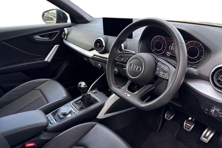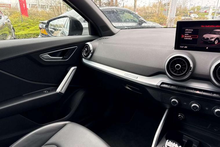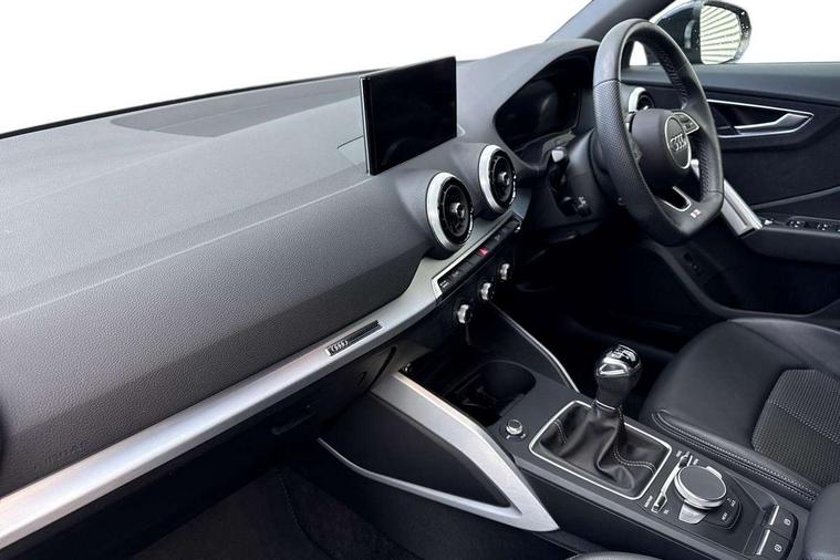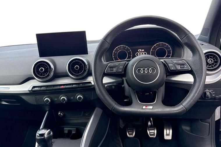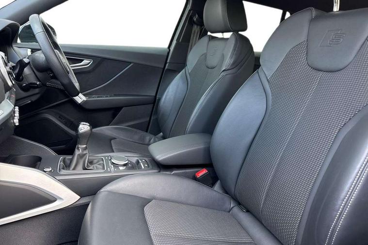 3D map display, Audi connect navigation and infotainment includes innovative services, Audi connect remote and control connects your vehicle to your smartphone, Audi drive select: power steering assistance + engine (modes: comfort, auto, dynamic, efficiency, individual), Audi smartphone interface - Apple carplay/Android Auto, USB connect, 2xSDXC card readers, voice control for navi, telephone, music and 3rd party apps, Audi virtual cockpit, Automatic start/stop system with recuperation, Bluetooth interface includes bluetooth audio streaming, Cruise control, E-call, Jukebox hard drive memory for music (10GB), MMI navigation plus with 8.3" colour MMI screen and MMI touch, Natural voice recognition, Power operated tailgate, Progressive steering, Rear parking sensors, Sport suspension, 6 passive loudspeakers, DAB Digital radio, Audi beam, Auto dimming rear view mirror, Black window trims, Bumper in full body colour paint finish, Electrically adjustable, folding, auto dimming and heated door mirrors with integrated LED side indicators, Front windscreen with grey tinted sunband, LED daytime running lights, LED headlights with dipped beam, high beam, position lights, indicators, LED rear lights, LED third brake light, Privacy glass - dark tinted rear and rear side windows from B-pillar backwards, Rear side wing doors, Rear wiper, Variable front intermittent wipers, Wheel arch trims in manhattan grey, 12V socket in front, 3 seat bench in 2nd row, 3 spoke flat bottomed multi-function leather sport steering wheel, 4-way electric lumbar support for front seats including manual seat height adjustment for both front seats, 60/40 split folding rear seat bench, Black carpets, Black cloth headlining, Front and rear head restraints, Front centre armrest, Front sport seats, Front/rear floor mats, Height/reach adjust steering wheel, Illuminated door sill trims with S logo, ISOFIX child seat mounting in front passenger and rear outer seats, Manual air conditioning, Single front passenger seat, Stainless steel pedals, Black styling pack - Q2, 3x3 point rear seatbelts, 6 airbags - Front, curtain and front side airbags, Electromechanical parking brake, Electronic stabilisation control including ABS, ASR and EDL, Front passenger airbag deactivation, Hill hold assist, Pre-sense front with pedestrian recognition, Seatbelt monitoring, Tyre pressure warning light with visual and acoustic warning, Warning triangle and first aid kit, Anti theft alarm, Anti theft wheel bolts, Electronically operated child locks, Remote central door locking, Aluminium interior element, Black dashboard, Matt brushed aluminium trim inlays, Tool kit,