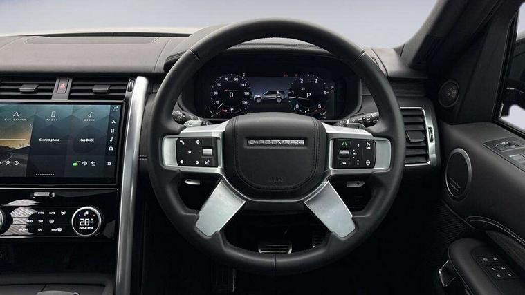 11.4" touchscreen, 3D surround camera, Adaptive cruise control, Android Auto, Apple car play, Blind spot assist, Driver condition monitor, Electric power assisted steering (EPAS), Emergency services call system, Front and rear parking aid, Lane keep assist, Power inner tailgate, Push button start, Rear collision monitor, Rear traffic monitor, Remote, Remote boot release, Service interval indicator, Speed proportional steering, Sportshift selector, Stop/start system, Traffic sign recognition with adaptive speed limiter, Trip computer, Wade Sensing, Adaptive dynamics, Dynamic stability control, Electronic air suspension, Front axle open differential, Digital Audio Broadcast radio-DAB, Dynamic volume control, Meridian surround sound system - 14 speaker + subwoofer, 18 channel amplifier, 700W, Pivi pro connected, USB/aux input socket, Acoustic laminated windscreen, Animated directional indicators, Auto dimming interior rear view mirror, Automatic headlight levelling, Automatic headlights, Body colour bumpers, Body colour door handles, Centre high mounted stop light, D300 badge, Electric heated/power fold memory door mirrors with approach lights and auto dimming driver side, Electric windows with one touch open/close and anti-trap, Heated rear window, Heated windscreen, LED darkend tail lights, Matrix LED headlights with signature DRL, Metal treadplates with R-Dynamic branding, Narvik black Discovery script, Privacy glass, Puddle lights, Rain sensing windscreen wipers, Rear fog lights, Rear side wing doors, Rear wash/wipe, Trailer stability assist, Variable intermittent wiper, 12V power sockets, 12V USB charging socket in loadspace, 2 seat bench in 3rd row, 3 seat bench in 2nd row, Central hinged twin lidded storage, Ebony morzine headlining, Electric adjustable steering column, First and second row door bins, Footwell lights, Front and rear 12V with front USB, Front passenger seat isofix location point, In-facia storage, Isofix child seat preparation for front passenger seat, Loadspace cover, Loadspace Hook, Loadspace light, Lockable glovebox, Lower centre console storage, Luggage tie downs in loadspace, Multi function steering wheel, Overhead lighting console, Premium cabin lighting, Premium carpet mats, Rear ISOFIX, Shopping bag hook, Single front passenger seat, Storage glovebox, Sunvisors with illuminated vanity mirrors, Third row storage, Twin front cupholders with cover, USB with 12V socket in centre console, Online pack with data plan - Discovery, R-Dynamic black exterior pack - Discovery, 3x3 point rear seatbelts, Anti-lock braking system (ABS), Brake pre-fill technology, Cornering brake control, Curtain airbags, Customer configurable autolock, Driver and passenger airbags, EBD - Electronic brakeforce distribution, Electronic traction control, Emergency brake assist, Emergency braking, ESP, Front side airbags, Gradient acceleration control, Hill descent control, Hill launch assist, Power operated child locks, Rear airbags, Roll stability control, Seat belt reminder, Torque vectoring brake, Tyre pressure monitoring system, Immobiliser, Intrusion sensor, Keyless entry, Locking wheel nuts, Remote central locking, All terrain tyres,