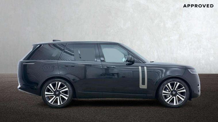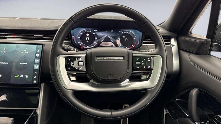 13.1" Touchscreen, 3D surround camera inc frwd traffic detection, vehicle clearance guidance, 3D view, clearsight ground view, manoevure light, 360 parking aid, wade sensing, All Terrain Info Centre, All wheel steering, Android Auto, Apple car play, Blind spot assist, Bluetooth connectivity streaming, Driver condition response, Eco mode, Electric power assisted steering (EPAS), Emergency call service, Front and rear parking aid, Head up Display, Interactive driver display, Lane keep assist, Rear collision monitor, Rear traffic monitor, Remote, Traffic sign recognition with adaptive speed limiter, Wi-Fi Enabled with data plan, Wireless device charging with phone signal booster, 8 speed automatic transmission, Active damper technology system, Adaptive dynamics, All terrain progress control, All Wheel Drive (AWD), Automatic access height, Terrain Response 2 Auto, Twin speed transfer box, Digital Audio Broadcast radio-DAB, Pivi pro including smart settings, Connected navigation pro, nuance speech, USB socket, Acoustic laminated windscreen, Animated directional indicators, Automatic headlights, Automatic levelling headlights, Centre high mounted stop light, ClearSight interior rear view mirror, Electric windows with one touch open/close and anti trap, Engine cover, Flush deployable exterior door handles, Front and rear recovery eyes, Front fog lights, Headlamp power wash, Heated rear window, Heated washer jets, LED tail lights, No badges, Power fold, auto-dimming, heated door mirrors with approach lights, Rain sensing windscreen wipers, Rear boot, Rear fog lights, Rear side wing doors, Side repeater indicators in mirror, Trailer stability assist, Winter wiper park position, 12V power sockets, 3 seat bench in 2nd row, Air quality sensor, Bright metal pedals, Cabin air purification pro, Cabin lighting, Customer configurable single point entry, Driver and passenger front seat armrests, Easy boot loading, Ebony Carpet, Front and rear cupholders, Front and rear grab handles, Front head restraints, Gearshift paddles, Heated steering wheel, Hook in load space, Loadspace light, Luggage tie down in loadspace, Multifunction steering wheel, Rear centre armrest, Rear head restraints, Rear ISOFIX, Single front passenger seat, Soft close doors, Twin blade sunvisors with Illuminated vanity mirrors, Upper and lower glovebox, Online pack with data plan - Range Rover, 3x3 point rear seat belts, Anti-lock braking system (ABS), Brake hold function, Cornering brake control (CBC), Customer configurable autolock, DSC - Dynamic Stability Control, Electronic brake force distribution, Electronic parking brake, Electronic traction control, Emergency brake assist, Emergency braking, Front airbags with passenger seat occupant detector, Front side airbags, Hill descent control, Hill launch assist, Illuminated seat belt buckles, Low traction launch, Occupant protection assist, Power operated child locks, Roll stability control, Tyre pressure monitoring system (TPMS), Immobiliser, Intrusion sensor and alarm, Keyless entry, Locking wheel nuts, Remote central locking, Noble chrome controls,