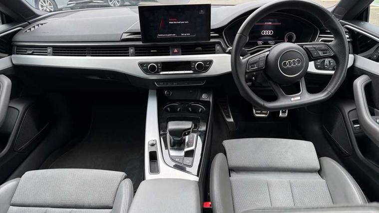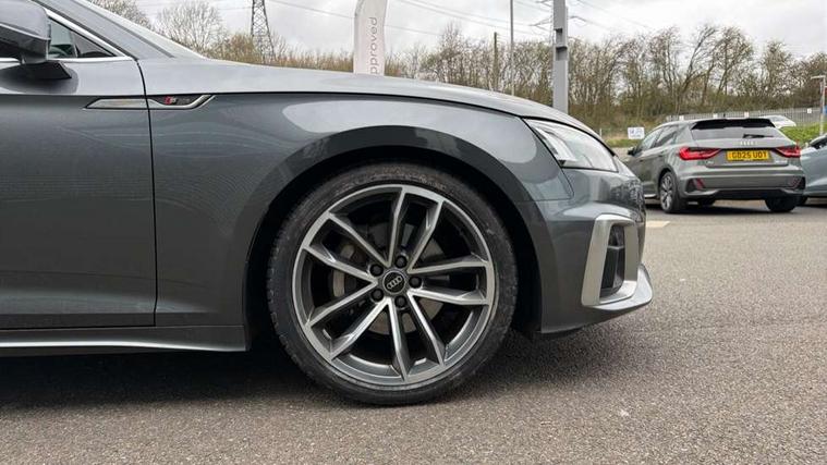 Audi connect safety and service (e-call), Audi connect with Amazon Alexa Integration, Audi drive select (Auto, Comfort, Dynamic, Efficiency and Individual), Audi parking system plus with front and rear sensors, Audi smartphone interface, Audi virtual cockpit - 12.3" full colour digital instrument cluster, vehicle/engine speed, Radio/media information+Driver assistance systems, Automatic start-stop system with coasting functionality and efficiency programme, Bluetooth interface, Electro-mechanical power steering, Email, calendar and text messages displayed via MMI, MMI nav+ with MMI touch - 10.1" high resolution MMI display, touch sensitive, 3D map, route/country info, dynamic route guide, personal route assist, Power operated tailgate, Rear view camera, Service interval indicator, Voice control system, Sports suspension lowered by 23mm, 8 passive loudspeakers, CD player, DAB digital radio reception, Two additional USB ports for rear passenger in rear centre console, Two SDXC card slots, Audi matrix LED headlights with LED rear lights + dynamic front and rear indicators, Auto dimming door mirrors, Auto dimming rear view mirror, Body colour bumpers, Body colour door handles, Body colour front spoiler lip, Body colour side sill trim, Body coloured door mirrors, Electric adjustable heated door mirrors, Electric folding door mirrors, Electric front windows, Front fog lights, Honeycomb structure radiator grille in grained matt black, Kerb-view function for passenger side, LED daytime running lights, LED side indicator lights integrated into door mirrors, LED third brake light, Matt aluminium silver tailpipe trim, Privacy glass, Rain and light sensors, Rear side wing doors, S line badges on front wings, S line front and rear bumpers with side skirts, S Line rear diffuser in matt anthracite black with trim strip in matt aluminium silver, Side air inlets in grained matt black with matt aluminium silver inlay, Variable front intermittent wipers, Windscreen with acoustic glazing, 3 seat bench in 2nd row, 3 spoke high multifunction leather sport steering wheel with paddle shfit and S badging perforated leather grips, 4 way electric lumbar support for driver and front passenger, 40/20/40 split folding 3 seater rear bench seat, Adjustable steering column, Black cloth headlining, Black perforated leather gearknob, Contrast stitching on seats, steering wheel and gear lever gaiter, Deluxe 3 zone electronic climate control, Front centre armrest, Front head restraints, Front/rear floor mats, Heated front seats, Illuminated door sill trim with S logo, ISOFIX child seat mounting and top tether, Luggage compartment mat, Manual seat adjustment, Rear centre armrest, Rear headrests, Single front passenger seat, Stainless steel pedals, Sunvisors with vanity mirrors, LED interior light pack - A5/RS5, 3x3 point rear seatbelts, 6 airbags - Driver, front passenger, curtain and side airbags, Electromechanical parking brake, Electronic Stabilisation Control (ESC) including ABS, ASR and EDL, Front passenger airbag deactivation, Height adjustable front seatbelts, Hill hold assist, Manual child lock in rear doors, Multi collision brake assist, Pop-up bonnet for pedestrian protection, Pre sense city, Seatbelt monitoring, Tyre pressure warning, Variable restraint system, Warning triangle and first aid kit, Anti theft alarm system, Anti theft wheel bolts, Immobiliser, Keyless Go, Remote central locking, Matt brushed aluminium inlays, Tool kit, Tyre repair kit,