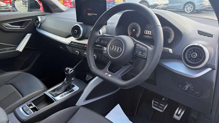 3D map display, Audi connect navigation and infotainment includes innovative services, Audi connect remote and control connects your vehicle to your smartphone, Audi drive select: S tronic - power steering assistance + engine + gearshift (modes: comfort, auto, dynamic, efficiency, individual), Audi smartphone interface - Apple carplay/Android Auto, USB connect, 2xSDXC card readers, voice control for navi, telephone, music and 3rd party apps, Audi virtual cockpit, Automatic start/stop system with recuperation, Bluetooth interface includes bluetooth audio streaming, Camera based traffic sign recognition, Cruise control, Distraction and Fatigue warning, E-call, Jukebox hard drive memory for music (10GB), Lane departure warning, MMI navigation plus with 8.8" touchscreen, Natural voice recognition, Power operated tailgate, Progressive steering, Rear parking sensors, Sport suspension, 6 passive loudspeakers, DAB Digital radio, USB type C port, Audi beam, Auto dimming rear view mirror, Black window trims, Bumper in full body colour paint finish, Electrically adjustable, folding, auto dimming and heated door mirrors with integrated LED side indicators, Front windscreen with grey tinted sunband, LED daytime running lights, LED headlights with dipped beam, high beam, position lights, indicators, LED rear lights, LED third brake light, Privacy glass - dark tinted rear and rear side windows from B-pillar backwards, Rear side wing doors, Rear wiper, Variable front intermittent wipers, Wheel arch trims in manhattan grey, 12V socket in front, 3 seat bench in 2nd row, 3 spoke flat bottomed multi-function leather sport steering wheel with gear shift paddles, 4-way electric lumbar support for front seats including manual seat height adjustment for both front seats, 60/40 split folding rear seat bench, Black carpets, Black cloth headlining, Front and rear head restraints, Front centre armrest, Front sport seats, Front/rear floor mats, Height/reach adjust steering wheel, Illuminated door sill trims with S logo, ISOFIX child seat mounting in front passenger and rear outer seats, Manual air conditioning, Single front passenger seat, Stainless steel pedals, Black styling pack - Q2, 3x3 point rear seatbelts, 6 airbags - Front, curtain and front side airbags, Electromechanical parking brake, Electronic stabilisation control including ABS, ASR and EDL, Front passenger airbag deactivation, Hill hold assist, Pre-sense front with pedestrian recognition, Seatbelt monitoring, Tyre pressure warning light with visual and acoustic warning, Warning triangle and first aid kit, Anti theft wheel bolts, Electronically operated child locks, Remote central door locking, Thatcham category 1 alarm, Aluminium interior element, Black dashboard, Gloss black centre console, Matt brushed aluminium trim inlays, Tool kit,