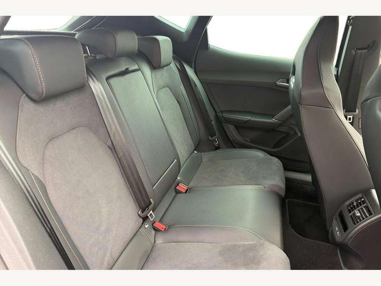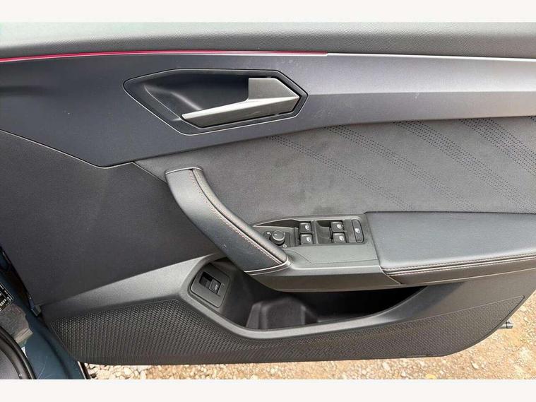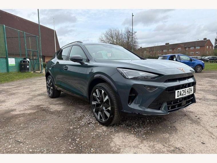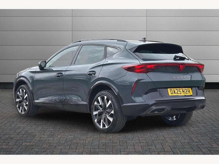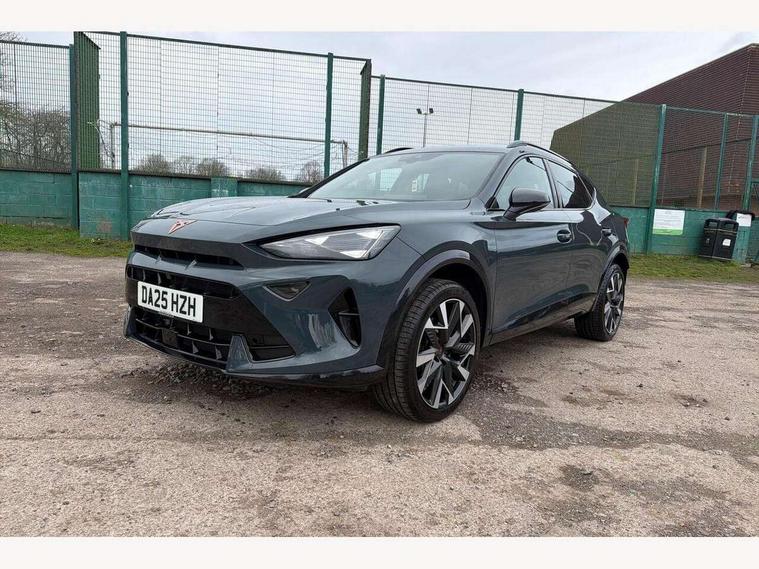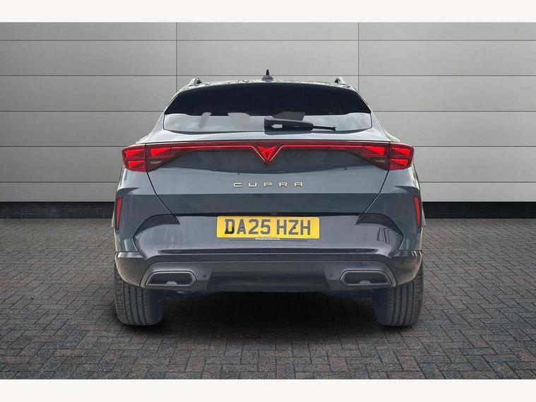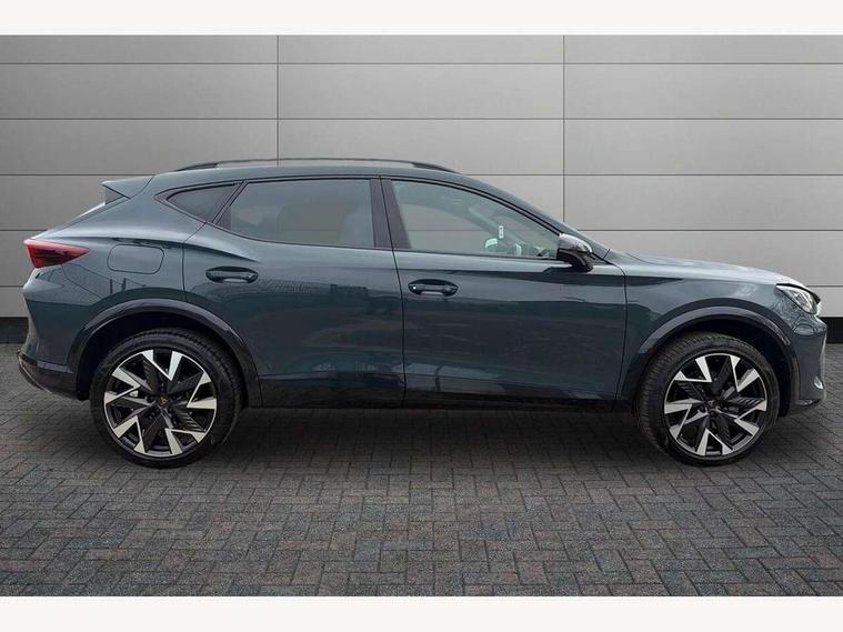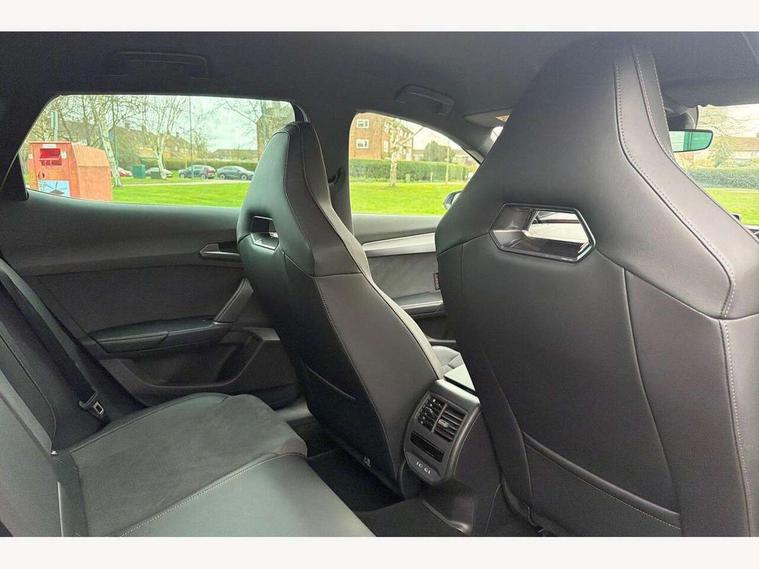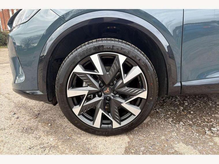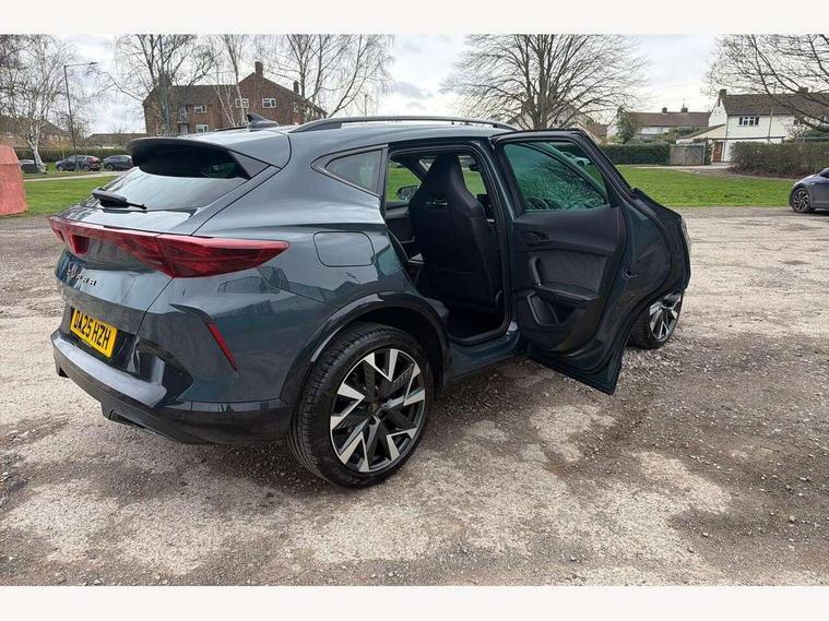 10.25" digital cockpit and configurable dashboard, Adaptive cruise control with follow-to-stop and speed limiter, Advanced driver alert system, Driving profile selection, Dynamic road sign display, Emergency steering support with turn assist, Forward collision warning with automatic braking, Front and rear parking sensors, Full link phone integration, Lane assist, Progressive steering, Rear view camera, RPM, trip computer, outside temp gauge, instrument light brightness, low fuel warning light, lights on reminder, gearshift indicator, Service interval indicator, Start/stop system with regenerative braking, Virtual pedal and electric tailgate, Voice control system, Wired Android Auto, Wireless apple carplay, Wireless phone charger, CUPRA sport suspension, Electronic locking differential and dynamic traction support, 2 front and 2 rear USB type C sockets, Media system with navigation, 12.9" touchscreen display, voice control, DAB, steering wheel mounted controls, Auto dimming rear view mirror, Body colour door handles, Body coloured bumpers, Dark grey wing mirror, Daytime running light with automatic headlight control and coming home feature, Door panel ambient lighting, Dynamic headlight range control, Electric front/rear windows, Electrically adjustable heated and folding door mirrors with memory function, Gloss black roof rails and window surrounds, High beam assist, LED 3rd brake light, LED front fog lamps with cornering function, LED Headlights, LED Taillights with dynamic indicator, Rain sensing wipers, Rear diffuser with black simulated exhaust pipes, Rear fog lights, Rear side wing doors, Rear wash/wipe, Tinted rear windows, Welcome lights (within exterior mirror housing), 12V socket, 2 front and 2 rear reading lights, 3 seat bench in 2nd row, 60/40 split rear bench seat with armrest and mechanical seat release, Black headlining, Black interior roof lining, Cupra sports pedals, Dust/pollen filter, Electrically adjustable driver's seat with memory and lumbar support, Front and rear head restraints, Front centre armrest, Heated front seats, Heated supersports multifunction leather steering wheel with satellite buttons and gear shift paddles, Height/reach adjust steering wheel, Illuminated aluminium doorsteps, Illuminated interior front door sills, Illuminated sunvisor with mirror, Isofix, Leather dashboard, door insert and side trim panel, LED smart wraparound lighting, PVC/Dinamica microfiber upholstery + bucket seats, Satellite steering wheel, Single front passenger seat, Storage pockets on rear of front seats, Three zone climate control with control panel in rear, Variable luggage/load compartment floor, 3 point seatbelts on all rear seats, ABS, Brake control system - ESC and brake booster, Child proof door locks, Driver and front passenger airbags with front passenger airbag de-activation, Electronic parking brake, Front and rear disc brakes, Front side curtain airbags, Hill hold control, Public e-call, Seat belt reminder for front and rear seats, Tyre pressure monitoring system, Anti theft alarm system, KESSY Advanced - Keyless start, keyless entry with SAFELOCK, Locking wheel bolts, Copper and aluminium interior detailing, 19" Sandstorm machined sport black and silver alloy wheels,