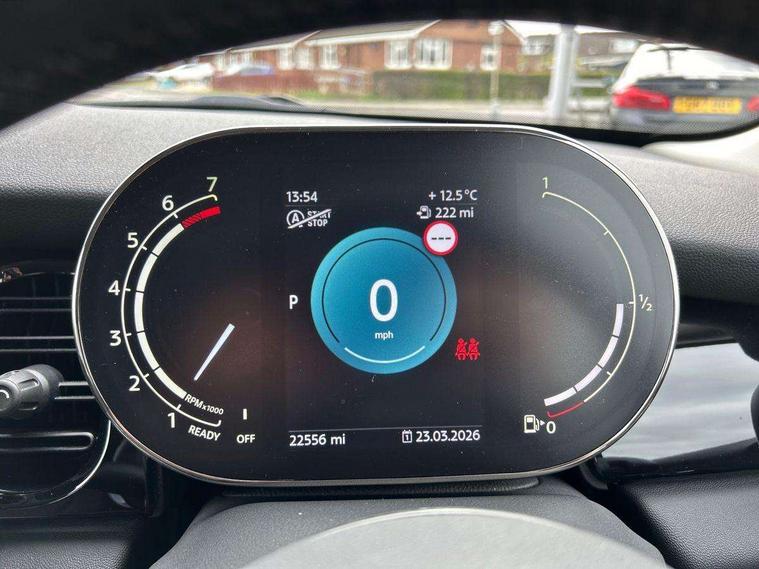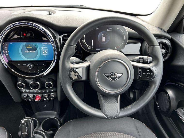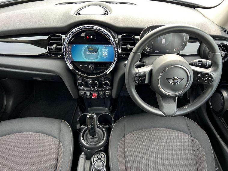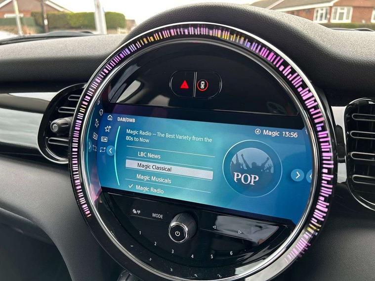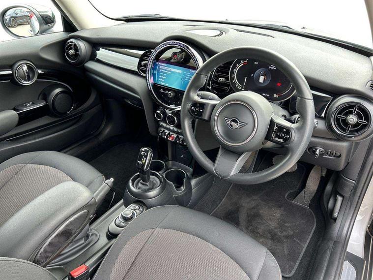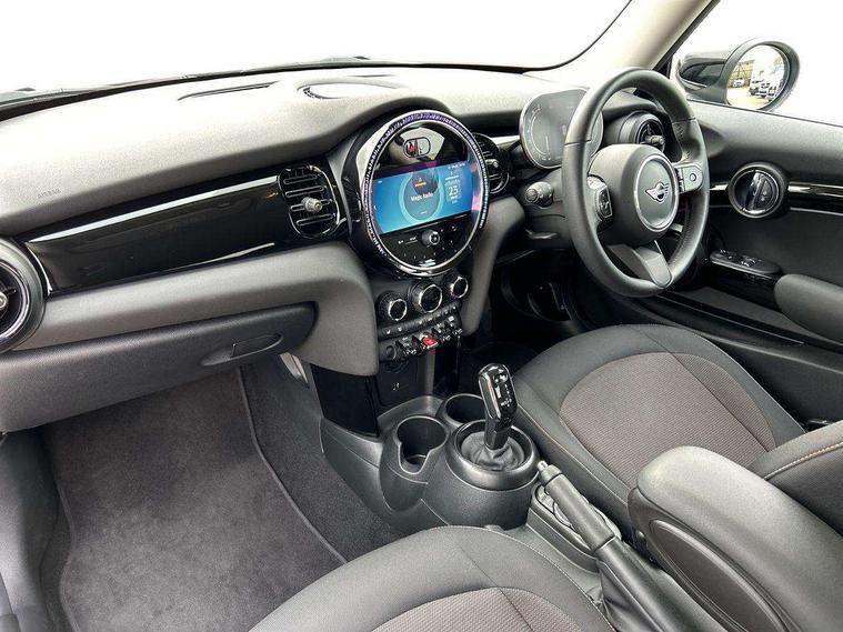 Apple CarPlay, Automatic start/stop function with brake energy recuperation, Compatible mobile phone bluetooth with audio streaming, Cruise control with brake assist, Electro-mechanical speed dependant steering assistance, Flexible car sharing preparation, Instrument cluster, Mini E-call, MINI TeleServices, On board computer, Service interval indicator, Double Vanos system, Fully variable valve control, High precision injection, Performance Control, Steptronic transmission with double clutch, 8.8" touchscreen with LED ring, FM tuner and DAB digital radio, 3rd brake light, Automatic headlight activation switch, Body colour fuel filler cap, Chrome border high gloss black slats radiator grille, Dynamic brake lights, Electric front windows, Exhaust tailpipe on left with chrome finisher, Heated rear window, Heated windscreen washer jets, LED headlight with closed ring and daytime driving lights, Metal door sill strips with MINI imprint, Model logo Cooper on right of tailgate, Rain sensor window wipers, Rear fog lights, Rear LED lights with union jack design, Rear window wiper, Side scuttle panel with integrated indicator, Sun/heat protection glass, White indicator lenses, 12V Accessory socket in centre console, 2 seat bench in 2nd row, 4 lashing eyes in luggage compartment, 60/40 split folding rear seat, Ambient lighting, Carbon black colour line - Knee roll and door armrest, Chrome interior highlights, Cupholders, Front and rear head restraints, Front and rear isofix with front passenger airbag deactivation, Front floor mats in velour, Glove compartment, Height and length steering column adjustment, Interior lighting with 12 different colours across the dashboard, underneath door bezel with illuminated laser-engraved design on central display, Leatherette gearshift lever and handbrake gaiters, LED reading lights, vanity mirror lights, front foot well light and spotlight on front seats, Manual air conditioning, Mechanical seat adjustment - forward/back & backrest for front seats and driver seat height adjust, Multifunction steering wheel, Passenger seat height adjuster, Satellite grey headlining including grab handles and clothes hooks, Single front passenger seat, Sport leather steering wheel with speed limiter and audio/communication controls, Storage compartments in doors, Sunvisors with vanity mirrors, Tool kit, 3 point seatbelts on all four seats, 6 Airbags - front, side, head and seat belt tensioners, Anti-lock braking system (ABS), DSC - Dynamic Stability Control, Front and rear disc brakes, Single tone fanfare horn, Tyre pressure monitoring system, Alarm system with tilt sensor, monitoring doors, bonnet interior and tailgate, Electronic vehicle immobiliser, Start/stop toggle with keyless go, Piano black interior trim, Tyre repair kit,