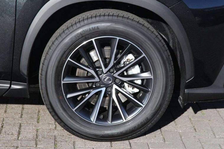 7" colour multi information display, 7" display in instrument binnacle, Blind spot monitoring with rear cross traffic alert, Bluetooth telephone connectivity, Digital speedometer, Drive mode select (Eco, Normal, Sport), Driver monitor camera, eCall emergency system, Electric speed sensitive power steering, Emergency driving stop system, Emergency steering assist, Front cyclist detection, Front motorcycle rider detection daytime, Intelligent parking sensors - 4 front and 4 rear with object and pedestrain detection, Intersection turn assist, Lane change flasher function, Lexus link connect - Cloud based navigation, cloud based voice assistant, always online and 9.8" VGA touchscreen, Parking assist monitor with on screen guard, Pre-crash system, Proactive driving assist (PDA), Push button starter, Reversing camera with back guidelines, Road sign linked speed limiter, Service interval indicator, Tailgate, Tailgate electric lift and close, Tailgate height memory function, Trip meter, Variable ratio rack steering, Wireless Apple CarPlay/Android Auto, Wireless Smartphone charger, 5m mode 3 charging cable, 6.6 kW onboard charger, All Wheel Drive (AWD), Hybrid automatic transmission, Key cylinder protector, Predictive efficient drive, Standard suspension, Vehicle Dynamics Integrated Management (VDIM), Vehicle Stability Control (VSC), 10 speakers, 3 USB Type-C charging ports, DAB Digital radio, Acoustic glass (front side and windshield glass), Active brake lights, Auto dimming interior rear view mirror, Auto levelling headlights, Automatic headlights, Automatic rear flashing hazard lights, Black roof, Body coloured door handles, Body coloured door mirrors, Body coloured roof spoiler, Double hidden exhaust pipes, Electrically adjustable door mirrors, Electrochromatic driver's door mirror, Front and rear one touch power windows, with anti-jam protection, Halogen front indicator lights, Heated and auto folding door mirrors, Hidden exhaust in rear bumper, LED brake lights and rear lights with emergency brake signal, LED daytime running lights, LED front fog lights, LED rear fog lights, Muffler, Optical rear view mirror, Power back door with kick sensor, Privacy glass, Puddle lights, Radiator grille, Rain sensor windscreen wipers, Rear side wing doors, Rear wiper, Roof rails, Shark fin antenna, Silver roof rails, Single bulb LED headlights with auto high beam, Stainless steel scuff plates with LEXUS name, Ultra Violet (UV) and heat insulating tinted glass, 12V accessory port centre console and luggage compartment, 12V socket in front and boot, 12V socket in rear, 2 cupholders in front centre console, 2 way electrical lumbar adjustment for driver, 2 way manually adjustable front headrests, 2 way manually adjustable rear headrests, 2 x fixed shopping bag hooks in boot, 2 x sun visors with vanity mirror and lamp, 3 seat bench in 2nd row, 3 spoke leather trimmed steering wheel, 4 x tie down hooks in the boot, 60/40 split folding rear seat, 8 way driver/passenger electrically adjustable front seats, Adjustable rear seat backrest, Ambient light in 64 colours, Automatic air circulation control, Card holder installed in driver and passengers sun visors, Centre armrest with storage box, Chrome side windows frame moulding, Dual climate control air conditioning system, Electric adjustable steering column, Electronic climate control with nanoeTM, Front and rear textile carpet mats, Front passenger seat, Glove box with key, Heated front seats, Heated steering wheel, Illuminated entry system, LED boot light, LED Glovebox light, LED interior illumination, Luggage cover manually folding, Overhead front console sunglasses holder, Paddle shifts, Rear centre armrest with 2 cupholders, S-Flow technology for climate control, Steering wheel easy entry and exit function, Tahara leather upholstery, Tahara trimmed gearshift knob, USB port (Type - A) front centre console, Whiplash Injury Lessening (WIL) feature (active headrest) for seats, 18" front disc brake, 3 point ELR front seatbelts with pretensioners, 3x3 point rear seat belts, ABS, Acoustic vehicle alerting system, Adjustable seat belt anchor points, Driver 2 stage airbag, Driver/front passenger side airbags, Drivers knee airbag, E-Latch with safe exit assist, EBD + Brake Assist, ECB (Electronically Controlled Brake System), Electronic parking brake, Front and rear curtain shield airbags, Front center airbag, Front passenger seat cushion airbag, Front passenger single stage airbag, Hill assist control, Lexus safety system - dynamic radar cruise control, pre collision system day and night, lane tracing assist, road sign, automatic high beam, OTA, Manual rear child locks, Outer rear seatbelt pretensioners, Passenger airbag cut-off device, Rear wheel brake - 17inch discs, Safety kit, Traction control, Tyre pressure warning with auto location, Anti-theft system with alarm, intrusion sensor, glass breakage sensor, tilt sensor and engine immobiliser, Double door lock, Locking wheel nuts, Smart entry ( front/rear/boot), Smart key, Speed sensitive auto door locking, Ultra Wide Band (UWB) Anti-theft system, VIN Window etching, Wireless door lock, 3D prism black Inlay, Organic inlay, Resin moulding wheel arches, Tyre repair kit,