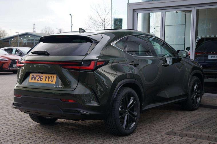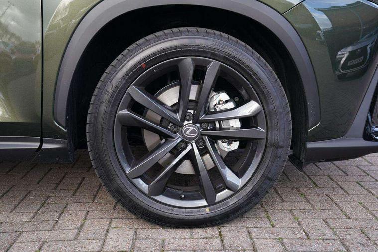 360 degree panoramic view monitor, 7" colour multi information display, 7" display in instrument binnacle, Blind spot monitoring with rear cross traffic alert, Bluetooth telephone connectivity, Digital speedometer, Drive mode select (Eco, Normal, Sport), Driver monitor camera, eCall emergency system, Electric speed sensitive power steering, Emergency driving stop system, Emergency steering assist, Front cyclist detection, Front motorcycle rider detection daytime, Head up Display, Intelligent parking sensors - 4 front and 4 rear with object and pedestrain detection, Intersection turn assist, Lane change flasher function, Lexus link connect - Cloud based navigation, cloud based voice assistant, always online, 14" HD touchscreen, embedded nav and faster CPU, Pre-crash system, Proactive driving assist (PDA), Push button starter, Reversing camera with back guidelines, Road sign linked speed limiter, Service interval indicator, Tailgate, Tailgate electric lift and close, Tailgate height memory function, Tazuna cockpit with 7" improved meters display, 10" HUD and capacitive touch steering wheel switches, Trip meter, Variable ratio rack steering, Wireless Apple CarPlay/Android Auto, Wireless Smartphone charger, 5m mode 3 charging cable, 6.6 kW onboard charger, All Wheel Drive (AWD), Hybrid automatic transmission, Key cylinder protector, Predictive efficient drive, Standard suspension, Vehicle Dynamics Integrated Management (VDIM), Vehicle Stability Control (VSC), 10 speakers, 3 USB Type-C charging ports, DAB Digital radio, 4 eye LED headlight with adaptive high beam, Acoustic glass (front side and windshield glass), Active brake lights, Auto dimming interior rear view mirror, Auto levelling headlights, Automatic headlights, Automatic rear flashing hazard lights, Black roof, Body coloured door handles, Body coloured door mirrors, Body coloured roof spoiler, Double hidden exhaust pipes, Electrically adjustable door mirrors, Electrochromatic driver's door mirror, Front and rear one touch power windows, with anti-jam protection, Heated and auto folding door mirrors, Hidden exhaust in rear bumper, LED brake lights and rear lights with emergency brake signal, LED cornering lights, LED daytime running lights, LED front fog lights, LED front indicators, LED rear fog lights, Muffler, Optical rear view mirror, Power back door with kick sensor, Privacy glass, Puddle lights, Radiator grille, Rain sensor windscreen wipers, Rear side wing doors, Rear wiper, Roof rails, Shark fin antenna, Silver roof rails, Stainless steel scuff plates with LEXUS name, Ultra Violet (UV) and heat insulating tinted glass, 12V accessory port centre console and luggage compartment, 12V socket in front and boot, 12V socket in rear, 2 cupholders in front centre console, 2 way manually adjustable front headrests, 2 way manually adjustable rear headrests, 2 x fixed shopping bag hooks in boot, 2 x sun visors with vanity mirror and lamp, 3 seat bench in 2nd row, 3 spoke leather trimmed steering wheel, 4 way electrical lumbar adjustment for driver, 4 x tie down hooks in the boot, 60/40 split folding rear seat, Adjustable rear seat backrest, Automatic air circulation control, Card holder installed in driver and passengers sun visors, Centre armrest with storage box, Chrome side windows frame moulding, Driver seat easy entry and exit function, Driver seat memory function, Driving position memory for 3 users (seat, steering wheel & door mirrors), Dual zone climate control air conditioning system with humidity sensor, Electric adjustable steering column, Electronic climate control with nanoeTM, Front and rear textile carpet mats, Front passenger seat, Glove box with key, Heated and ventilated front seats, Heated rear seats, Heated steering wheel, Illuminated entry system, Leather gearshift, LED ambient lighting, LED boot light, LED Glovebox light, LED interior illumination, Lexus climate concierge, Luggage cover manually folding, Overhead front console sunglasses holder, Paddle shifts, Rear centre armrest with 2 cupholders, S-Flow technology for climate control, Smooth leather upholstery, Steering wheel easy entry and exit function, Steering wheel mounted customizable touch control, USB port (Type - A) front centre console, Whiplash Injury Lessening (WIL) feature (active headrest) for seats, 18" front disc brake, 3 point ELR front seatbelts with pretensioners, 3x3 point rear seat belts, ABS, Acoustic vehicle alerting system, Adjustable seat belt anchor points, Driver 2 stage airbag, Driver/front passenger side airbags, Drivers knee airbag, E-Latch with safe exit assist, EBD + Brake Assist, ECB (Electronically Controlled Brake System), Electronic parking brake, Front and rear curtain shield airbags, Front center airbag, Front passenger seat cushion airbag, Front passenger single stage airbag, Hill assist control, Lexus safety system - dynamic radar cruise control, pre collision system day and night, lane tracing assist, road sign, automatic high beam, OTA, Manual rear child locks, Outer rear seatbelt pretensioners, Passenger airbag cut-off device, Rear wheel brake - 17inch discs, Safety kit, Traction control, Tyre pressure warning with auto location, Anti-theft system with alarm, intrusion sensor, glass breakage sensor, tilt sensor and engine immobiliser, Double door lock, Locking wheel nuts, Smart entry ( front/rear/boot), Smart key, Speed sensitive auto door locking, Ultra Wide Band (UWB) Anti-theft system, VIN Window etching, Wireless door lock, 3D prism black Inlay, Organic inlay, Extended mobility tyres, Resin moulding wheel arches, Run flat tyres,