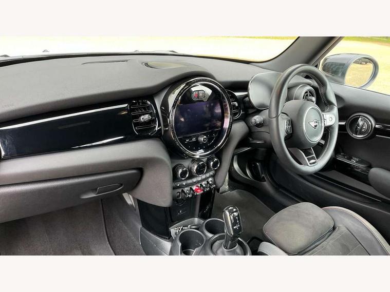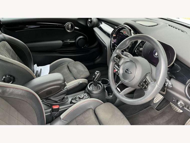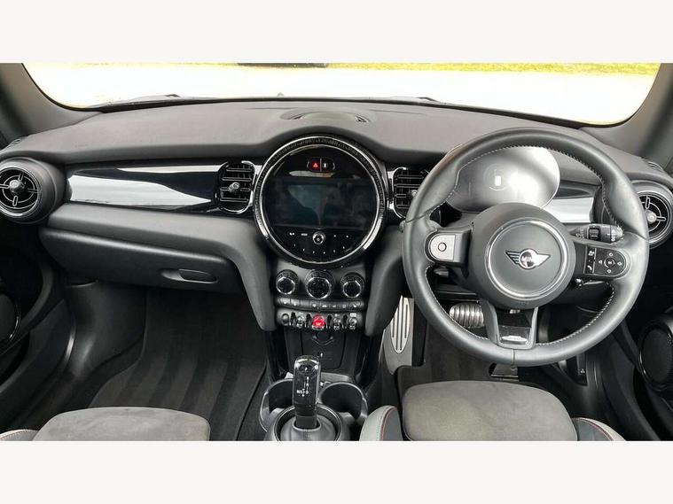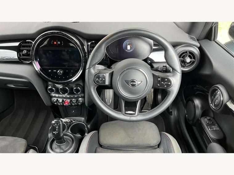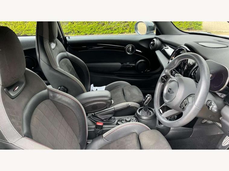 Apple CarPlay, Automatic start/stop function with brake energy recuperation, Compatible mobile phone bluetooth with audio streaming, Cruise control with brake assist, Electro-mechanical speed dependant steering assistance, Flexible car sharing preparation, Instrument cluster, MINI Driving Modes - centre toggle switch to control driving setting (sport, mid and green), Mini E-call, MINI TeleServices, On board computer, Rear park distance control, Service interval indicator, Double Vanos system, Fully variable valve control, High precision injection, Intelligent adaptive suspension, Performance Control, Steptronic transmission with double clutch, 8.8" touchscreen with LED ring, FM tuner and DAB digital radio, 3rd brake light, Automatic headlight activation switch, Body colour fuel filler cap, Chrome border high gloss black slats radiator grille, Dynamic brake lights, Electric front windows, Exhaust tailpipe on left with chrome finisher, Heated rear window, Heated windscreen washer jets, JCW Aerodynamic kit - Front and rear bumpers with sporty JCW styling and part-painted side sills with MINI John Cooper Works door sill finishers, John Cooper Works rear spoiler, LED headlight with closed ring and daytime driving lights, Metal door sill strips with MINI imprint, Model logo Cooper on right of tailgate, Rain sensor window wipers, Rear fog lights, Rear LED lights with union jack design, Rear window wiper, Side scuttle panel with integrated indicator, Sun/heat protection glass, White indicator lenses, 12V Accessory socket in centre console, 2 seat bench in 2nd row, 4 lashing eyes in luggage compartment, 60/40 split folding rear seat, Anthracite headliner including grab handles and clothes hooks, Carbon black colour line - Knee roll and door armrest, Chrome interior highlights, Cupholders, Front and rear isofix with front passenger airbag deactivation, Front floor mats in velour, Glove compartment, Height and length steering column adjustment, Interior lighting with 12 different colours across the dashboard, underneath door bezel with illuminated laser-engraved design on central display, JCW Sport seats with integrated headrests, adjustable thigh support and John Cooper Works logo, Leatherette gearshift lever and handbrake gaiters, LED reading lights, vanity mirror lights, front foot well light and spotlight on front seats, Manual air conditioning, Mechanical seat adjustment - forward/back & backrest for front seats and driver seat height adjust, Multifunction steering wheel, Passenger seat height adjuster, Single front passenger seat, Storage compartments in doors, Sunvisors with vanity mirrors, Tool kit, Walknappa leather steering wheel with grey seam and John Cooper Works badge on Piano Black lower steering wheel spoke, Navigation pack without Apple Carplay - Mini Hatchback, Piano black exterior pack - Mini Hatchback Cooper, 3 point seatbelts on all four seats, 6 Airbags - front, side, head and seat belt tensioners, Anti-lock braking system (ABS), DSC - Dynamic Stability Control, Front and rear disc brakes, Single tone fanfare horn, Tyre pressure monitoring system, Alarm system with tilt sensor, monitoring doors, bonnet interior and tailgate, Electronic vehicle immobiliser, Start/stop toggle with keyless go, Piano black interior trim,