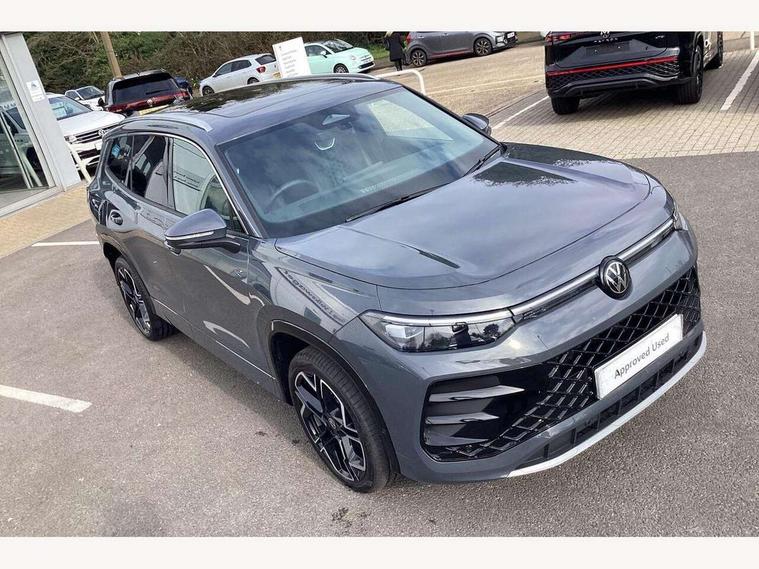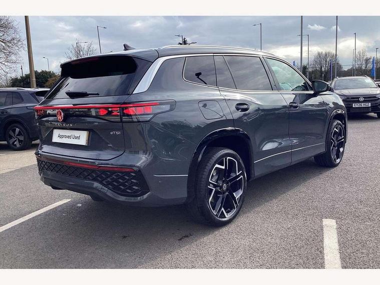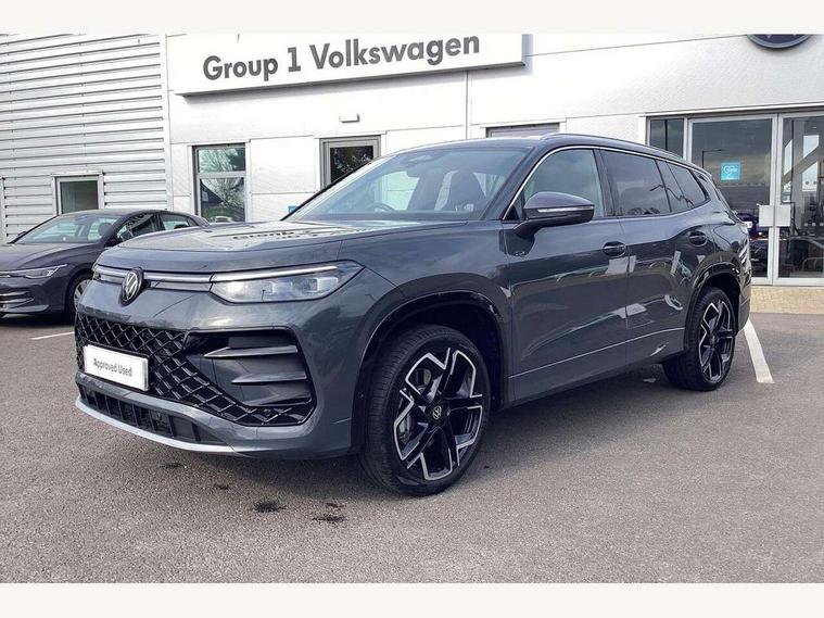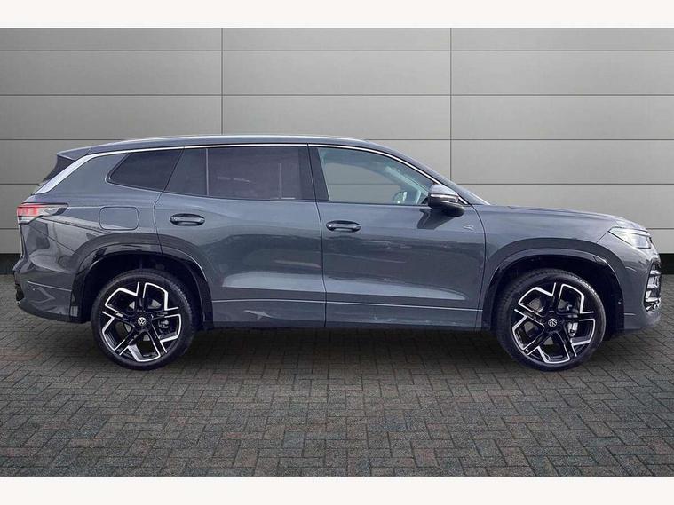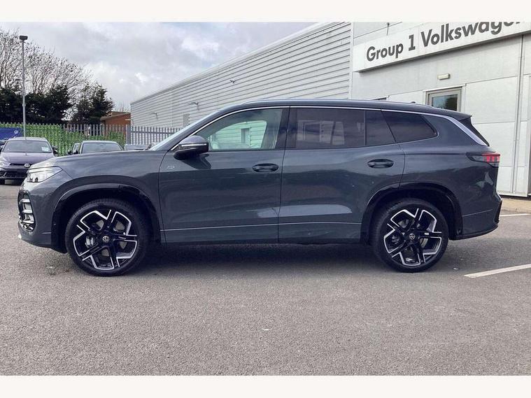 Adaptive cruise control (ACC), Digital Cockpit Pro - 10.25" high resolution dash display screen with customisable menus and information, Driver alert system, Driver attention monitoring system, Driving profile selection, Dynamic road sign display, E-Sim card for online connectivity, Easy Open and Close Electric tailgate with virtual pedal activation, eCall emergency call system, IDA voice assistance with ChatGPT, Lane change system, Side assist, Rear traffic alert and Exit warning system, Lane keeping system, Multifunction front facing camera, Navigation system, Oncoming vehicle braking when turning including swerve support, Park assist plus with park distance control, Power assisted steering with speed sensitive, Sports steering system, Start/stop system with regenerative braking, Voice activation spoken voice commands for telephone and navigation system, Warning signal and warning light for front and rear seatbelts not fastened, Wireless App-Connect, Front shock absorption G01, Front wheel drive, 12.9" infotainment display, Digital radio reception (DAB), Diversity antenna for FM reception, Air intake with Chrome trim, Auto dimming interior rear view mirror, Automatic headlight control system, Body colour door handles, Chrome moldings on the side windows, Coming/leaving home lighting function, Dynamic headlight range control with dynamic cornering light, Exterior mirrors convex on the left and aspherical on the right, Heat insulating glass in side and rear windows, High Beam Assist, automatic sensing for switching between dipped and main beam, Illuminated Volkswagen logo in front and rear, Laminated safety glass windshield, heat insulating, LED 3rd brake light, LED headlamps, LED separate signature day time running light, Poor weather light, Puddle lights, Rain sensor windscreen wipers, Rear combination lamps with special signal pattern, Rear fog light on one side, reversing light on both sides, Rear side wing doors, Rear wiper, Reverse activated passenger's door mirror, Sound insulating laminated safety glass from B-pillar backwards 90% tinted, Surround lighting with welcome light, Volkswagen logo in front, illuminated lighting animation with wake up/goodbye scenario and illuminated door handles, 12V outlet in center console rear and in luggage compartment, 12V socket in centre console, 2 USB-C ports in the front, 2 USB-C charging sockets on the centre console in rear, charging capacity up to 45 W, 230V socket in luggage compartment, 3 rear headrests, 3 rear seat bench in 2nd row, backrest split folding with centre armrest and 2 seats in 3rd row of seats, 3 zone air care climatronic with rear air conditioning control panel, 30 colours options interior ambient lighting, Art velours cloth upholstery, Black roof lining, Brushed stainless steel pedals, Carpet mats, front and rear, Centre console with illuminated storage compartment with sliding cover and two drinks holders, Chrome elements on the mirror switch and power window switches and door pulls, Door and side trim panel insert in Art velour, Drivers seat with manual adjustment of seat travel and height and backrest angle with thigh support longitudinally sliding, Flat luggage compartment floor, Front centre armrest, Front massage seats, Front scuff plates in aluminium, Inductive smartphone charging, ISOFIX anchors for child seats on outer rear seats and front passenger seat compatible with i-Size, Leather wrapped multifunction heated steering wheel with paddle shift, Manual height adjustable front passenger seat, Mechanical rear seat release, Power adjustable lumbar support in front, Safety optimised front integrated head restraints, Single front passenger seat, Sports comfort seats in front, Sun visors with illuminated vanity mirrors, Touch control steering wheel, 3 Point seat belts in front with pretensioners, 3 point seatbelts in outer rear with ECE label, Autonomous emergency braking front assist with pedestrian and cyclist monitoring, Driver and front passenger airbag with front passenger airbag deactivation, Electronic parking brake with auto hold, First aid kit with warning triangle and safety vest, Front and rear curtain airbags, Front and rear side airbags, Front centre airbag, Hill start assist, Manual rear child locks, Proactive passenger protection system, Two tone horn, Tyre pressure monitoring system, Alarm with interior protection, Central locking system keyless entry, Decorative material set R-Line, Interior door handle in matte chrome,
