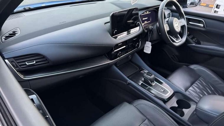 Blind spot warning, Drive modes (sport, normal, eco), Electric speed sensitive power steering, Emergency and breakdown call, Front and rear parking sensors, Full Digital 12.3" TFT Digital Combimeter, Hands free power tailgate, Idle stop/start system, Intelligent Cruise control (ICC), Intelligent driver alert system, Intelligent forward collision warning, Intelligent lane intervention, Lane departure prevention, Lane departure warning system, Moving object detection, Push button starter, Rear cross traffic alert, Traffic sign recognition with legal speed adjustment, Trip computer, 10 Bose speakers - 2 tweeters, 6 high and medium frequency door speakers and 2 in subwoofer, AM/FM audio system with DAB, Bluetooth audio streaming, Bose acoustimass bass box, Digital amplifier, Front USB connections (Type-A and Type-C), Rear USB charging only ports (Type-A and Type-C), Auto dimming rear view mirror, Auto rear wiper when reversing, Body colour mirror caps, Body coloured door handles, Bodyside mouldings, Chrome side window finisher, Door mirror memory, Electric auto folding door mirrors, Electrically adjustable and heated door mirrors with LED turn indicator, Fixed panoramic glass roof with electric sunshade, Follow me home headlights, Intelligent auto headlights, LED daytime running lights, LED signature rear lights, One touch front and rear electric windows with remote opening and closing, Privacy glass, Rear roof spoiler, Rear styling plate, Reverse tilting door mirrors, Roof rails, Shark fin antenna, Splash free rain sensing wipers, Super UV and infrared cut glass, Three blink turn signal, 12v power socket in dashboard and luggage, 2x Rear coat hooks, 3 rear headrests, 4 grab handles, 6 Luggage hooks - 4 on floor, 2 on side, 60/40 split folding rear seat, 8 way electric adjustable driver seat with massage and memory function, 8 way electric adjustable passenger seat with massage and memory function, Ambient lighting around centre console, Ambient lighting in front doors, Centre console storage tray, Chrome interior door handles, Dark headlining, Driver and front passenger sunvisors with illuminated vanity mirrors, Driver seat back pocket, Dual zone automatic climate control with pollen filter, Electric 4-way lumbar support for drivers seat, Electric adjustable 4 way lumbar support for passenger seat, Front centre console and armrest, Front cupholder, Front door with bottle holders, Glovebox with light, Hard trunk cover, Height adjustable front headrests, Leather steering wheel, Luggage board system, Luggage space lighting, Multifunction steering wheel, Passenger seat back pocket, Quilted premium leather upholstery, Rear armrest with 2 cupholders, Rear door bottle holders, Soft PVC kneepad, Steering wheel gearshift paddles, Steering wheel switches, Tilt/telescopic adjustable steering wheel, Two rear isofix child seat anchorage points with top tether, Welcome light and doors with console tray ambient lighting, Connectivity Pack - Qashqai, Heat pack - Qashqai, Tech Pack (ProPILOT + HUD), 3x3 point rear seatbelt pretensioners + load limiters, ABS, ESP, EBD and brake assist, Active brake limited slip, Auto hold function, Child locks on rear doors, Curtain and front side, far side airbags, Driver and passenger airbags, Driver, passenger and 2nd row rear seat belt reminder, Electronic parking brake, Front seatbelt pretensioners + load limiters, Height adjustable front seatbelts, Hill start assist, Intelligent blind spot intervention, Intelligent front emergency braking with pedestrian, cyclist recognition and junction assist, Intelligent rear automatic braking, Tyre pressure monitoring system, Vehicle dynamic control, Advance intelligent key with driver memory storage (seats, mirrors, audio), Engine immobiliser, Remote central door locking with deadlocking, Thatcham Cat.1 alarm, 20" Alloy wheels,