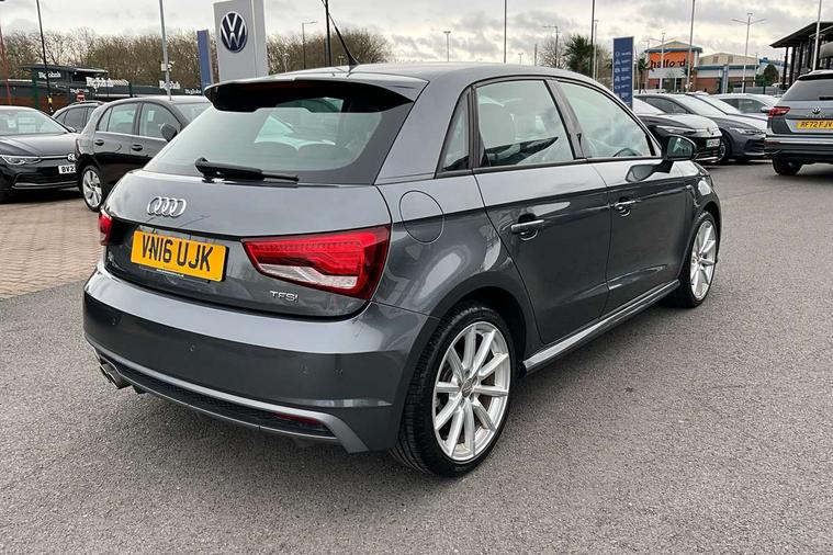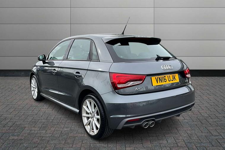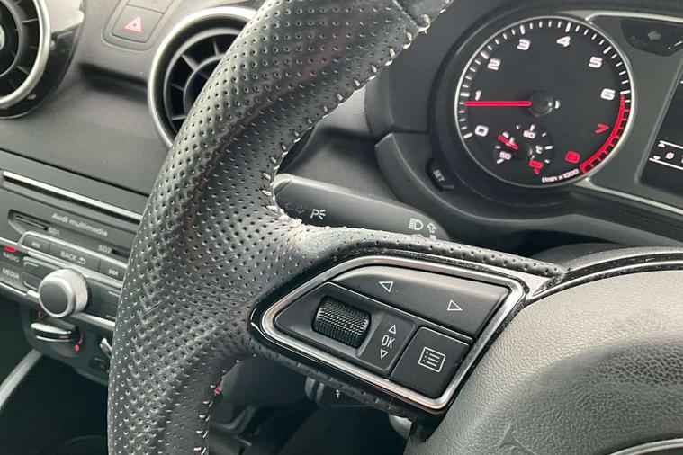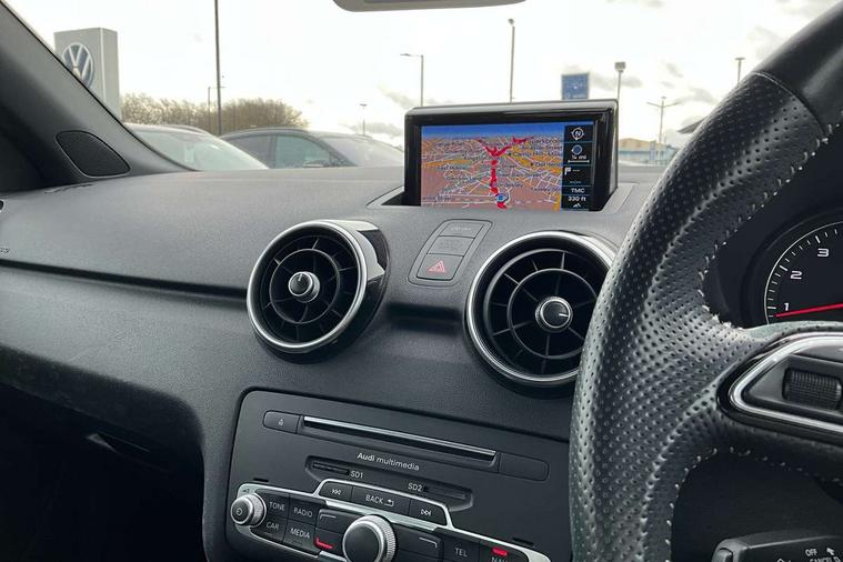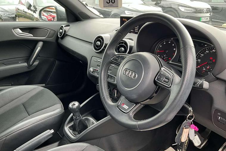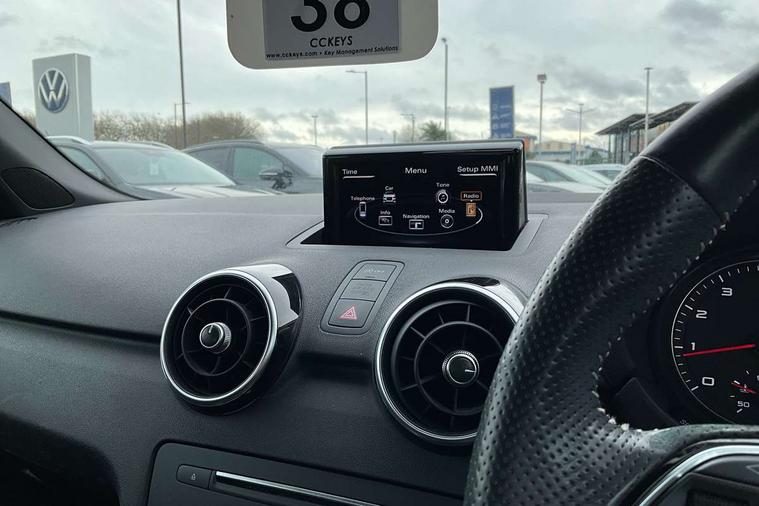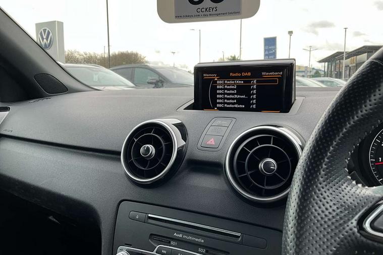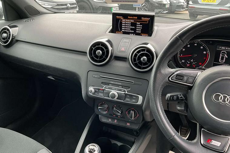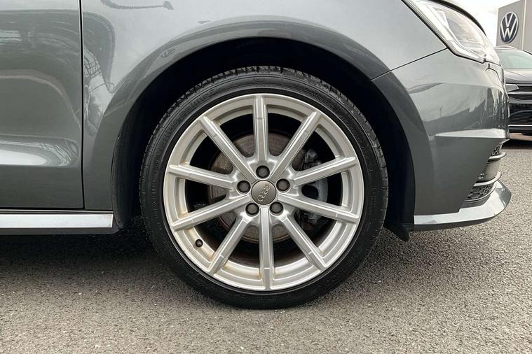 Audi drive select, Electro-mechanical PAS, Low washer fluid indicator, Service interval indicator, Voice control system, Additional SD card reader, Audi music interface, Bluetooth audio streaming, DAB Digital radio, Adaptive brake lights, Electric adjustable door mirrors, Electric front windows, Electric rear windows, Front fog lights, Heat insulating glass, Heated door mirrors, Heated rear windscreen, Rear diffuser, Rear wiper, S Line body styling, Xenon plus headlights including automatic headlights, LED daytime running lights, LED rear lights, dynamic range control and headlight washers, 12V Accessory socket in centre console, Adjustable rear head restraints, Black cloth headlining, Cupholders in centre console, Door sills trims with aluminium inlays, Front floor mats, Front head restraints, Height adjustable front seats, Illuminated glovebox, Isofix attachments on outer rear seats, Jack and tool kit, Leather handbrake, Lumbar adjustment for front seats, Rake/reach adjustable steering wheel, Split folding rear seats, ABS/EBD, Brake assist function, Driver and passenger side airbags, Driver/Front Passenger airbags, EDL, ESP with ASR, First aid kit, Front and rear seatbelt reminder, Front passenger airbag deactivation, Head airbags, Height adjustable front seatbelts, Tyre pressure monitor, Warning triangle, Locking wheel bolts, Remote control central locking, Thatcham category 1 alarm + immobiliser, Tyre repair kit,