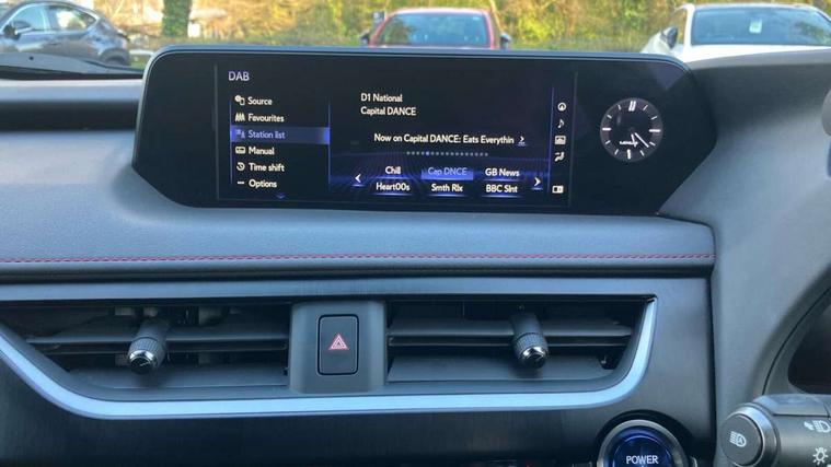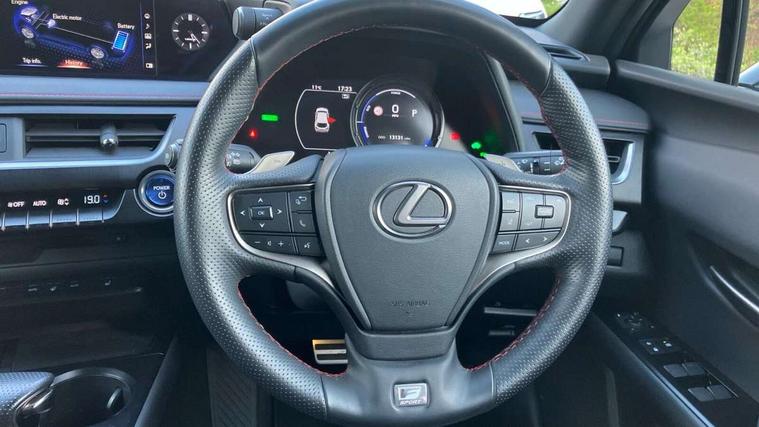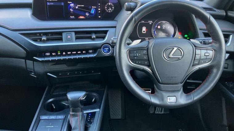 4 driving modes EV/Eco/Normal/Sport, 7" Lexus media display, 8" LFA inspired TFT meters with movable meter ring, Analogue clock with GPS function, Apple car play/Android Auto, Compatible mobile phone bluetooth with audio streaming, E-call, Electric power steering (EPS) with speed sensitive features, Front and rear parking sensor with intelligent clearance sonar, Lane change flasher function, Lexus link connected services, Lexus navigation system, Lexus safety systems + includes dynamic radar cruise control, pre collision system day and night, lane tracing assist, road sign assist, Push button start, Remote touch interface, Reversing camera with back guide lines, Trip computer, F Sport suspension tuning and rear performance dampers, Vehicle Dynamics Integrated Management (VDIM), Vehicle Stability Control (VSC), 2 front USB and 2 rear USB charging points, 6 speakers, AM/FM and DAB radio, AUX socket with VTR compatibility, CD player, Acoustic windscreen, Aero stabilising arch mouldings, Aero stabilising rear lights, Aero ventilated wheels, Aluminium roof rails, Auto dimming interior rear view mirror, Bi-LED (low and high beam) headlights with Auto High Beam (AHB), Black roof drip mouldings, Body adhesive, laser screw welding and laser brazed roof structure, Body coloured bumpers, Colour coded wheel arches, Electric adjustable/heated door mirrors, F SPORT exterior styling consists of black Mesh front grille, enhanced side rockers, metallic coated front bumper and F SPORT badging, Front and rear one touch power windows, with anti-jam protection, Headlight cleaners, LED cornering headlights, LED daytime running lights, LED front and rear fog lights, LED tail lights, LED third brake light, Privacy glass, rear doors and tailgate, Rain sensor windscreen wipers, Rear side wing doors, Rear wiper, Shark fin roof aerial, Single hidden exhaust pipe, Towing preparation, Variable front intermittent wipers, 12V accessory port centre console and luggage compartment, 2 cup holders in the front and rear centre console, 2 way electrical lumbar adjustment for driver, 2 x folding shopping bag hooks in boot, 2 x sun visors with vanity mirror and lamp, 3 seat bench in 2nd row, 4 x tie down hooks in the boot, 5 headrests, 60/40 split folding rear seat, 8 way driver/passenger electrically adjustable front seats, Active sound control, Card holder installed in driver and passengers sun visors, Centre armrest with storage, Driver and passenger door pocket, Dual zone electronic climate control + Nano-E humidity sensor, F Sport aluminium sports pedals, F SPORT dimpled leather gear lever, F SPORT front seat headrest adjustable forwards and backwards, F Sport interior styling, F Sport leather steering wheel with paddle shifts, Fabric/Tahara leather upholstery, Glovebox, Heated steering wheel, Illuminated entry system, LED interior illumination, Map pockets in the rear of passenger's front seat, Rear air vents with 2 USB chargers, Rear armrest with 2 cupholders, Single front passenger seat, Storage tray under audio panel, Textile carpet mats, Tilt/reach adjustable steering column, Under deck storage, Under desk side storage, 2 x Isofix child rear seat restraints, 3x3 point rear seatbelts, Anti-lock braking system (ABS), BAS (Brake Assist System), Driver and front passenger 2 stage airbag, Driver and front passenger knee airbag, Driver/front passenger side airbags, EBD - Electronic brakeforce distribution, ECB (Electronically Controlled Brake System), Electric child locks, Electric parking brake, Front adjustable seatbelt anchor points, Front and rear curtain shield airbags, Front outer seatbelt+pre-tensioners, force limiter+tension reduction: 3-point with active safety link to PCS, Hill start assist control (HAC), Passenger airbag cut-off device, Rear outer seatbelt+pre-tensioners, force limiter+tension reduction: 3-point with active safety link to PCS, Centre belt w/o pre tensioner+force limiter, Secondary Collision Brake (SCB), TRC (Traction Control), Tyre pressure warning, 2 x remote key fobs, Anti theft system : Alarm instruction sensor, glass breakage sensor and engine immobiliser, Locking wheel nuts, Remote central door locking, Speed sensitive auto door locking, Two motion door lock with double lock, VIN Window etching, 18" F Sport alloy wheels with run flat tyres,