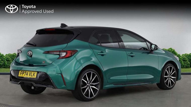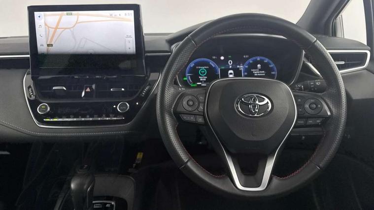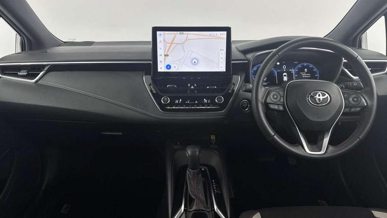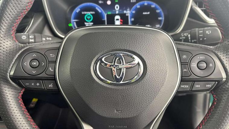 10.5" Multimedia display screen, Bluetooth telephone connectivity, Connected car functionality upgrade, tracker, remote status and e-care, Drive mode select (Eco, Normal), E-call, Electrically assisted power steering, EV drive indicator, Front and rear parking sensors with auto brake, Full Digital 12.3" TFT Digital Combimeter, Key reminder warning, Lane Departure Alert (LDA) switch on steering wheel, Memory on adjustable speed limiter, MyT connected services, Proactive driving assist (PDA), Reversing camera, Smart entry and push button start with GR Logo, Smartphone integration with Apple CarPlay and wired android auto, Tailgate, Toyota remote services, Toyota smart connect navigation, Wireless charger, Gasoline particulate filter, Vehicle Stability Control (VSC), 6 speakers, AM/FM radio, DAB Digital radio, Front USB-C in centre console, Front USB-C in dashboard, Smart voice assist/ Voice recognition, USB and Aux in connectors + 12V front outlet, Anti-jam protection on power windows, Auto up and down function on all power windows, Automatic folding mirrors, Automatic headlights with high beam assist, Black centre and side air vents, Black toyota logo in front, Body coloured bumpers, Body coloured door mirrors, Body coloured outside door handles, Dark chrome lower grille, Electrochromatic mirror, Follow me home headlights, GR Sport dark chrome front mesh grille and black rear grille, GR Sport exclusive under guard, GR sport scuff plates, LED daytime running lights, LED dual beam projector headlights, LED front fog lights, LED High mounted stop light, LED rear combi lights with LED lightguide, Manual headlight levelling system, New grille pattern, Noise reduction layer on windscreen, Piano black diffuser, Power adjustable heated door mirrors, Power front windows, Power rear windows, Privacy glass with UV filter, Rain sensing wipers, Rear side wing doors, Rear window defogger, Rear window wiper, Reverse tilting door mirrors, Rocker and door lower moulding, Roof spoiler, Satin chrome insert on front air vents, Satin chrome insert on front door assist grips, Satin silver front spoiler, Shark fin antenna, Tailgate release with push button, Time adjustment on intermittent wiper, Turning signal integrated indicators in door mirrors, Unique lower skirt, Unique side rocker with black insert, UV-filter on driver and passenger windows, 2 Shopping bag hooks in luggage compartment, 3 rear headrests, 3 seat bench in 2nd row, 3 spoke leather steering wheel with satin insert/red stitching + gear knob, 4 tie down hooks in luggage compartment, 60/40 split folding rear seat, Adaptive cruise control (ACC) switch on steering wheel, Adjustable speed limiter switch on steering wheel, Audio, multimedia and telephone switches on steering wheel, Black armrest on centre console box, Black gear shift console, Boot light, Centre room light, Driver and front passenger personal light, Driver and passenger assist grip, Driver and passenger seatback pockets, Driver and passenger sun visor with mirror and light, Dual zone automatic air conditioning with ECO mode switch, Fabric/synthetic leather upholstery, Front and rear cup and bottle holders, Front door pockets, Front head restraints, Front passenger seat, Front sliding synthetic leather armrest, GR Sports seats with partial leather bolsters, Heated seats, Illuminated entry system in room lamp, ISOFIX seat fixing (2 fixings on rear outer seats), Manual height adjustable for driver and front passenger seat, Manually tilt with sliding driver and front passenger seat, Nanoe-X air purifier, Parcel shelf, Pollen filter, Power window switches with satin chrome inserts, Rear armrest with 2 cupholders, Rear passenger coat hooks (2), Red stitching on gear shift, Remote air conditioning, Satin chrome inside door handles, Satin chrome surround on speedometer, Sliding armrest on centre console box, Slow opening glovebox with lights, Textile floor mats, Tilt/telescopic steering column, Voice recognition switch on steering wheel, Whiplash Injury Lessening (WIL) feature (active headrest) for seats, White ambient lighting on open tray and front cup holder, Toyota safety sense 3 pack - Corolla, 3x3 point rear seatbelts, Adjustable driver and front passenger seat belt extender to top anchor point, Anti lock braking system + Electronic brake force distribution, Brake assist function, Child locks on rear doors, Downhill Assist Control (DAC), Electronic parking brake, Emergency brake light signal (EBS), Front passenger airbag on/off switch, Front seatbelt reminder, HAC - Hill start assist control, Rear seat belt reminder, Seatbelt pretensioners and force limiters, Supplemental restraint system (SRS) 7 airbags - dual driver, dual side curtain, side impact and driver knee airbags, Traction control, Tyre pressure warning system, Acoustic vehicle alert system (AVAS), Alarm with motion sensor and immobilizer, Power passenger window lock, Remote central locking + deadlocks, GR Sport interior styling with accents and exterior styling, Satin chrome dash trim, Soft touch texture on upper dashboard, Stitching on lower dashboard, 18" Black machined face 10 spoke alloy wheels, Tyre repair kit, Unique wheel finish with red wheel cap,