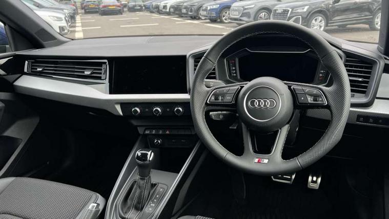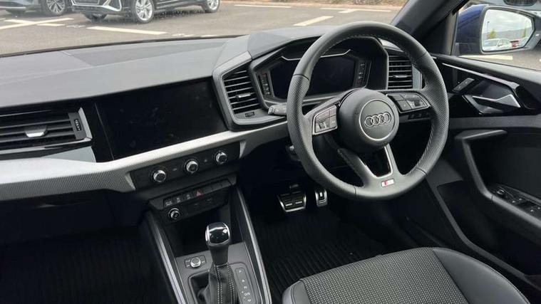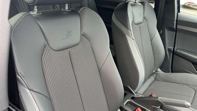 10.25" Digital instrument cluster display classis style instrument dials + speed, odometer, time, outside temperature, telephone menu + fuel level warning, Advanced driver attention and drowsiness monitor, Audi connect emergency call and service, Audi drive select, Audi remote connect and control, Bluetooth interface, Camera based traffic sign recognition, Cruise control, Driver's information system, Electromechanical power steering, Lane departure warning system, Rear parking sensor, Service interval indicator, Smartphone interface, Speed limiter, Start stop system with recuperation, Voice control system, Washer fluid level indicator, Sports suspension, 2 x USB type C connection points, 6 loudspeakers, DAB Digital radio, MMI radio plus with 10.1" colour MMI display screen and MMI touch, Auto dimming rear view mirror, Body coloured door mirrors, Door sill trims with aluminium inlays and S line logo in front, Electric front and rear windows, Electrically adjustable, heated, folding door mirrors with integrated LED side indicator, Front side air inlets in grained matt black and C frame in anthracite black, Headlight cleaning system, Heat insulating glass windscreen and side windows, Heated rear windscreen, High level LED brake light, LED daytime running lights, LED headlights with range control LED rear lights + dynamic rear indicators, Light and rain sensors, Privacy glass, Radiator grille and rear diffuser in matt anthracite black, Radiator protective grille frame in matt aluminium silver, Rear fog lights, Rear side wing doors, Rear wiper, Side front spoiler lips in grained matt black, 12V socket in centre console with two cup holders, 3 rear seats with headrests, 3 seat bench in 2nd row, 3 spoke leather multi-function plus steering wheel features S badging and grips in perforated leather with contrast stitching, 40:60 Split folding rear seat or fully collapsed, Black carpets, Black cloth headlining, Front and rear velour black floor mats with contrast stitching in fine silver, Front head restraints, Front passenger seat, Height and reach adjustable steering wheel, Interior lighting includes roof module, front and rear reading lights and right luggage compartment lighting, ISOFIX child seat mounting for front passenger and outer rear seats including top tether attachment point of outer rear seats, Leather gear knob with aluminium trim, Leather handbrake grip, Manual air conditioning, Manual height adjustable for driver and front passenger seat, Manually adjustable lumbar support in front seats, Stainless steel pedals, Ambient lighting package - A1, Luggage compartment pack - A1, S line exterior styling pack - A1 Sportback, 3x3 point rear seatbelts, Audi pre-sense front with pedestrain and cyclist recognition, Brake assist function, Driver and front passenger airbag with front side and head airbags, Electronic Stability Control including ABS, EBD, ASR and EDL, Front passenger airbag deactivation switch, Hill hold assist, Manual rear child locks, Seatbelt height adjustment for front seats, Seatbelt monitoring, Tyre pressure loss indicator, Warning triangle and first aid kit, Anti theft alarm, Anti theft wheel bolts, Immobiliser, Remote control key with safelock, Aluminium trim for control switches, air vents and digital instrument cluster, Black dashboard, Silver grey inlays polygon structure in diamond paint finish, Structured grey accent surfaces insert of air vents, interior door handle recesses and centre console in quartz paint finish,