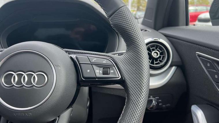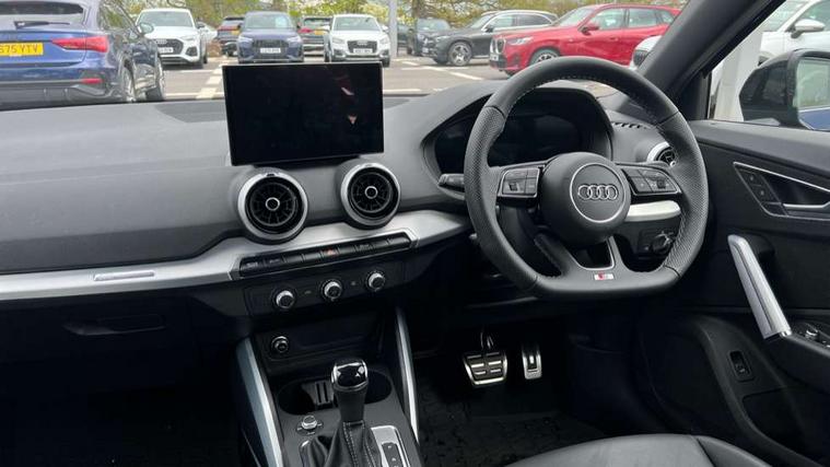 3D map display, Audi connect navigation and infotainment includes innovative services, Audi connect remote and control connects your vehicle to your smartphone, Audi drive select: S tronic - power steering assistance + engine + gearshift (modes: comfort, auto, dynamic, efficiency, individual), Audi smartphone interface - Apple carplay/Android Auto, USB connect, 2xSDXC card readers, voice control for navi, telephone, music and 3rd party apps, Audi virtual cockpit, Automatic start/stop system with recuperation, Bluetooth interface includes bluetooth audio streaming, Camera based traffic sign recognition, Cruise control, Distraction and Fatigue warning, E-call, Jukebox hard drive memory for music (10GB), Lane departure warning, MMI navigation plus with 8.8" touchscreen, Natural voice recognition, Power operated tailgate, Progressive steering, Rear parking sensors, Sport suspension, 6 passive loudspeakers, DAB Digital radio, USB type C port, Audi beam, Auto dimming rear view mirror, Black window trims, Bumper in full body colour paint finish, Electrically adjustable, folding, auto dimming and heated door mirrors with integrated LED side indicators, Front windscreen with grey tinted sunband, LED daytime running lights, LED headlights with dipped beam, high beam, position lights, indicators, LED rear lights, LED third brake light, Privacy glass - dark tinted rear and rear side windows from B-pillar backwards, Rear side wing doors, Rear wiper, Variable front intermittent wipers, Wheel arch trims in manhattan grey, 12V socket in front, 3 seat bench in 2nd row, 3 spoke flat bottomed multi-function leather sport steering wheel with gear shift paddles with S logo, 4-way electric lumbar support for front seats including manual seat height adjustment for both front seats, 60/40 split folding rear seat bench, Black carpets, Black cloth headlining, Front and rear head restraints, Front centre armrest, Front sport seats, Front/rear floor mats, Height/reach adjust steering wheel, Illuminated door sill trims with S logo, ISOFIX child seat mounting in front passenger and rear outer seats, Manual air conditioning, Single front passenger seat, Stainless steel pedals, Black styling pack - Q2, 3x3 point rear seatbelts, 6 airbags - Front, curtain and front side airbags, Electromechanical parking brake, Electronic stabilisation control including ABS, ASR and EDL, Front passenger airbag deactivation, Hill hold assist, Pre-sense front with pedestrian recognition, Seatbelt monitoring, Tyre pressure warning light with visual and acoustic warning, Warning triangle and first aid kit, Anti theft wheel bolts, Electronically operated child locks, Remote central door locking, Thatcham category 1 alarm, Aluminium interior element, Black dashboard, Gloss black centre console, Matt brushed aluminium trim inlays, Tool kit,
