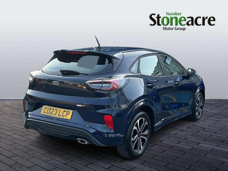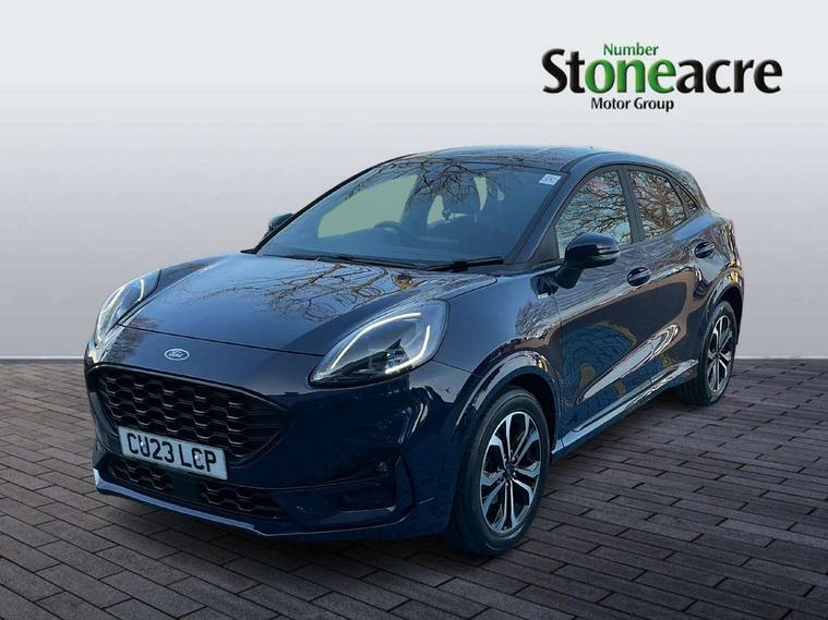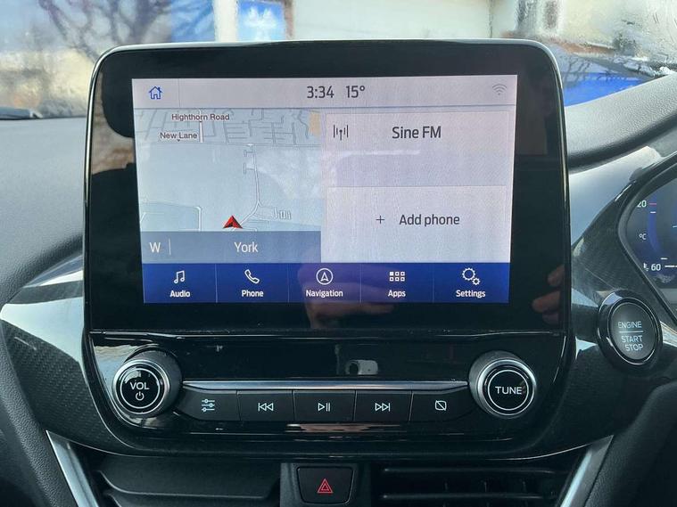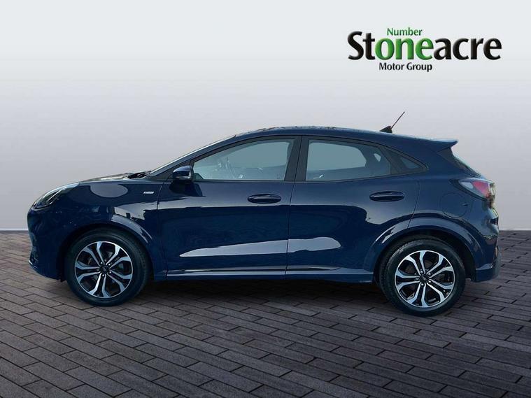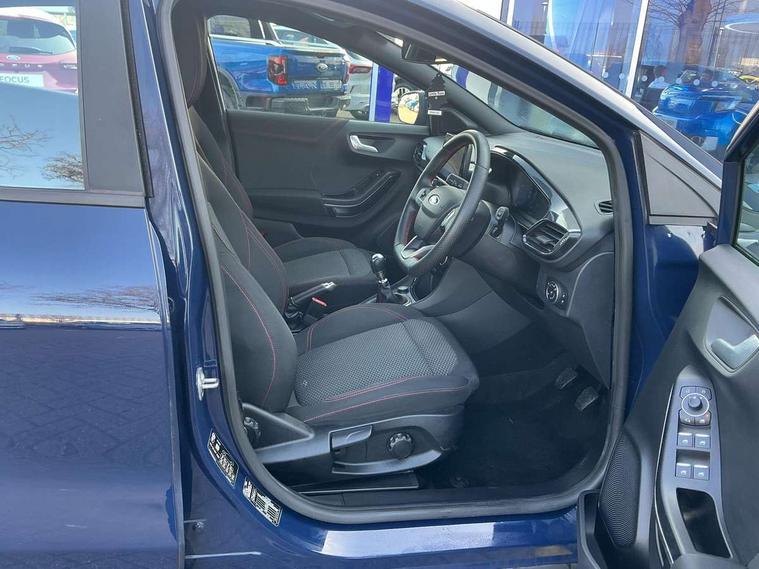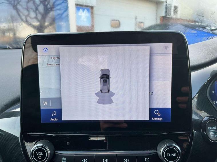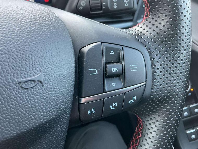 Driver impairment monitor, Emergency call service, Ford easy fuel, Full digital 12.3" instrument cluster, Lane keeping aid with lane departure warning, Power assist steering, Power start button, Rear parking sensor, Selectable drive modes(Normal, Eco, Sport, Slippery and Trail), Speed sign recognition, Sport suspension, Automatic headlights with auto high beam, Automatic rain sensing wipers, LED rear lamps, Power foldable heated door mirrors with puddle lamps, Projector headlamps with LED day time running lights and front fog lamps, Quickclear heated windscreen, Rear side wing doors, Rear wiper, ST-Line body styling kit with unique grille and large body colour rear spoiler, Third brake light, 3 seat bench in 2nd row, Centre console with armrest and stowage, Ford megabox extended bootspace, Front and rear head restraints, Front floor mats, Manual 2 way passenger seat adjustment, Manual 4 way driver seat adjust with lumbar adjustment, Single front passenger seat, ST- Line cloth trim with red stitching, ST-Line flat bottomed sensico leather steering wheel with leather handbrake and aluminium gear knob, Ford SYNC 3 navigation pack - Puma, 3 rear seatbelts, Child safety lock, Electronic stability control (ESC) and hill start assist, Pedestrian/cyclist detection & post-collision braking, Pre collision assist system, Tyre pressure monitoring system (TPMS), Thatcham alarm,