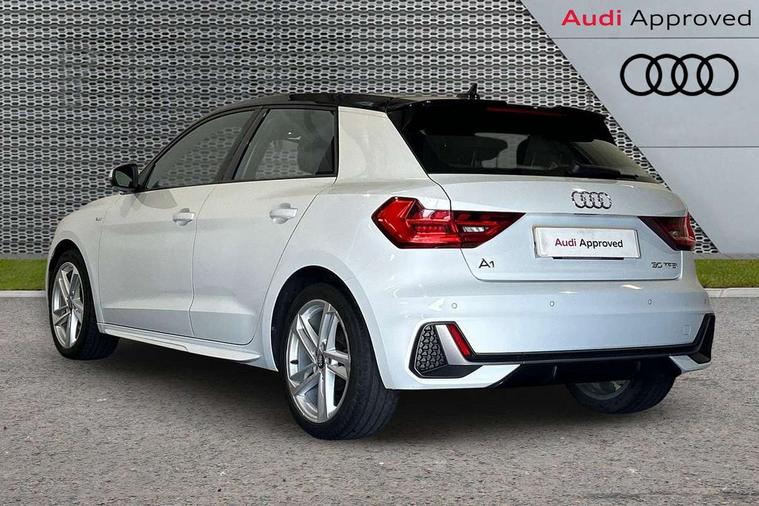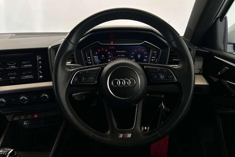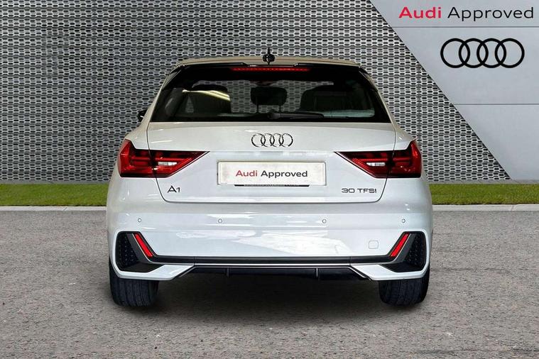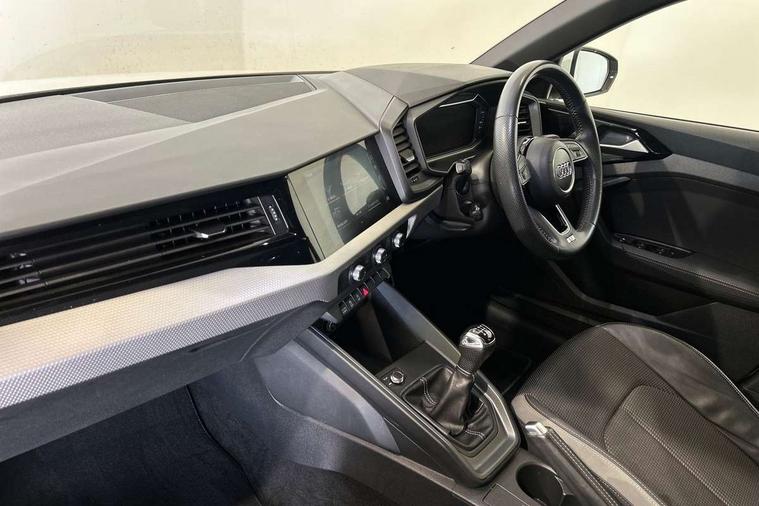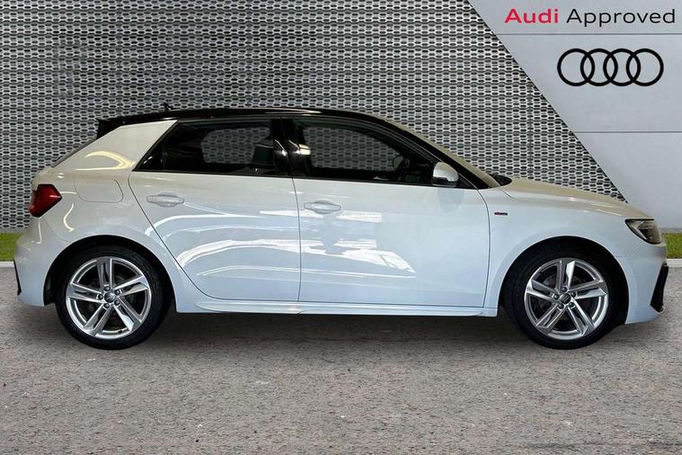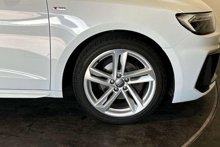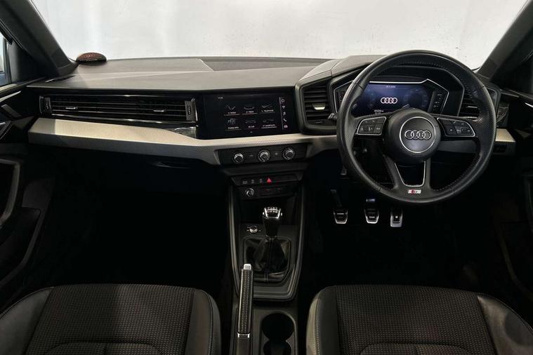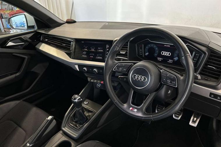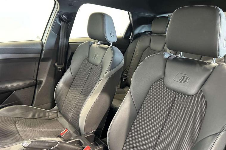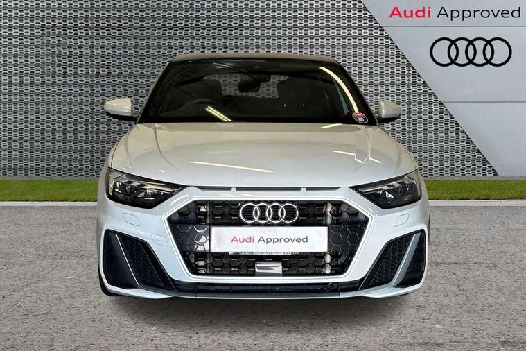 10.25" Digital instrument cluster display screen, Audi connect safety emergency and service including E-call, Audi drive select, Audi smartphone interface, Automatic start/stop system, Bluetooth interface, Driver's information system, Electromechanical power steering, Lane departure warning system, Service interval indicator, Speed limiter, Voice control system, Washer fluid level indicator, Sports suspension, 1 x SDXC card reader, 1 x USB type C and 1 USB type A charging points, Audi music interface, Bluetooth audio streaming, DAB Digital radio, MMI radio plus with 8.8" colour MMI display screen and MMI touch, Auto dimming rear view mirror, Body colour side sill mouldings, Body coloured bumpers, Body coloured door mirrors, Door sills with aluminium inlays and S Line logo, Electric front and rear windows, Front side air inlets in grained matt black and C frame in titanium black, Heat insulating glass windscreen and side windows, Heated rear windscreen, LED headlights with LED rear lights + dynamic rear indicators, Matt aluminium silver tailpipe trim, Matt black radiator grille frame, Matt platinum grey in front spoiler clip and rear diffuser clip, Rain and light sensors, Rear fog lights, Rear wiper, S line badges on front wings, S line exterior bumpers, S line roof spoiler, Side air inlet frames titanium black, Side front spoiler lips in grained matt black, 12V socket in centre console with two cup holders, 3 rear seats, Black cloth headlining, Driver and passenger seat with manual height adjust with forward and backwards adjustment, Front and rear black floor mats with contrast stitching in fine silver, Front head restraints, Height and reach adjustable steering wheel, ISOFIX child seat mounting in front passenger and rear outer seats, Leather gear knob with aluminium trim, Leatherette handbrake grip, Luggage compartment light with front and rear reading lights, Lumbar adjustment for front seats, Rear head restraints, Split folding rear seats, Stainless steel pedals, 3x3 point rear seatbelts, Audi pre-sense front with pedestrain and cyclist recognition, Brake assist function, Driver and front passenger airbag with front side and head airbags, Electronic Stability Control including ABS, EBD, ASR and EDL, Front and rear seatbelt reminder, Front passenger airbag deactivation switch, Hill hold assist, Seatbelt height adjustment for front seats, Seatbelt monitoring, Tyre pressure warning light, Warning triangle and first aid kit, Anti theft alarm, Anti theft wheel bolts and loose wheel warning, Immobiliser, Remote central locking with 2 remote folding keys, Aluminium trim for control switches, air vents and digital instrument cluster, Silver grey inlays polygon structure in diamond paint finish, Structured grey accent areas including air vents, door handle recesses and centre console in quartz paint finish,