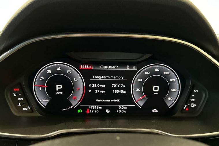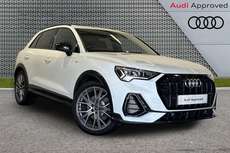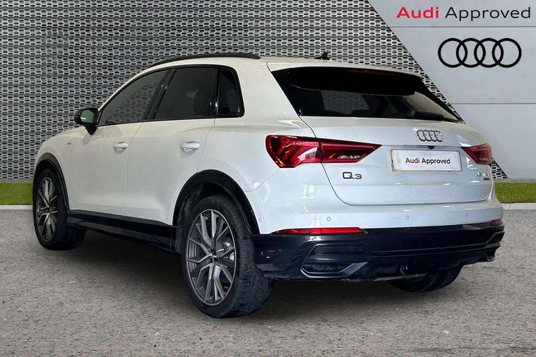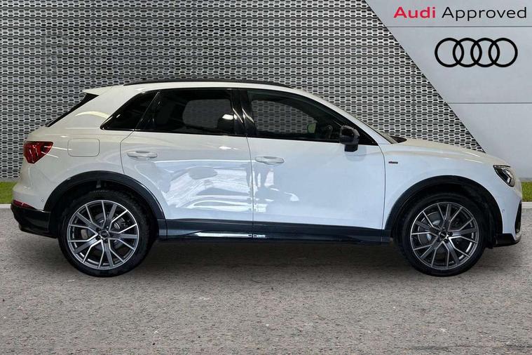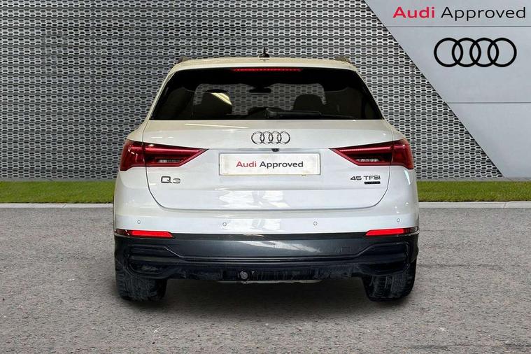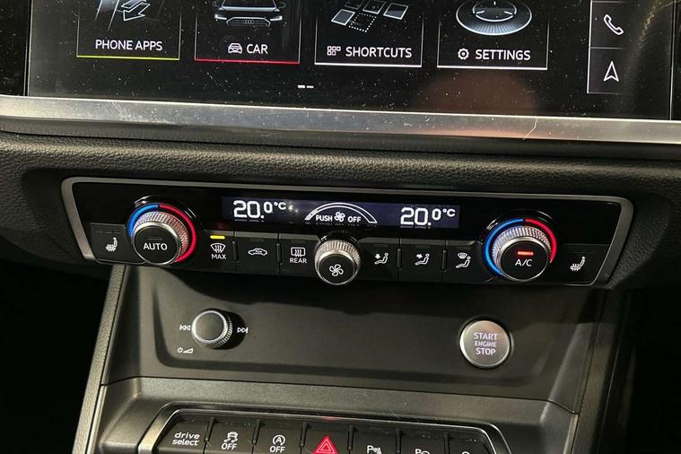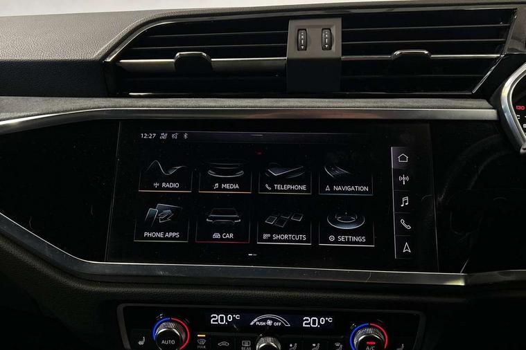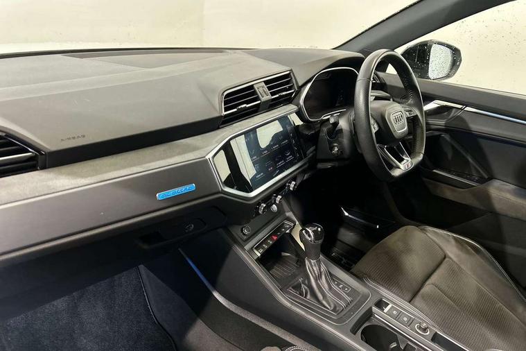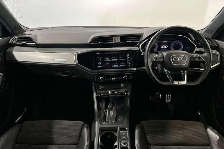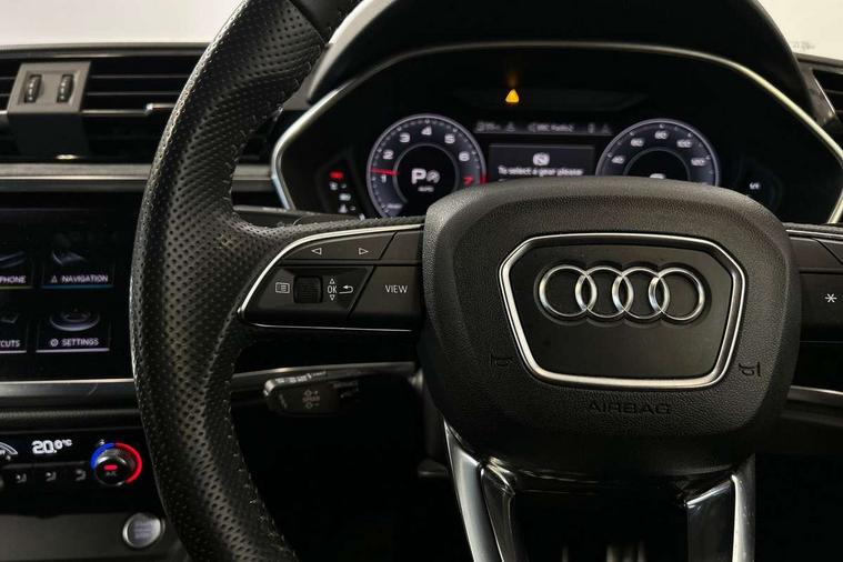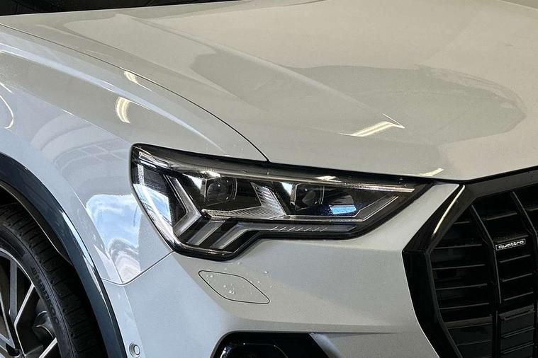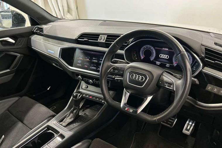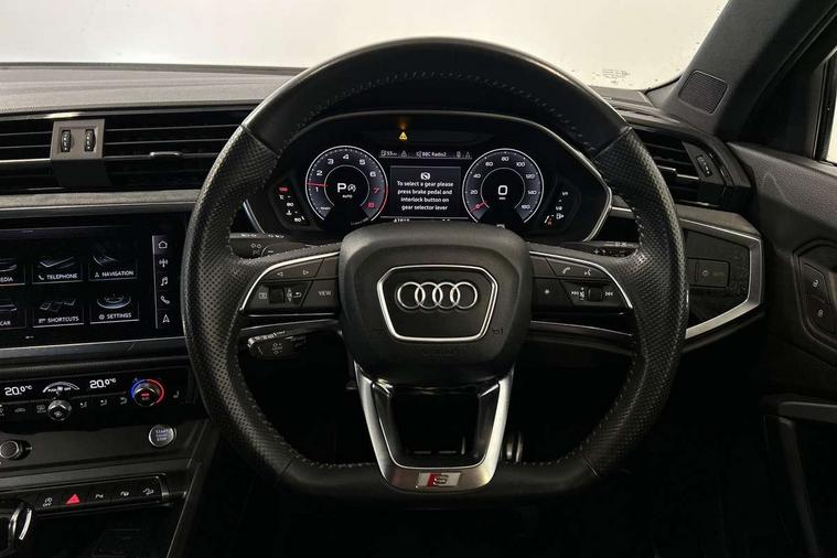 Aluminium look interior elements, Inlay - Black piano finish, MMI touch colour display in glass look, black with surround in aluminium look, Ambient lighting pack - RS Q3, Non smoking pack - RS Q3, Tyre repair kit, Advanced key, Anti theft alarm, Anti theft wheel bolts, Audi pre-sense front with pedestrain and cyclist recognition, 1 x USB type C and 1 USB type A charging points, Audi sound system, DAB digital radio module, 3x3 point rear seatbelts, 6 airbags - Driver, front passenger, curtain and side windows, Electrically operated child locks on rear doors, Electromechanical parking brake, Electronic stabilisation control including ABS, ASR and EDL, Hill descent control, Hill hold assist, Pre sense basic, RS brake system, Seatbelt monitoring, Tyre pressure warning, Warning triangle and first aid kit, Acoustic windscreen, Aluminium window trim, Audi Beam uses LEDs to project the Audi Sport logo, Auto dimming frameless rear view mirror, Black roof rails, Body colour rear spoiler, Dark tinted Matrix LED headlights with dynamic front and rear indicators, Electrically folding, adjustable and heated door mirrors with integrated LED side indicators and kerb view function for passenger side, Flared wheel arches, Flat slits on single frame grille, Front spoiler blade, side blades, inserts on door trim strips and diffuser insert in matt aluminium look, Headlight washers, High gloss black finish B and C pillars, Honeycomb radiator grille in gloss black, Illuminated door sill trims with RS logo, LED rear lights, Panoramic glass sunroof, Privacy glass dark tinted rear and rear-side windows (from B-pillar backwards), Rain and light sensors, RS specific bumpers with large front air inlets in black, RS Sport exhaust system, dual branch with exhaust flap control and gloss black oval tailpipe trims, 4 way electric lumbar support for driver and front passenger, Adjustable rear seat bench/backrest with centre armrest and cupholder, Black Alcantara elements - dashboard and the armrests in the front and rear doors, Black cloth headlining, Dual zone electronic climate control, Electrically adjustable front seats, Fine Nappa leather upholstery with front sports seats + honeycomb stitching and RS embossed logo, Flat bottom multifunction leather steering wheel with shift paddles in gloss black with aluminium trim + mode button, contrast stitching and RS emblem, Front and rear floor mats, Front and rear head restraints, Front centre armrest, Heated front seats, ISOFIX child seat mounting for front passenger with airbag deactivation and outer rear seat including top tether attachment point for outer rear seats, Stainless steel luggage compartment sill finisher, Stainless steel pedals, Tool kit, Audi connect safety and service (e-call), Audi drive select, Audi lane departure warning, Audi parking system plus with front and rear sensors, Audi side assist, Audi smartphone interface includes wireless Apple carplay/Android Auto, Audi virtual cockpit plus, Bluetooth interface, Camera based traffic sign recognition, MMI Navigation Plus with high resolution 10.1 inch touchscreen colour display, Power operated tailgate, Progressive steering, Rear cross traffic alert, Start stop system with recuperation, Voice control system with natural language interaction, Quattro all wheel drive,