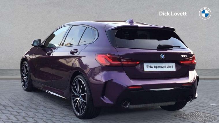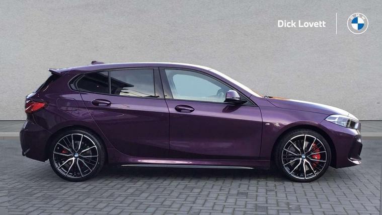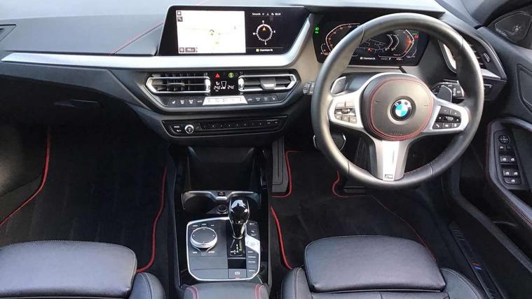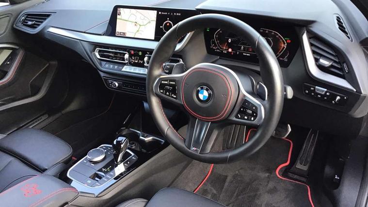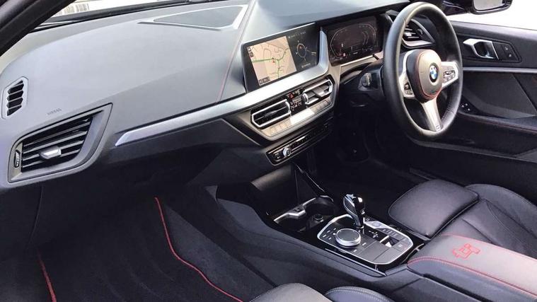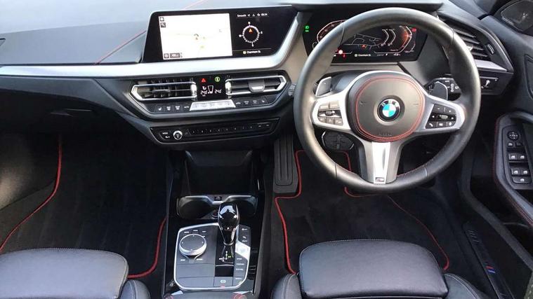 Active guard plus, Attentiveness assist, BMW ConnectedDrive online services, BMW Teleservices, Check Control warning system for monitoring of lights and door/luggage compartment open warning, Cruise control with speed limiter, Eco pro mode, Electric power steering with Servotronic steering optimised at all speed ranges, Front axle single joint with specific axle kinematics to minimise drive influences on steering + provide increased rigidity agile driving behaviour, Integrated owners handbook, Lane departure warning system, Oil sensor for level and grade, On board computer, Optimum shift indicator, Personal Profile, Pull away assistant, Rigidly mounted rear subframe - Multi link construction with separate spring / damper configuration and excellent driving characteristics, Speed limit Info including no-overtaking indicator, Aluminium lightweight construction, Anti roll bar front and rear, Balancer shaft, Double VANOS twin scroll turbocharging system, Drive Performance Control, Eight speed sport automatic transmission with gearshift paddle switches, Electronic differential lock, High precision injection, Larger fuel tank capacity (50 litres), M sport suspension with M128i xDrive specific settings, Petrol Particulate Filter, Twin tube gas filled shock absorbers with degressive characteristic curve, VALVETRONIC engine management, DAB Digital radio, Auto dimming rear view mirror, Automatic headlight beam throw control, Automatic windscreen wipers and automatic headlight, Black chrome tailpipe finishers, BMW individual high gloss shadow line with extended content, Body colour door handles, Body colour mirror caps, Body colour roof trims, Chrome 'M' logo side designation, Chrome kidney grille frame with Satin Aluminium struts, Direction indicator side lights in exterior mirrors, Electrically adjustable exterior mirror with mirror adjustment switch on drivers armrest and aspheric on driver side, convex on passenger side, Fading support, Folding side mirrors with auto dimming/folding wing mirrors with auto dimming, Follow me home headlights, Front and rear bumper system with replaceable deformation elements, Front and rear electric windows with open and close fingertip control, anti trap facility and comfort closing, Front door sill finishers in black plastic with M designation in metallic look, Green tinted heat protection glazing, High gloss shadowline window frame, Recess cover mirror frames and B/C pillar embelisher trim, High level third brake light, Integrated front windscreen with washer jets, Kidney frame and struts in high gloss black extended, LED daytime running lights, LED eyebrow turn indicators, Lightweight engineering, Matt black air guide grilles, Matt black wheel arch trim, Model designation on electric bootlid, Nearside reverse light in rear light cluster, Preparation for high beam assistant, Rear fog lights, Rear side wing doors, Rear window wiper, Shark fin antenna, Trailer stabilisation logic, Visible VIN plate, Welcome lighting, 12V power socket in front centre console with blanking plug, 3 rear seat head restraints, 3 seat bench in 2nd row, Anthracite headlining, Black boot net with lashing eyes, Cargo function on 2nd seat row, Child seat ISOFIX attachment for two outer rear seats and front passenger seat with anchorage points, Conditioned based service, Driver and front passenger backrest net on rear, Driver and front passenger seat heating, Driver side folding compartment in instrument panel, Folding rear clothes hook, Four grab handles integrated in roof lining, Front and rear door pockets with bottle holders, Front and rear side armrest integrated into door trim, Front armrest, Front sports seats, Glove compartment, Height adjustable front head restraints, Luggage compartment for bag hooks on left and right, foldable luggage compartment liner and four lashing eyelets, Manual adjust steering wheel, Multi-function controls for steering wheel, Single front passenger seat, Storage compartment in centre console, Storage compartment in luggage compartment, Stowage of the parcel shelf in luggage compartment trim, Sun visors with vanity mirrors and insert tab, Three spoke M sport design multi function leather steering wheel in unique red stitching, Two front centre console cupholders, Two zone automatic air conditioning, Type C two USB ports in rear centre console, Additional interior lighting pack - 1 Series, BMW live cockpit professional pack- 1 Series, Connected pack professional - 1 Series, Interior lights pack - 1 Series, M Sport exterior styling aerodynamics pack - 1 Series, 2 tone horn, 3 point seatbelts on all seats, front pyrotechnic belt tensioners, stopper and belt force limiters, rear coded belt buckles, Airbags - Front driver/passenger, front and rear curtain head protection, front side, manual deactivation of front passenger airbag, Anti lock braking system (ABS) with brake assist, BMW emergency call, Brake drying, Braking readiness, Child proof locking system in rear door, City braking function, Comfort modes, Cornering brake control, Crash sensor activating of airbags, Unlocking doors, hazard warning lights, interior light, safety battery terminal, Driver and front passenger seat belt security check, Dynamic stability control + (DSC+), Dynamic Traction Control - DTC, Electrically operated hand brake including automatic hold function, Front and rear disc brakes, M Sport brakes with red calipers, M Sport seatbelts, Seatbelt warning, Side impact protection, Tyre pressure monitoring system, Warning triangle and first aid kit, Central locking switch for all doors, fuel filler cap and luggage compartment, Deadlocking function system to all doors, Drive away locking system on all doors and luggage compartment with de-activated in iDrive settings, Locking wheel bolts, Remote control with integrated key with High-gloss Black inlay and M designation and 1 button for open/ close lock, window, open luggage compartment, Start/stop button illuminated in centre console with k
