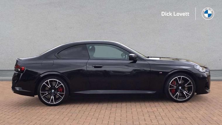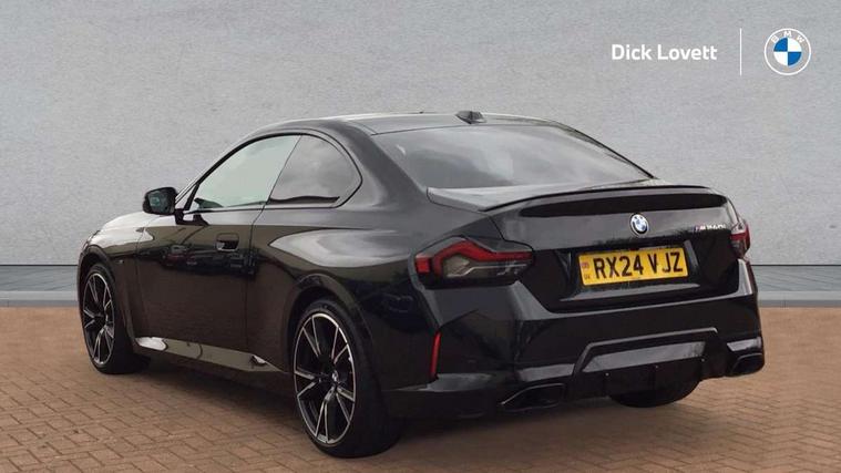 2 USB connections for charging and transferring data, 4G LTE connectivity with hard wired 4G network sim card, Attentiveness assist, Bluetooth with USB, BMW ConnectedDrive online services, BMW Intelligent Personal Assistant, BMW operating system 8 with variable, configurable widgets display information in real time, BMW Teleservices, Check Control warning system for monitoring of lights and door/luggage compartment open warning, Direct selection buttons, Drive off assistant, Driving experience switch with sport+ mode, Eco pro mode, Electric power steering, Front and rear parking sensors, Front/rear Parking distance control, iDrive controller with turn and press function, Integrated owners handbook, Intelligent functions, Live cockpit plus with nav function 12.3" instrument cluster and 14.9" centre display, Oil sensor for level and grade, Optimum shift indicator, Personal Profile, Touch operation on control display, Variable sport steering, Widescreen multi-media display, WiFi interface for wireless connection of mobile terminal devices, Aluminium lightweight construction, Balancer shaft, BMW TwinPower Turbo inline 6-cylinder petrol engine, Double VANOS, Drive performance control with ECO PRO comfort + sport mode, High precision injection, M Sport differential, Petrol Particulate Filter, Sport automatic steptronic transmission with gearshift paddles, manual gearshift time display, launch control, coasting idle ECO PRO/COMFORT modes, Twin scroll turbocharger with Valvetronic, xDrive with rear orientated application, DAB tuner, Acoustic windscreen wipers for reduced driving noise, Adaptive LED Headlights, Automatic windscreen wipers and automatic headlight, Automatically dimming rear view mirror, BMW individual lights shadow line, Body colour door handles flush with door surface, Body colour front and rear bumpers, Daytime running lights, Electric windows - front and rear, with open/close fingertip control and trap release, Exhaust tailpipes x 2 - free form finisher in black chrome in left and right, Exterior air inlets in front bumper with embellishers in high gloss black, Fading support, Flap controlled M Sport exhaust system, Front and rear bumper system with replaceable deformation elements, Front door sill finishers in black plastic with BMW designation, Front ornamental grille frame in high gloss black, Front windscreen wipers with integrated washer jets, Green tinted heat protection glazing, High beam assistant, High gloss black exterior M mirror caps, High gloss black sill, bumper trim sides and diffuser insert, High gloss shadowline exterior trim in mirror triangle cover, mirror cover panel, mirror bezel and window border, High level third brake light, Indicators integrated int mirror housing, LED registration plate light, LED technology rear tail lights, brake lights and turn indicators, Lightweight engineering, M Sport spoiler - Gurney in body colour, Model designation and M badges in cerium grey, Model designation on right side of tailgate, Rear boot, Rear fog lights, Reversing light in rear light cluster, Shark fin antenna, Side frame decorative moulding black high gloss, Single part LED rear lights with smoked glass components, Sun protection glass, Trailer stabilisation logic, Visible VIN plate, xDrive designation on left tailgate, 12V power socket in front centre console with blanking plug, 2 cupholders in front centre console, 2 zone automatic air conditioning, Ambient lighting, Compartment in front of cupholder, Conditioned based service, Driver seat backrest width adjustment, Electric front seat adjustment with driver memory, Front and rear side armrests integrated into door trim, Front armrest, Front door pockets, Front head restraints, Front M Sport seats, Front passenger seat lumbar support, Heated front seats, Illuminated glove compartment with separate small compartment, Lumbar support for driver, M headliner Anthracite, M sport leather steering wheel, M240i badge in instrument cluster, Manually adjustment steering wheel column, Rear seat backrest with manual 40:20:40 split folding, Rear seat centre foldable armrest with integrated cup holder, Single front passenger seat, Storage compartment between rear seats, Storage tray and compartment with cover in centre console, Sun visors with vanity mirrors and insert tab, Through loading system with 40/20/40 split folding 2 rear seat in 2nd row, Two folding rear seat headrests, Velour floor mats, Vernasca leather upholstery, Additional storage compartment pack without USB - 2 Series Coupe, Connected pack professional - 2 Series Coupe, Interior and exterior mirror pack - 2 Series Coupe, M Sport exterior styling aerodynamics pack - 2 Series Coupe M240i, 2 tone horn, Anti lock braking system (ABS) with cornering brake control, Automatic Stability Control (ASC), BMW emergency call, Brake drying, Child seat ISOFIX attachment for the two outer rear seats, Crash sensor activating of airbags, Unlocking doors, hazard warning lights, interior light, safety battery terminal, Deactivation of fuel pump in the event of a crash, Driver and front passenger airbags, Driver and front passenger side airbags, integrated in the door side seat backrest bolsters for all seat variants, Dynamic brake control, Dynamic stability control + (DSC+), Dynamic Traction Control - DTC, Electrically operated hand brake including automatic hold function and automatic release when driving off, Front and rear disc brakes, Head airbags for all 4 outer seats, M seat belts, M Sport brake with red calipers, Manual deactivation of front passenger airbag, Seat belt security check for driver and front passenger, Seatbelt warning, Side impact protection, Three point seat belts on 4 seats including front belt stopper, pyrotechnic belt tensioners and belt force limiters, Tyre pressure sensor, Warning triangle and first aid kit, Alarm system (Thatcham 1) with remote control and electronic engine immobiliser, Central locking switch for all doors, fuel filler cap and luggage